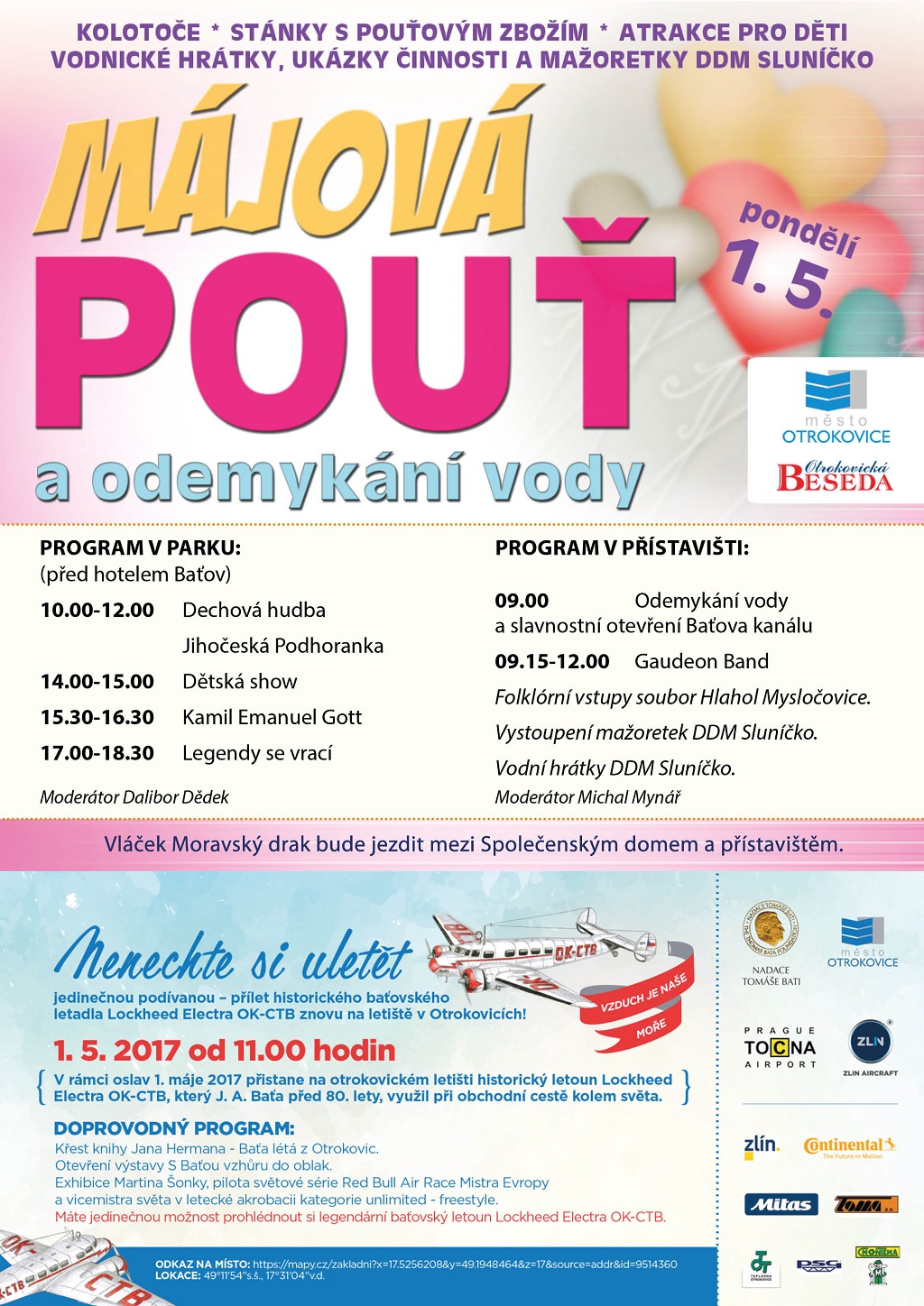 Tradiční akce pod širým nebem s pestrým kulturním a doprovodným programem pro celou rodinu. Kolotoče, stánky s pouťovým zbožím, atrakce pro děti, bohaté občerstvení. Park u hotelu Baťov a přístaviště, letiště. PROGRAM v parku od 10.00 h.: Dechová hudba Jihočeská Podhoranka, Dětská pohádková show, Kamil Emanuel Gott, skupina Legendy se vrací. PROGRAM v přístavišti od 9.00 h.: Slavnostní odemykání vody, mažoretky DDM Sluníčko, vodnické hrátky, skupina Gaudeon Band, pěvecký sbor Hlahol. Okružní jízdy po řece Moravě novou lodí Hollandia. PROGRAM na letišti od 11.00 h.: Baťova Electra se vrací domů – přílet historického letadla J. A. Bati, ukázky akrobacie, doprovodný program.