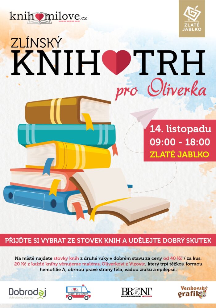 V pátek 14. listopadu se uskuteční další ročník akce, která nabídne široký výběr knih z druhé ruky za symbolické ceny. Výtěžek z prodeje tentokrát poputuje na pomoc malému Oliverkovi z Vizovic.
