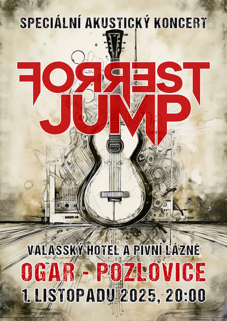 Nyní ale v Luhačovicích-Pozlovicích, na svém takřka „domácím hřišti“, bude 1.11.2025 vše jinak! Opět po roce se zde „Forresti“ ukáží v úplně jiné podobě, než bývá zvykem a to v akustickém provedení, tzv. „unplugged“. Své skladby přednese kapela pěkně komorně, vsedě, na akustické kytary a v klidné atmosféře, prostě jinak. Prostor restaurace se spoustou dřeva v útrobách hotelu Ogar k tomuto vystoupení přímo vybízí!