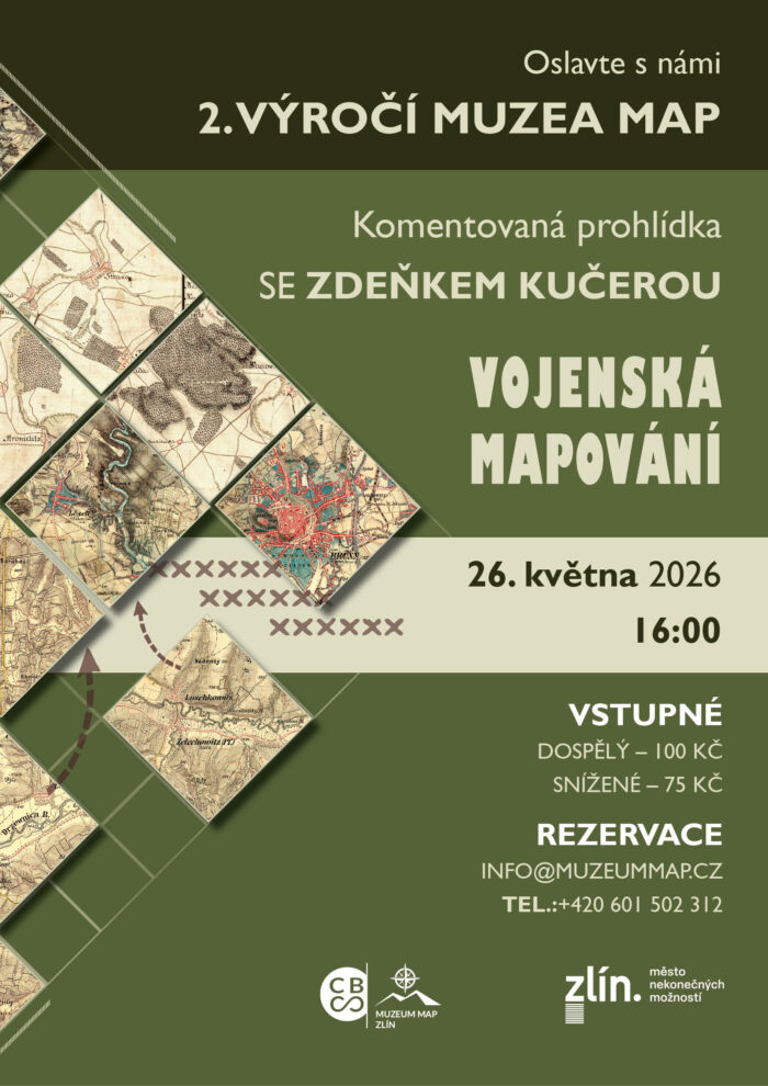Muzeum map Zlín oslaví na konci května své druhé narozeniny. Pro obyvatele i návštěvníky krajského města připravilo k tomuto jubileu speciální program. Oslava proběhne formou exkluzivní komentované prohlídky nové výstavy s názvem „Vojenská mapování v Čechách, na Moravě a ve Slezsku“.