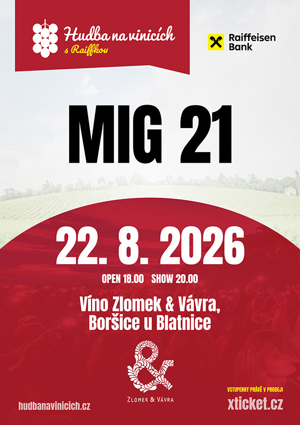 Letní koncertní seriál “Hudba na vinicích” propojuje skvělou muziku se špičkovým vínem, to vše v nádherných lokalitách českých a moravských vinohradů.