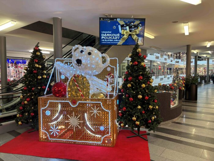 Blížící se advent je už v obchodním centru Zlaté jablko jasně k poznání. Světelná výzdoba, která zahalila jeho fasádu i interiér, letos sází na atmosféru klasického dětství. S prvky inspirovanými tradičními hračkami je navíc možné vyfotit se na několika fotopointech. K vánočnímu servisu centra patří také prodej dárkových poukazů nebo balicí dárková služba.