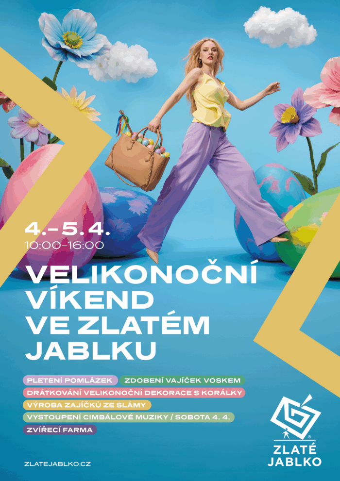 Obchodní centrum Zlaté jablko ve Zlíně připravilo na první dubnový víkend tematický velikonoční program pro širokou veřejnost. Ve dnech 4. a 5. dubna nabídne návštěvníkům tvořivé dílny inspirované tradičními řemesly, hudební vystoupení i zvířecí farmu. Akce je určena především rodinám s dětmi.