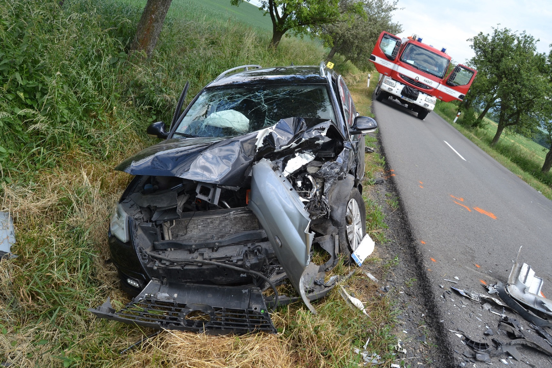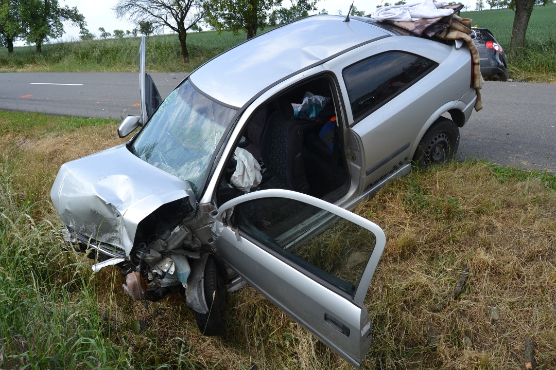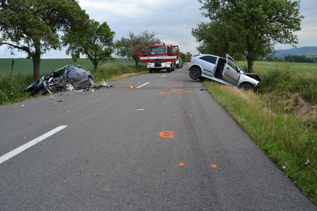 Fotogalerie - Čelní střet dvou aut u Kelče si vyžádal čtyři zraněné, holčička je na tom špatně