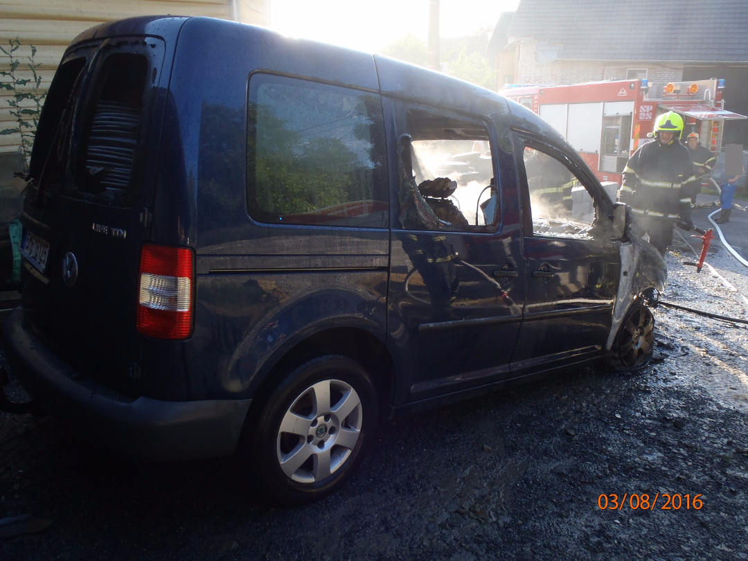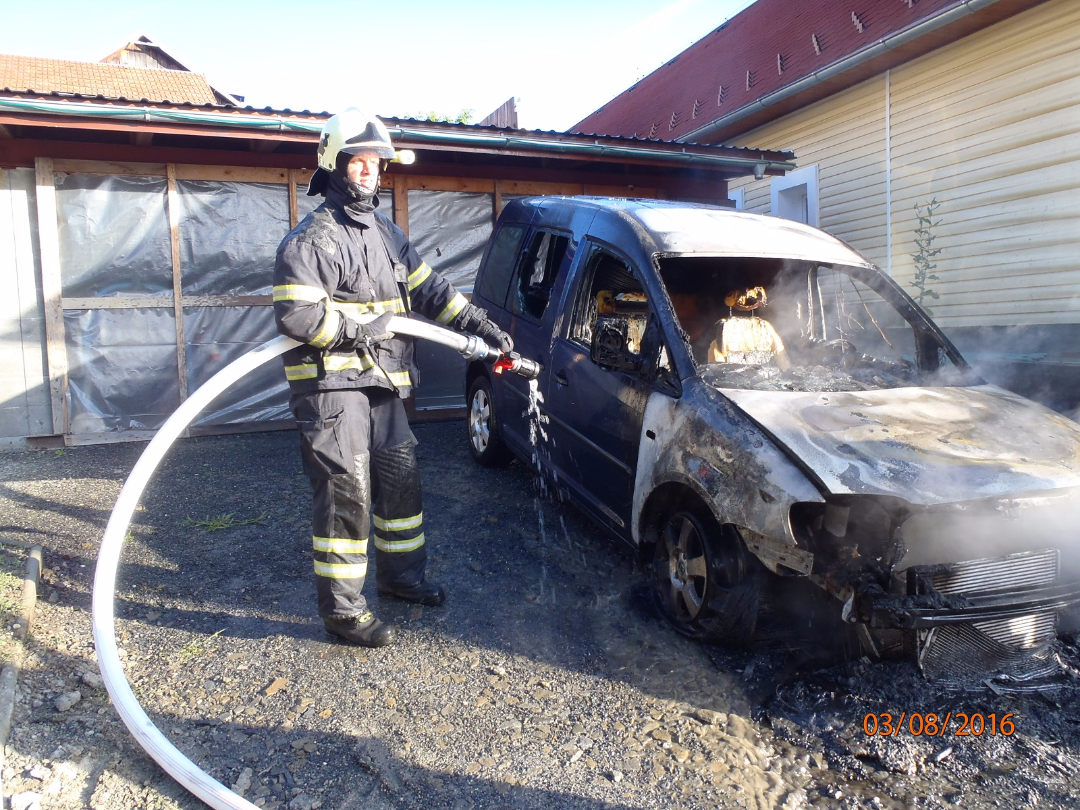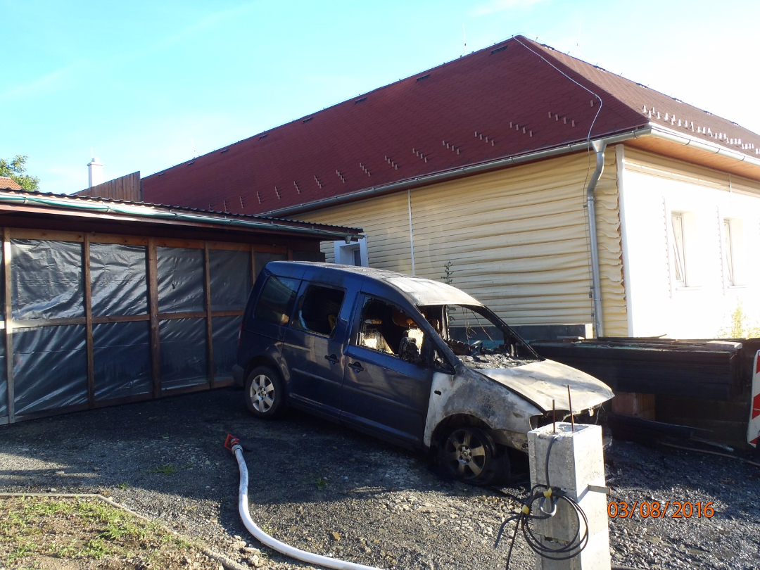 Fotogalerie - Na Zlínsku shořelo auto, plameny sežehly i zeď domu