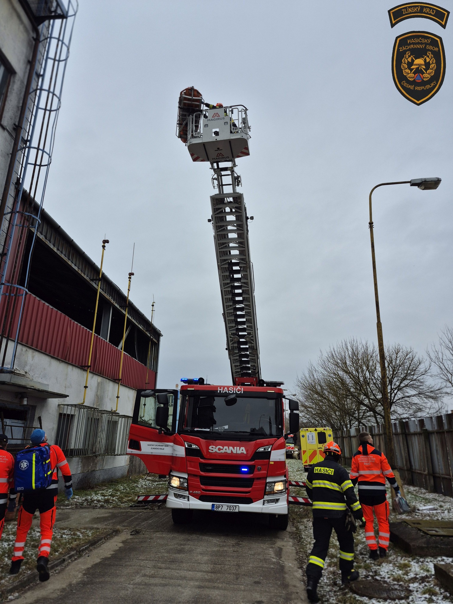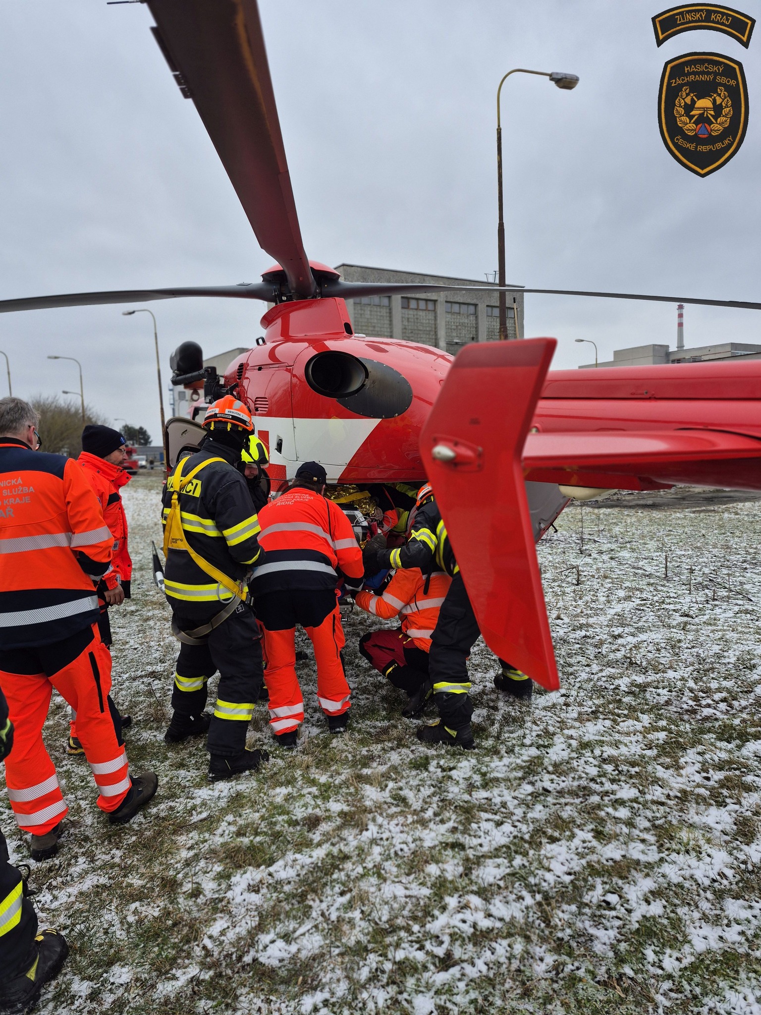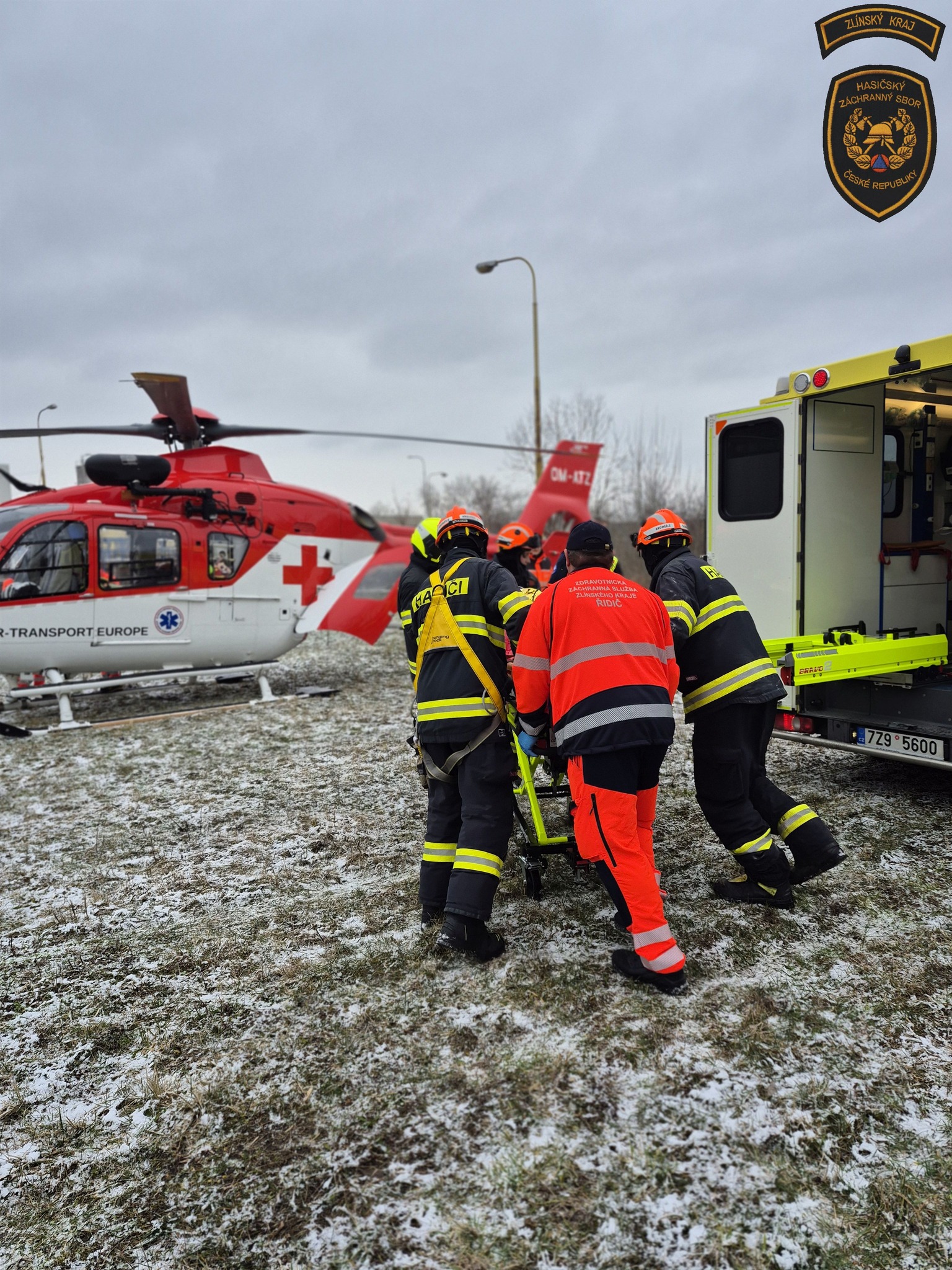 Hasiči pomáhali s transportem pacienta. Z běžné asistence se ale stal technicky náročný zásah. Foto: HZS Zlínského kraje
