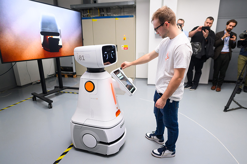 Baťova univerzita má nového maskota, je jím robot UTB BOTT-E. Foto: UTB