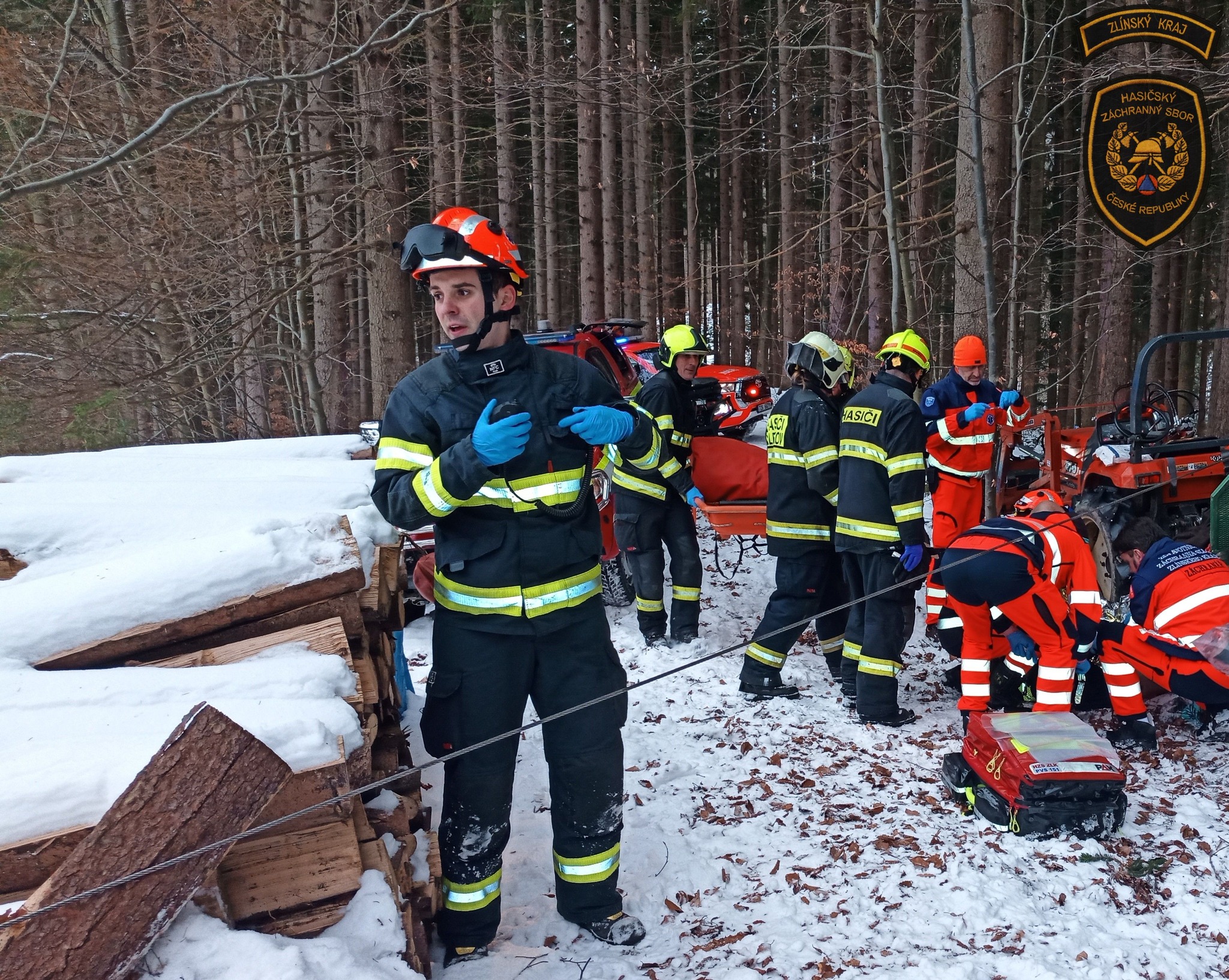 Muže při práci v lese zavalil traktor, bohužel nepřežil. Foto: HZS ZK