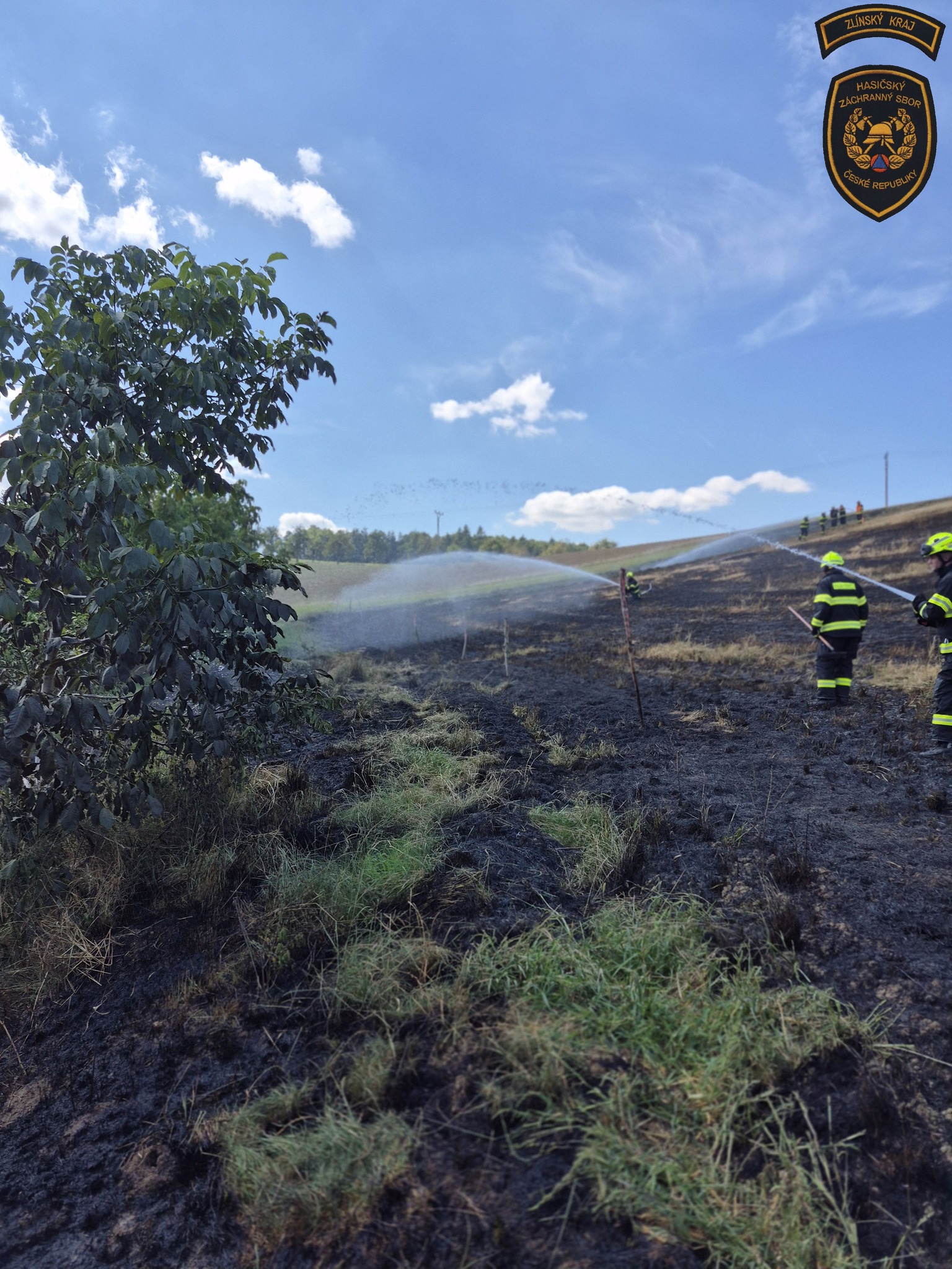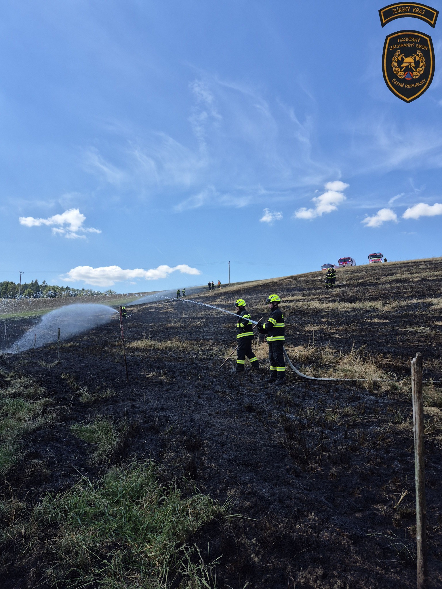 Hasiči ve středu hasili požár pole u Lhotky. Foto: HZS ZK