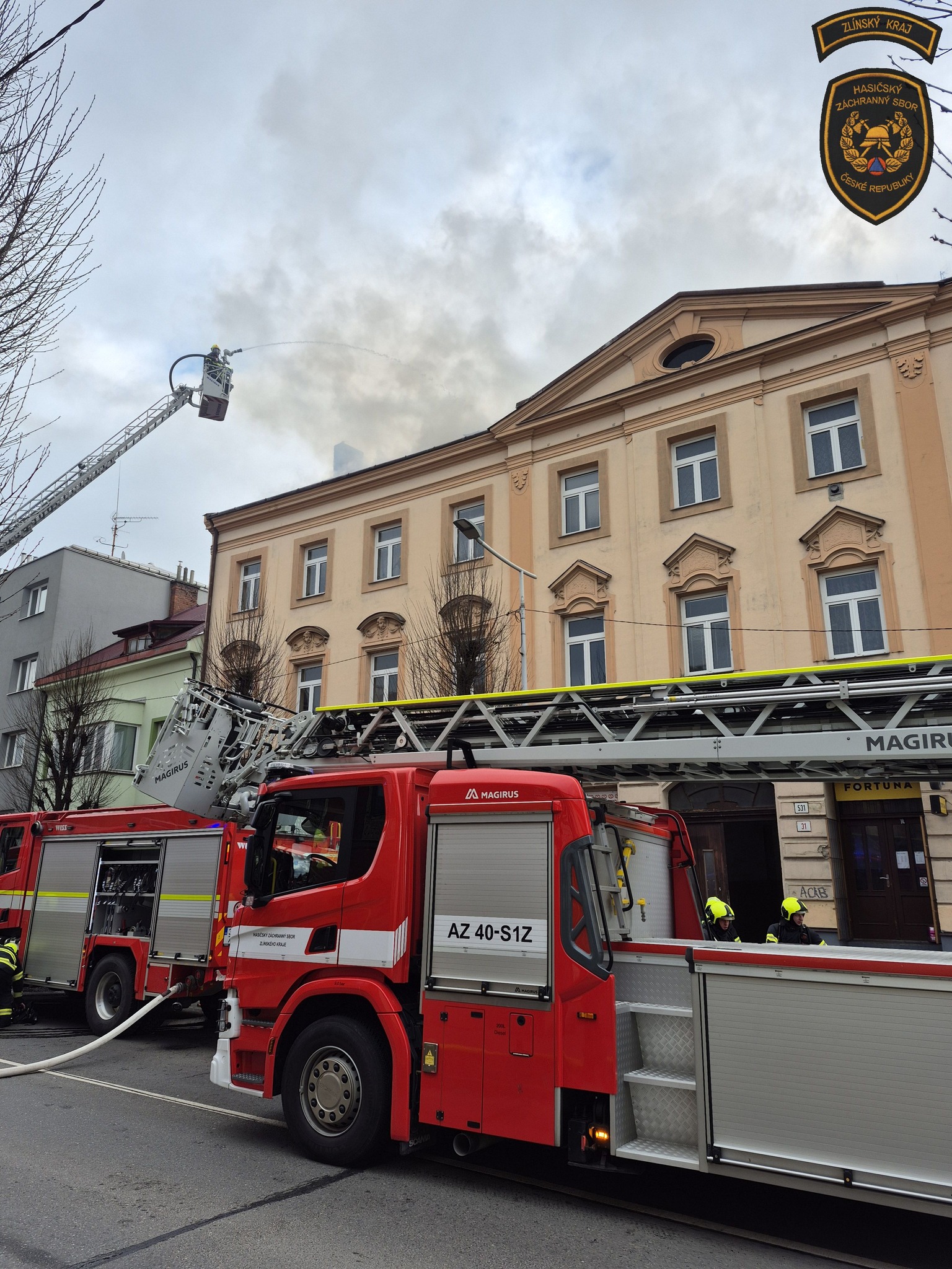 Hasiči bojují s požárem bytového domu v Holešově. Foto: HZS ZK