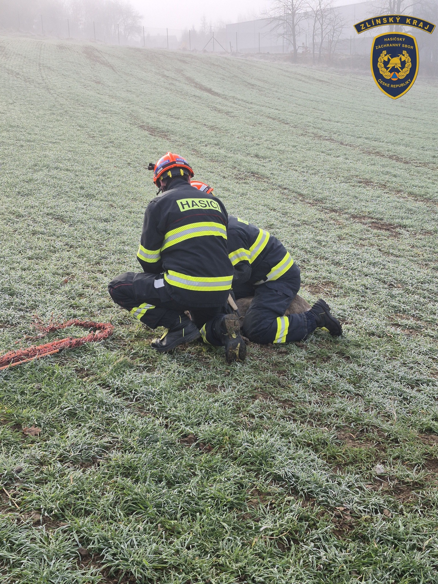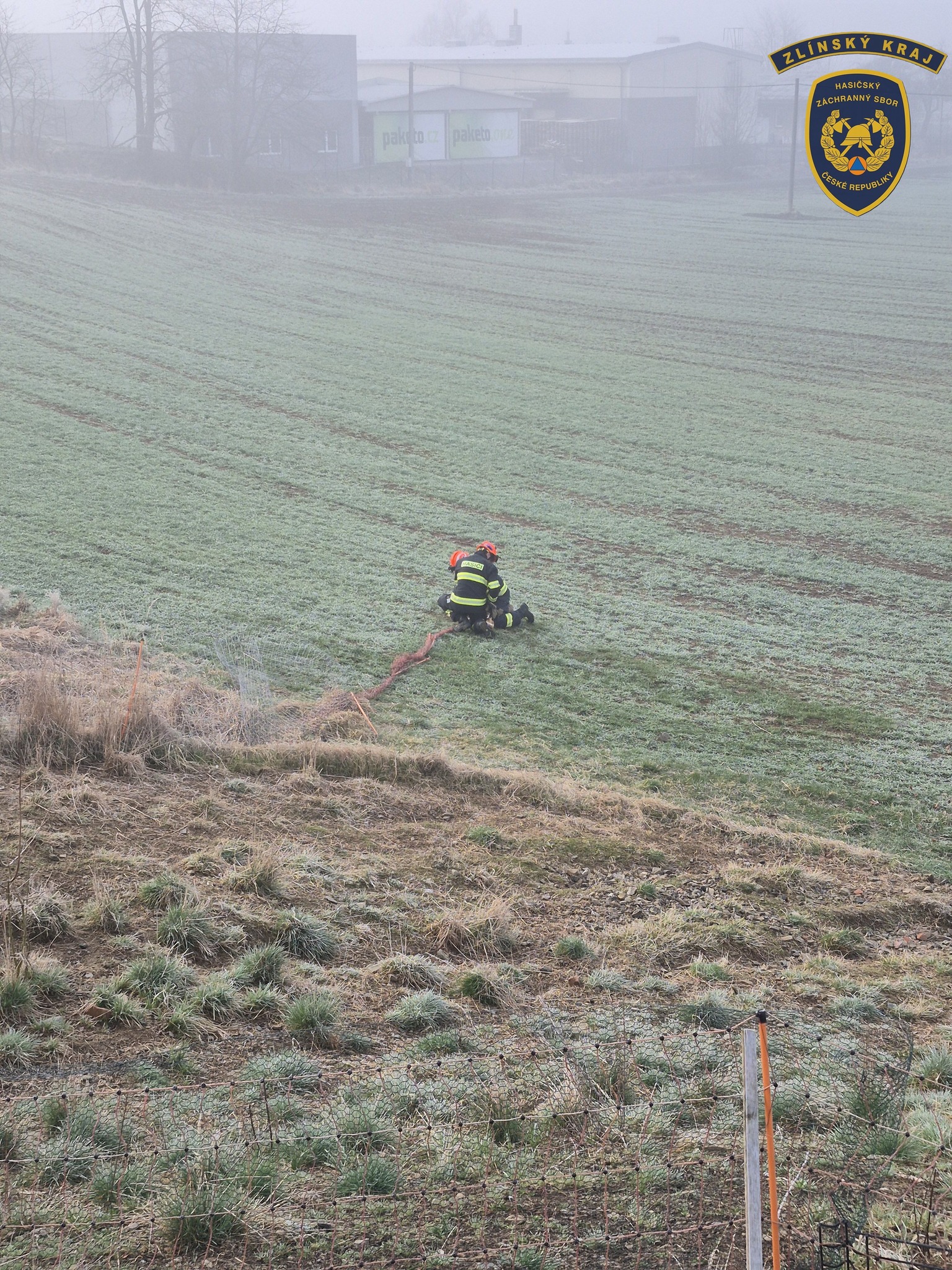 Fotogalerie - Hasiči zachránili srnu, které se zamotal plastový plot kolem krku