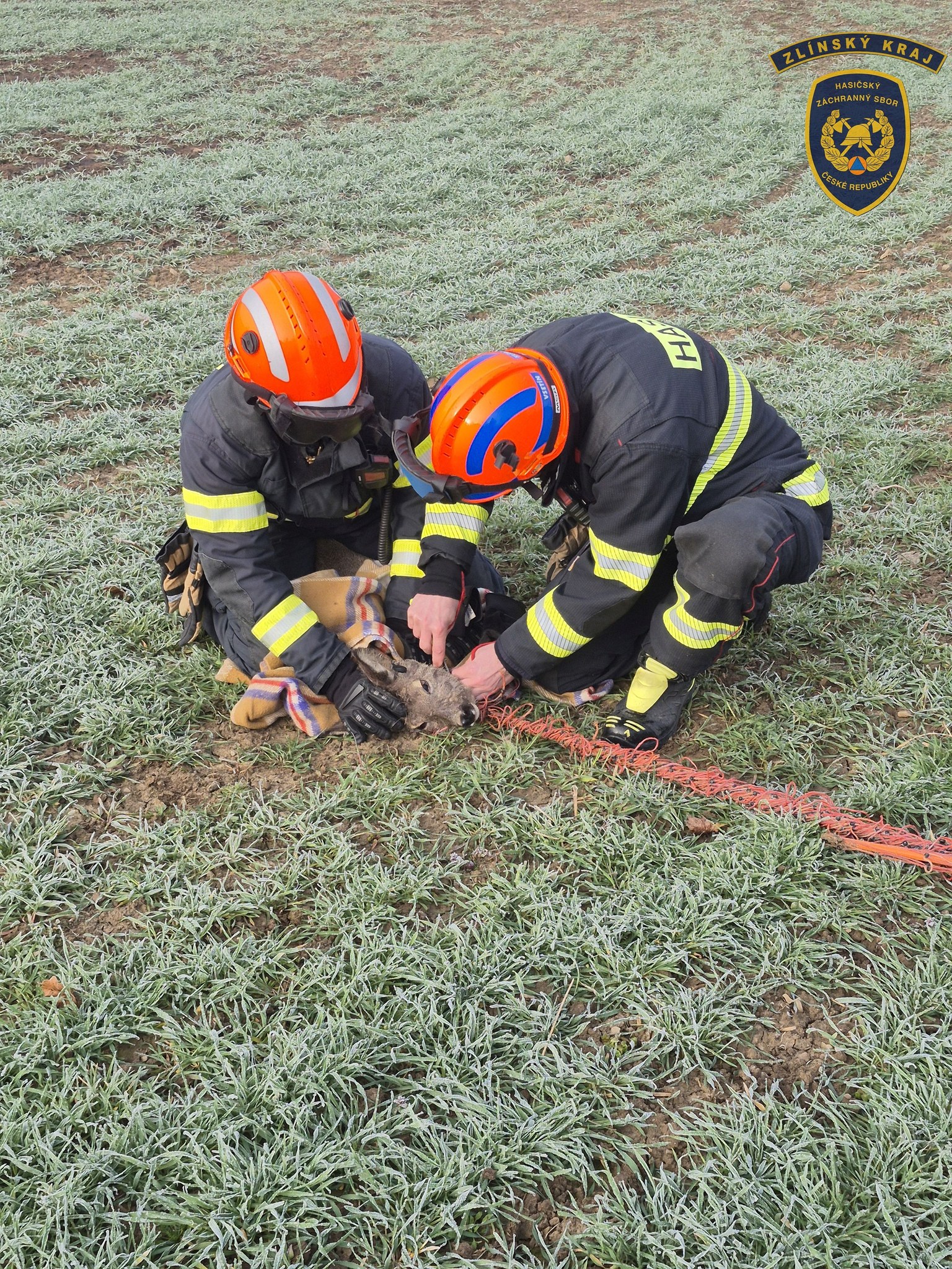 Hasiči zachránili srnu, které se zamotal plastový plot kolem krku. Foto: HZS ZK