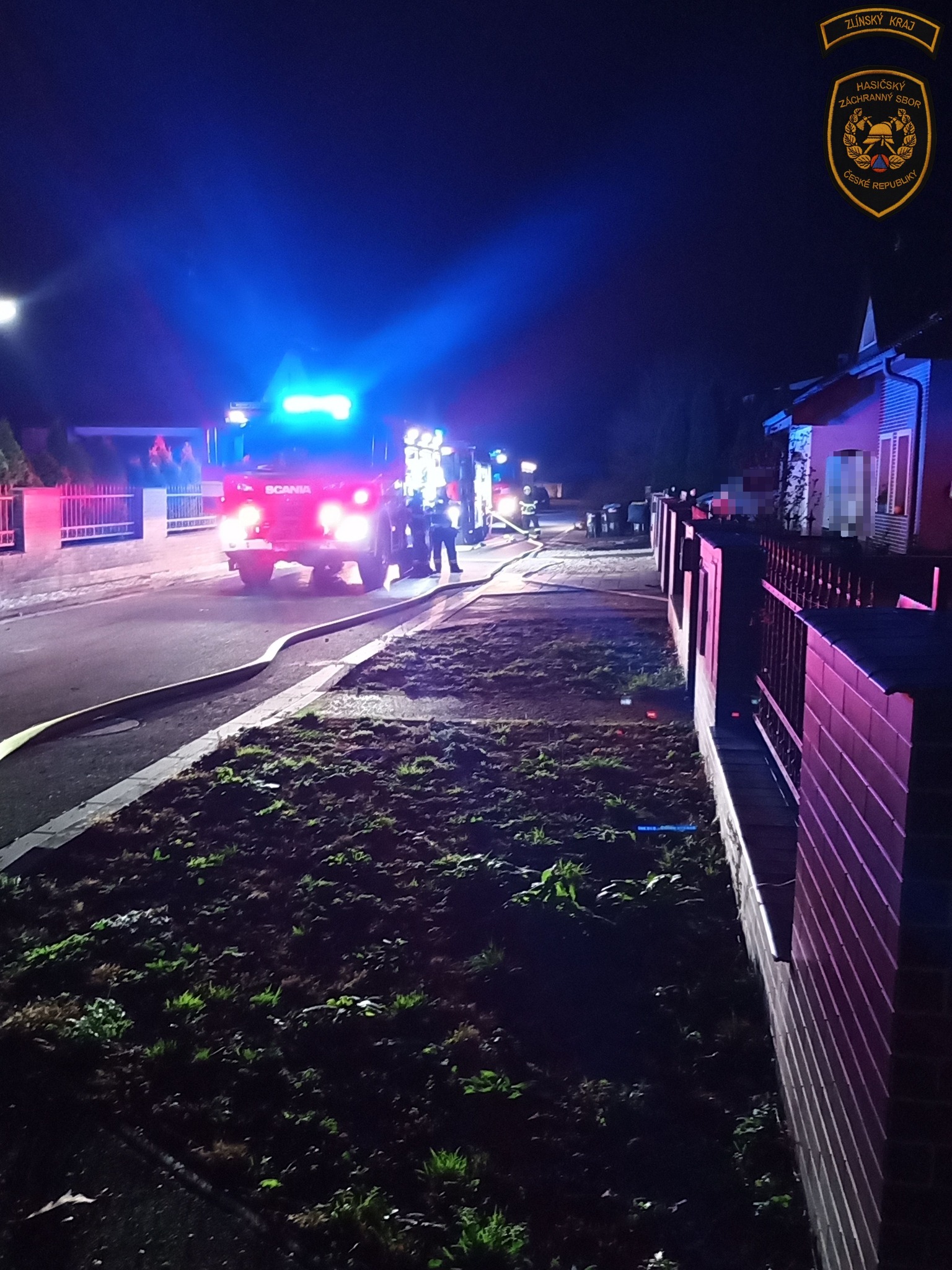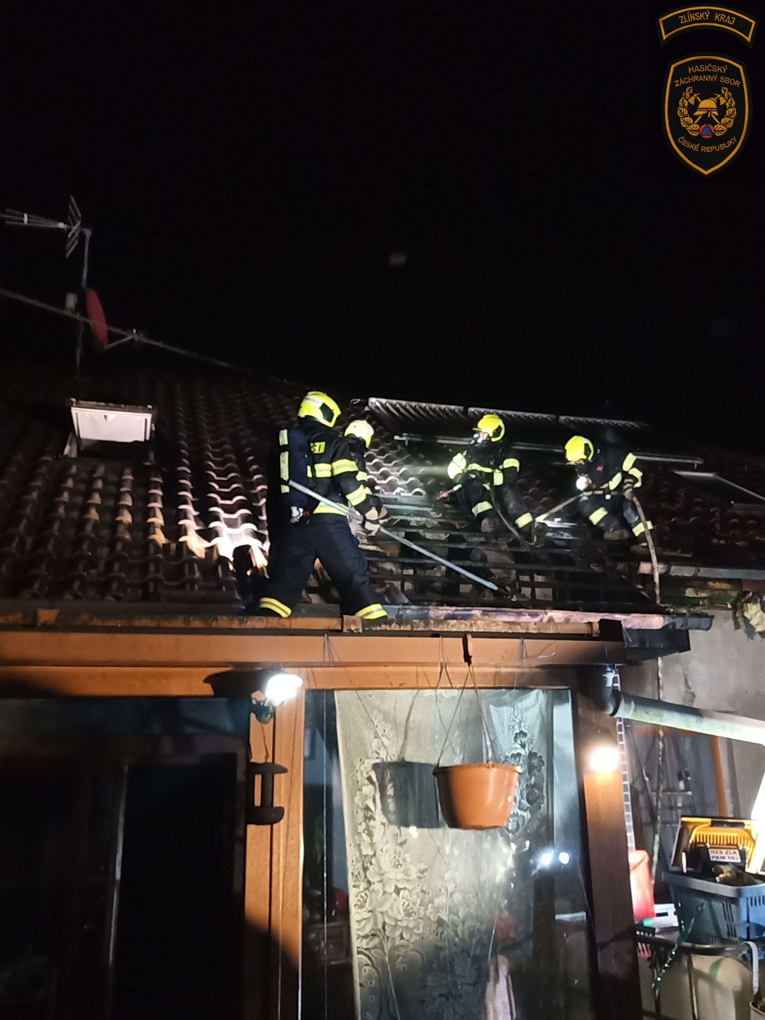 Kvůli požáru lednice v Chropyni hořela i střecha rodinného domu. Foto: HZS ZK