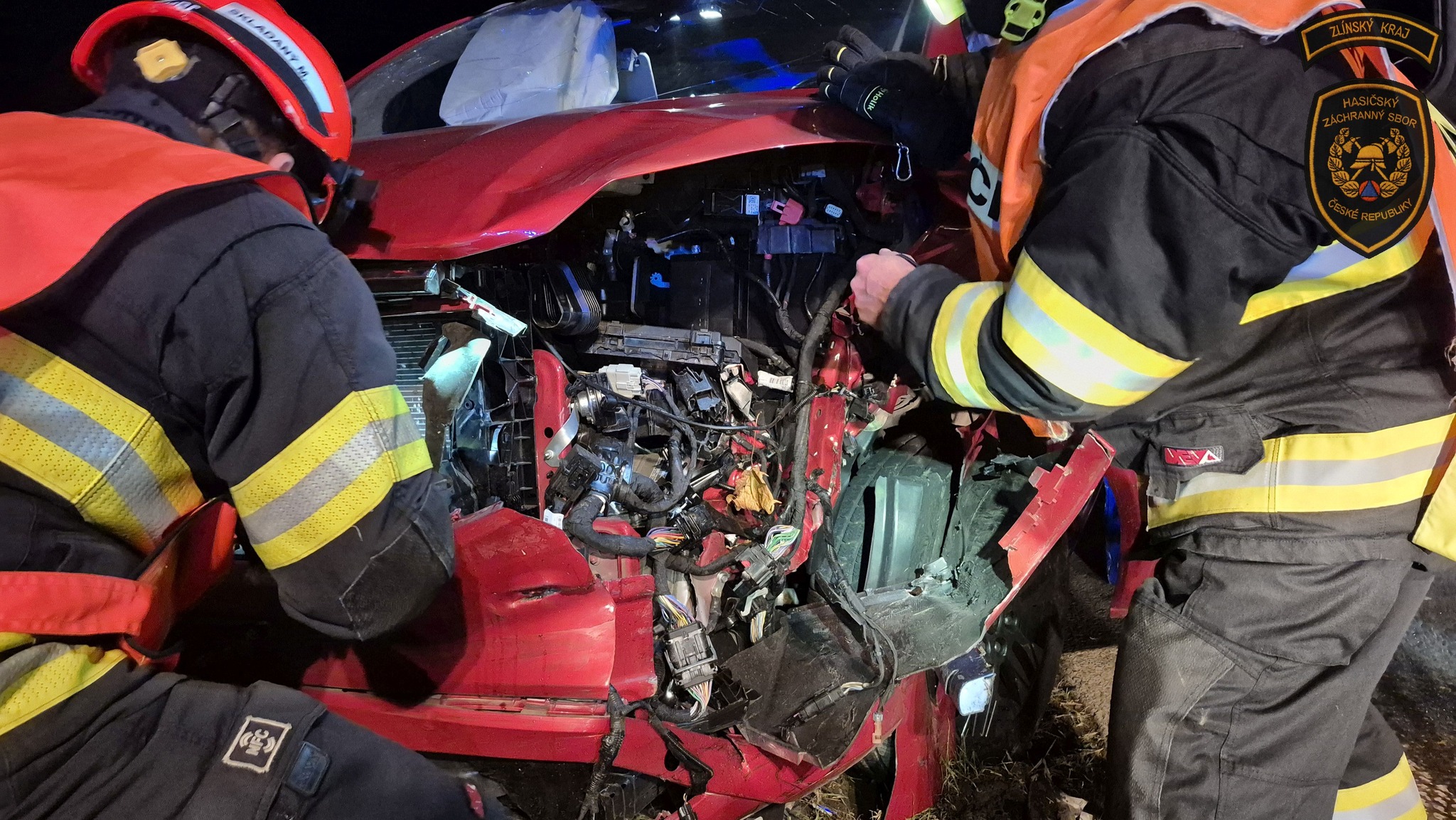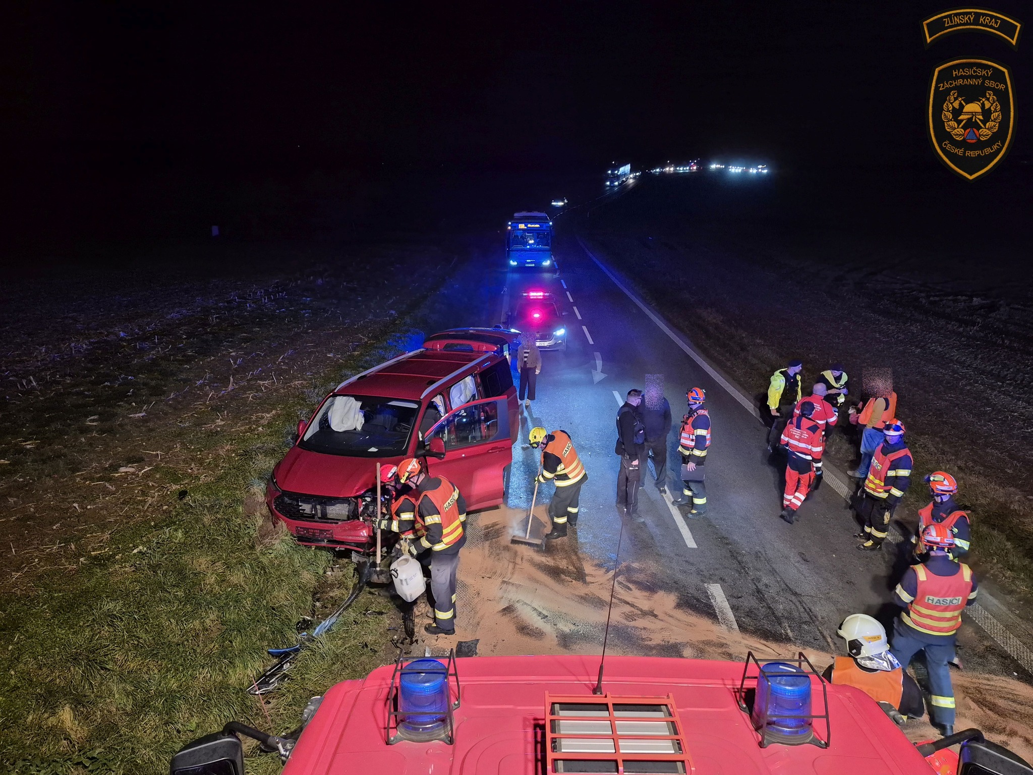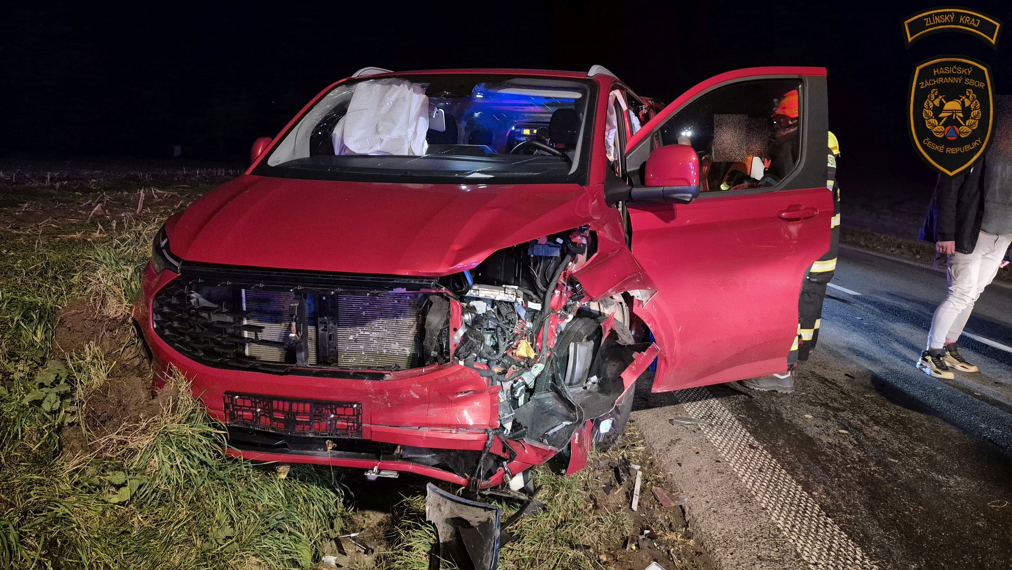 Nehoda osobního vozidla s dodávkou u Fryštáku si vyžádala tři zraněné. Foto: HZS ZK