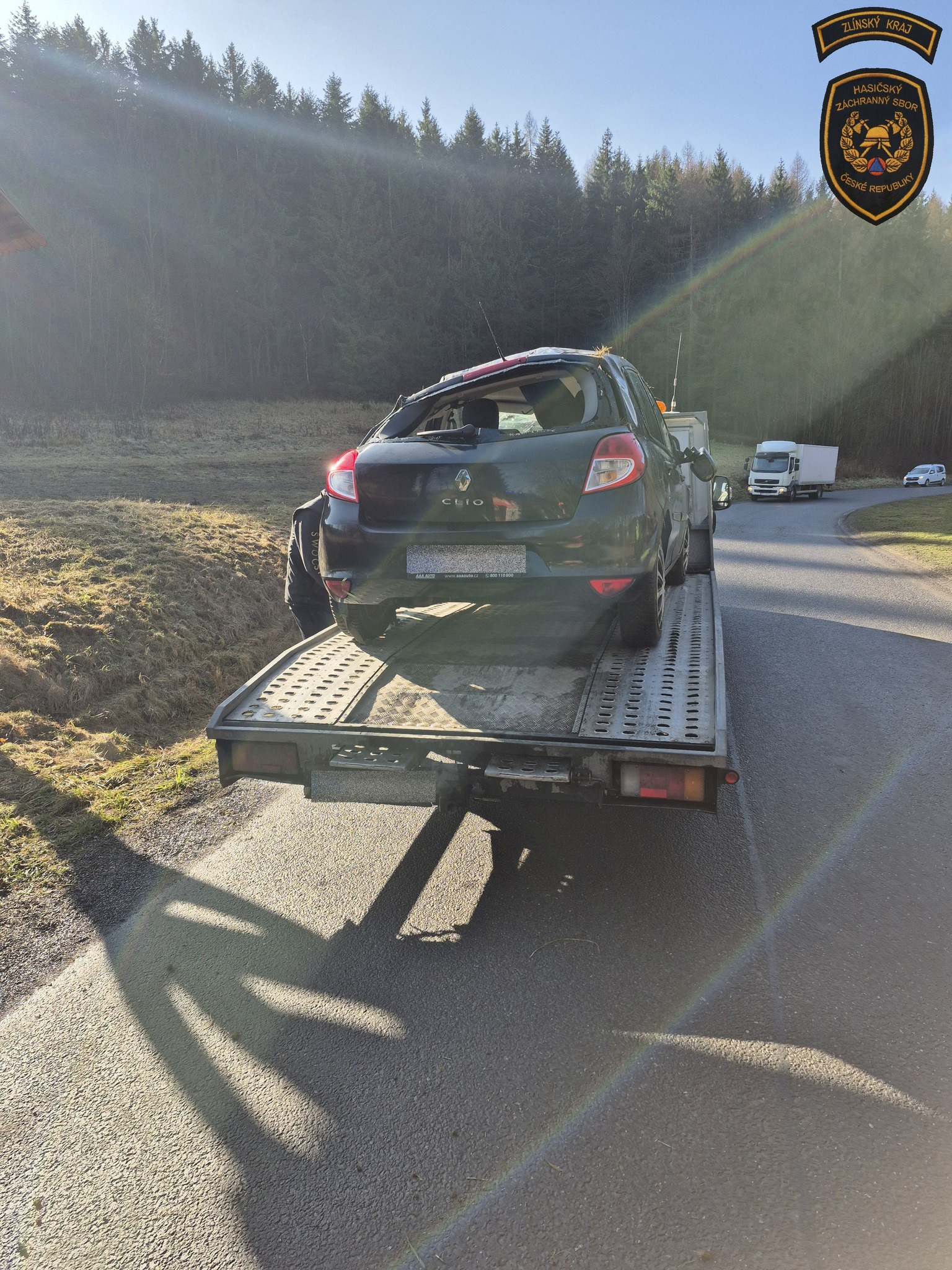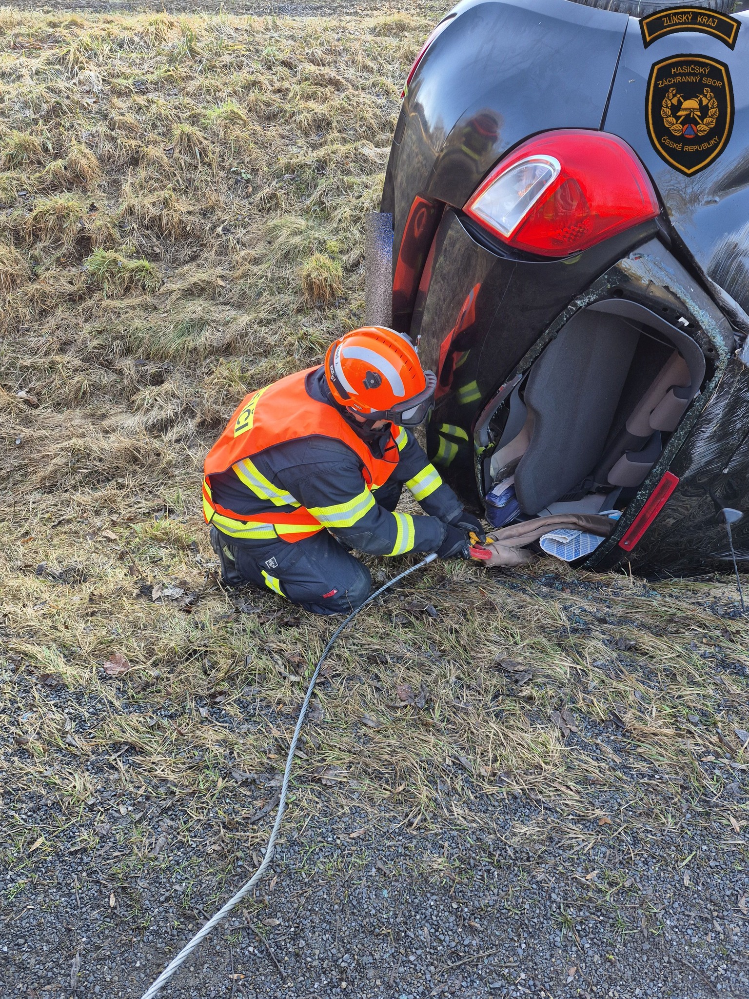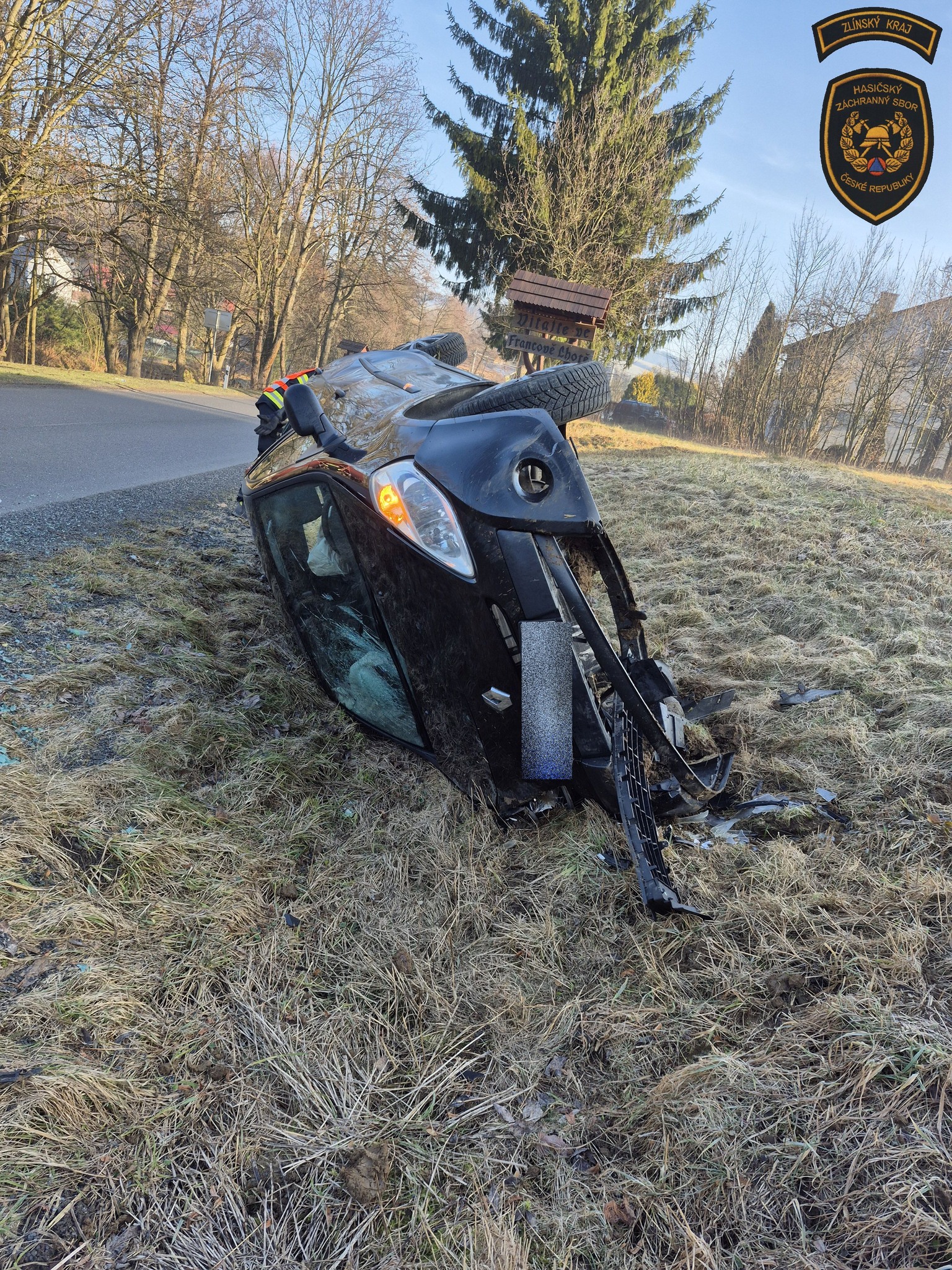 Řidič nezvládl jízdu na namrzlé silnici a s vozidlem skončil v příkopu. Foto: HZS ZK