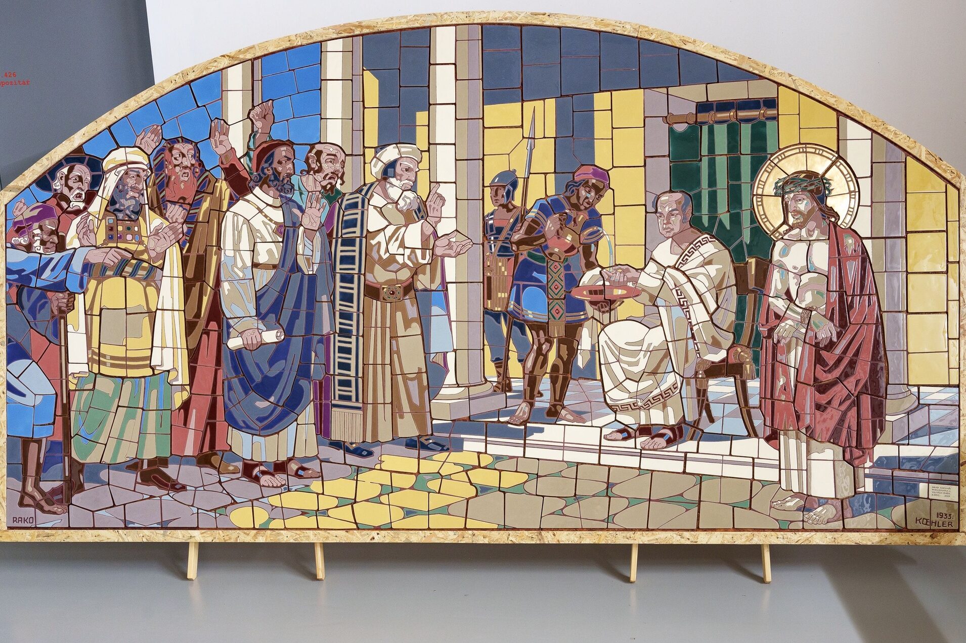 Sestavená mozaika Pilátův soud, výstavní vyhotovení. Foto: Dalibor Novotný