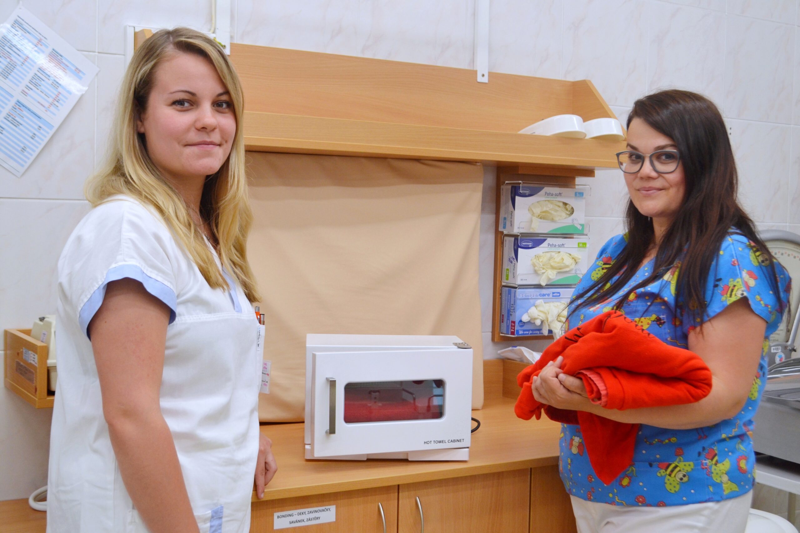 Nový ohřívač ručníků ocení sestřičky a hlavně nejmenší miminka. Foto: Nemocnice AGEL Valašské Meziříčí