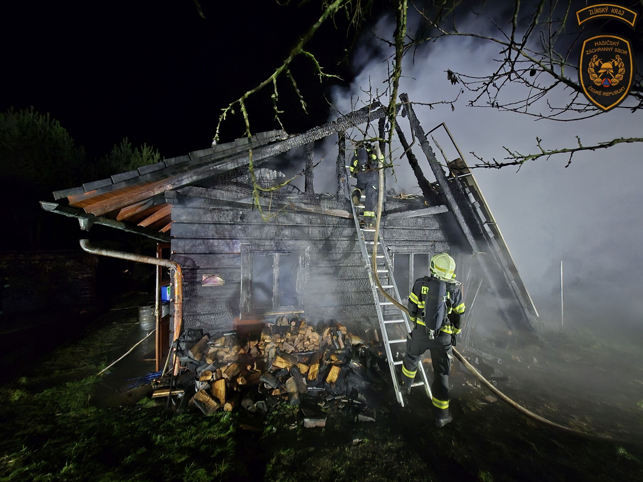 Fotogalerie - Oheň pohltil dřevěnici v Oznici, hasiči bojovali desítky minut