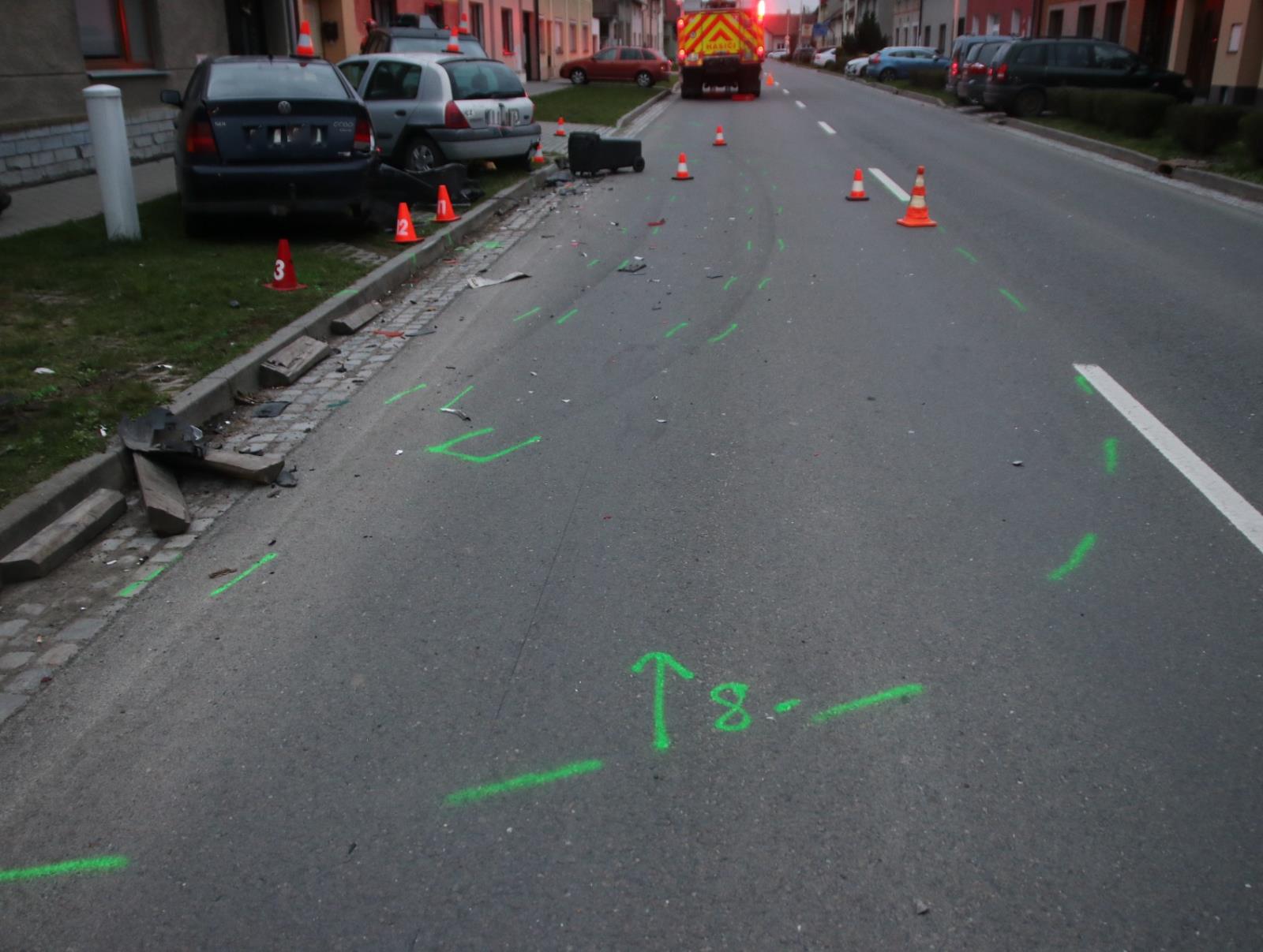 Fotogalerie - Opilá řidička v Chropyni zdemolovala čtyři zaparkovaná auta. Způsobila škodu za statisíce