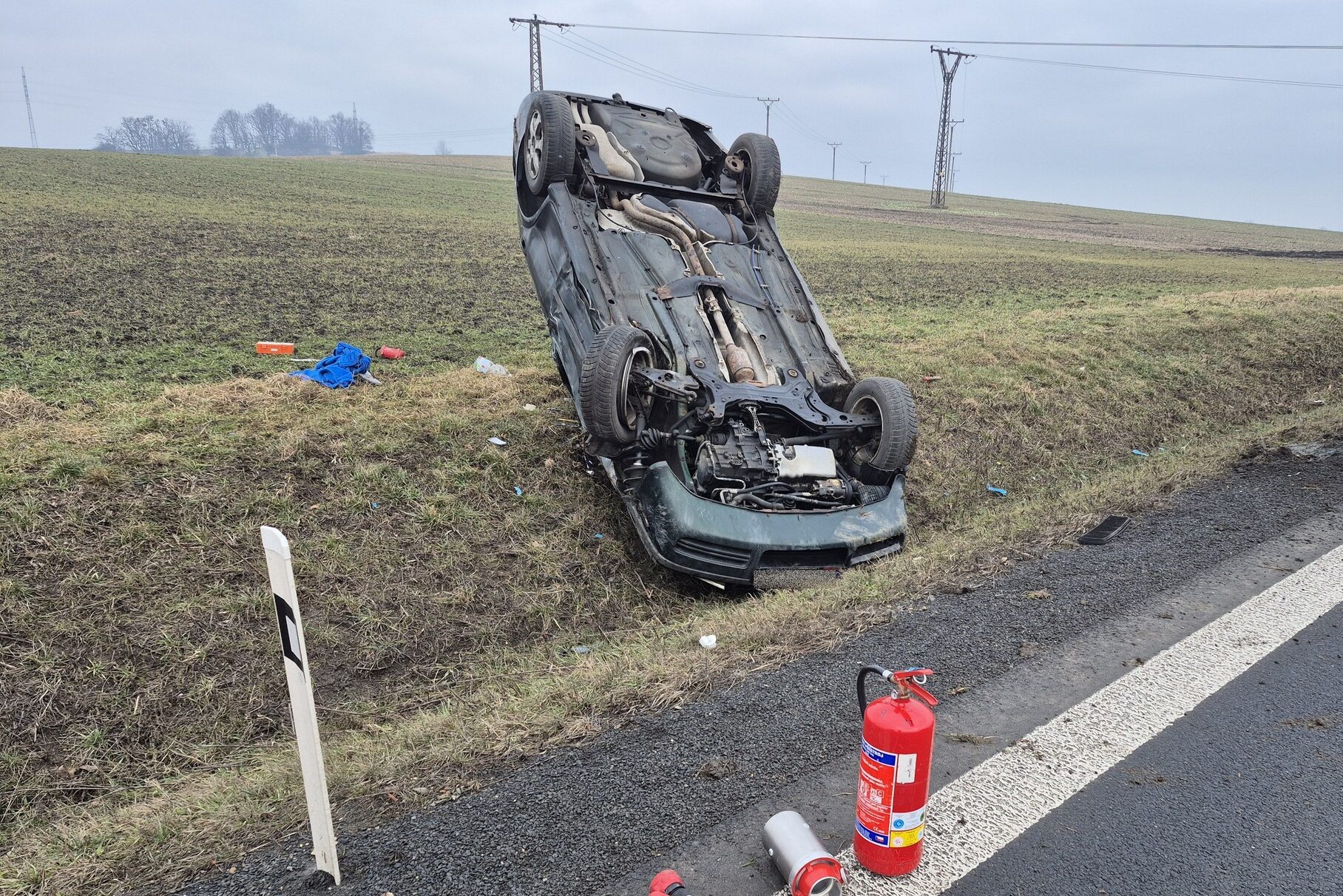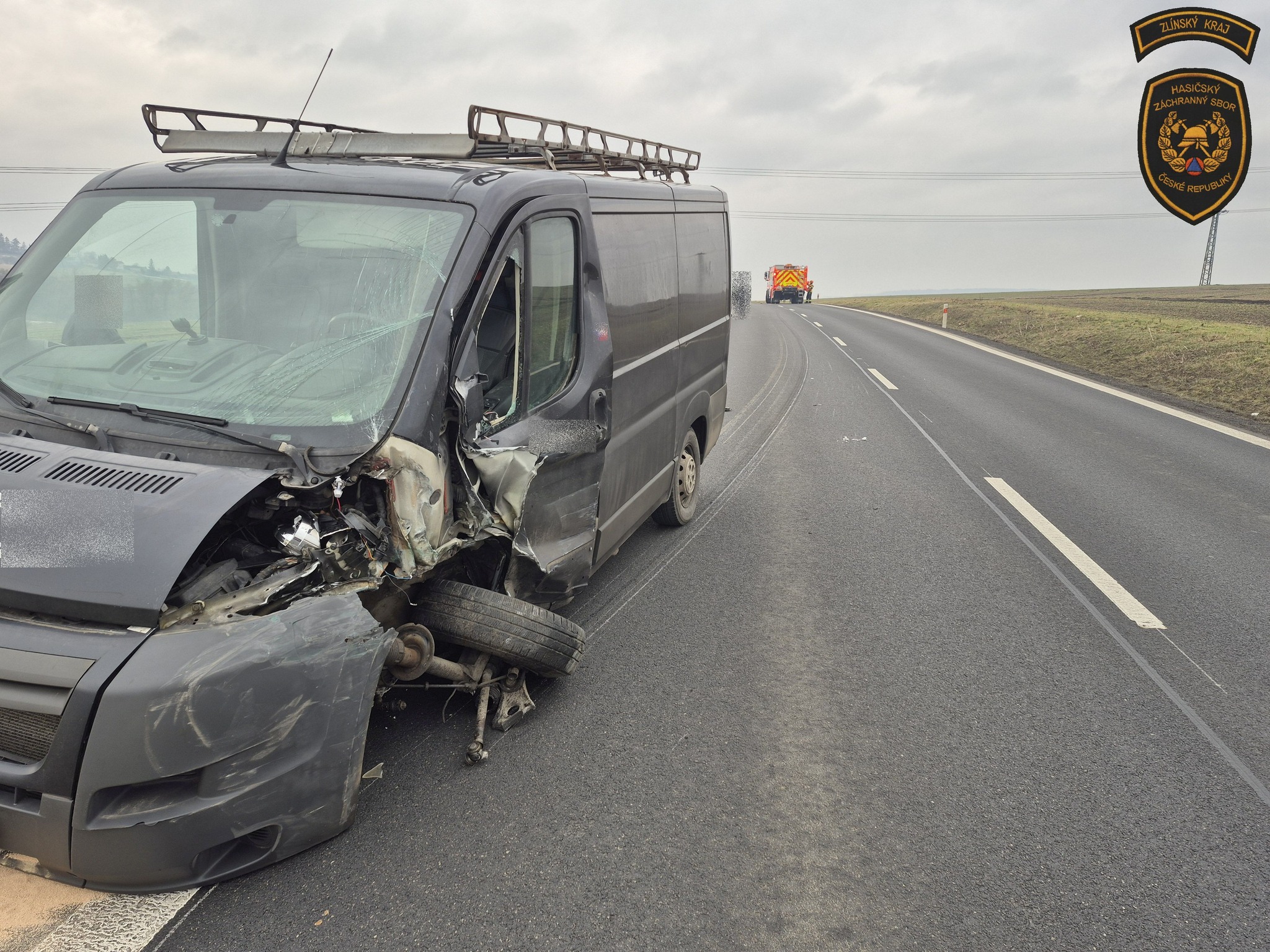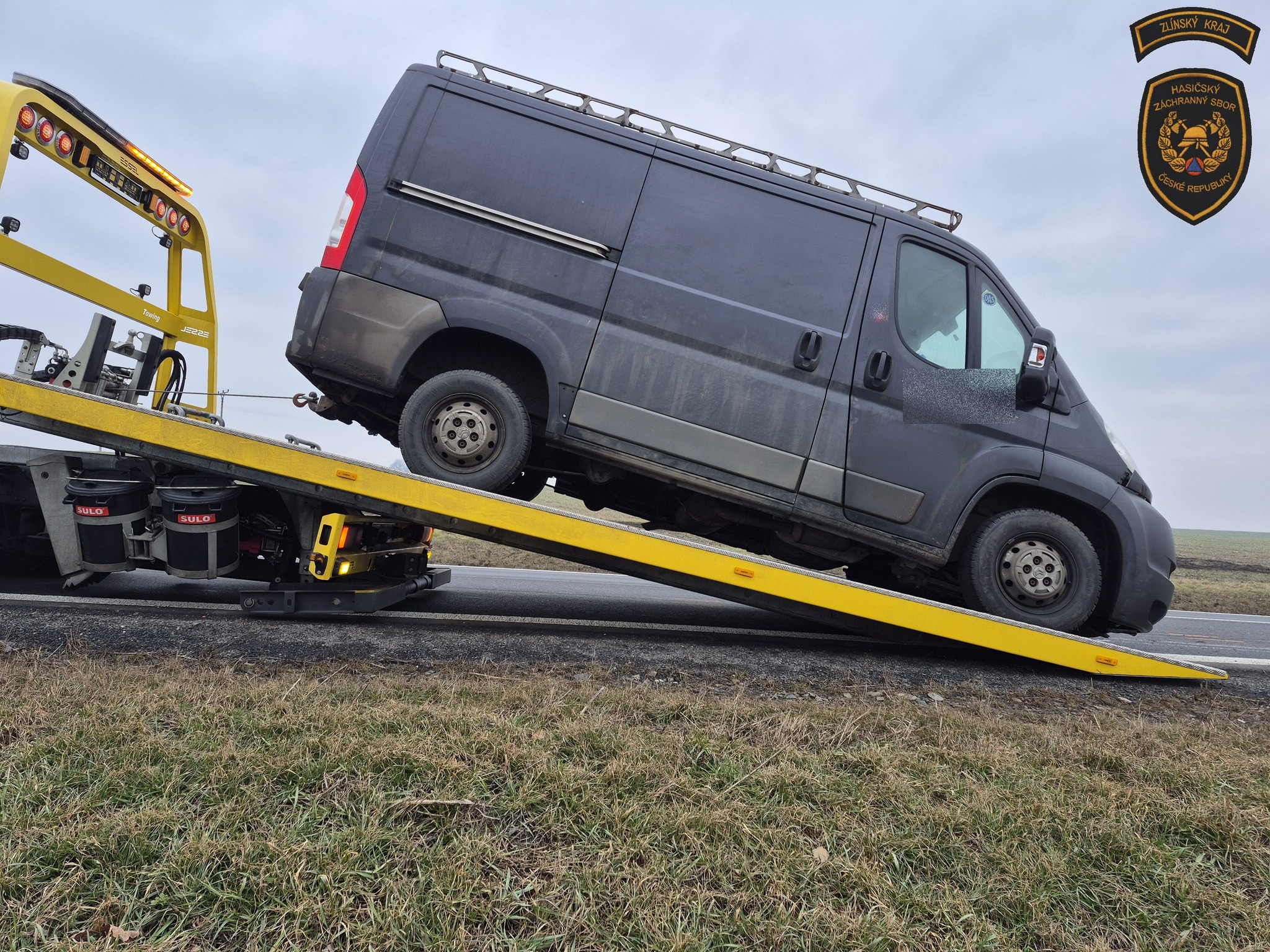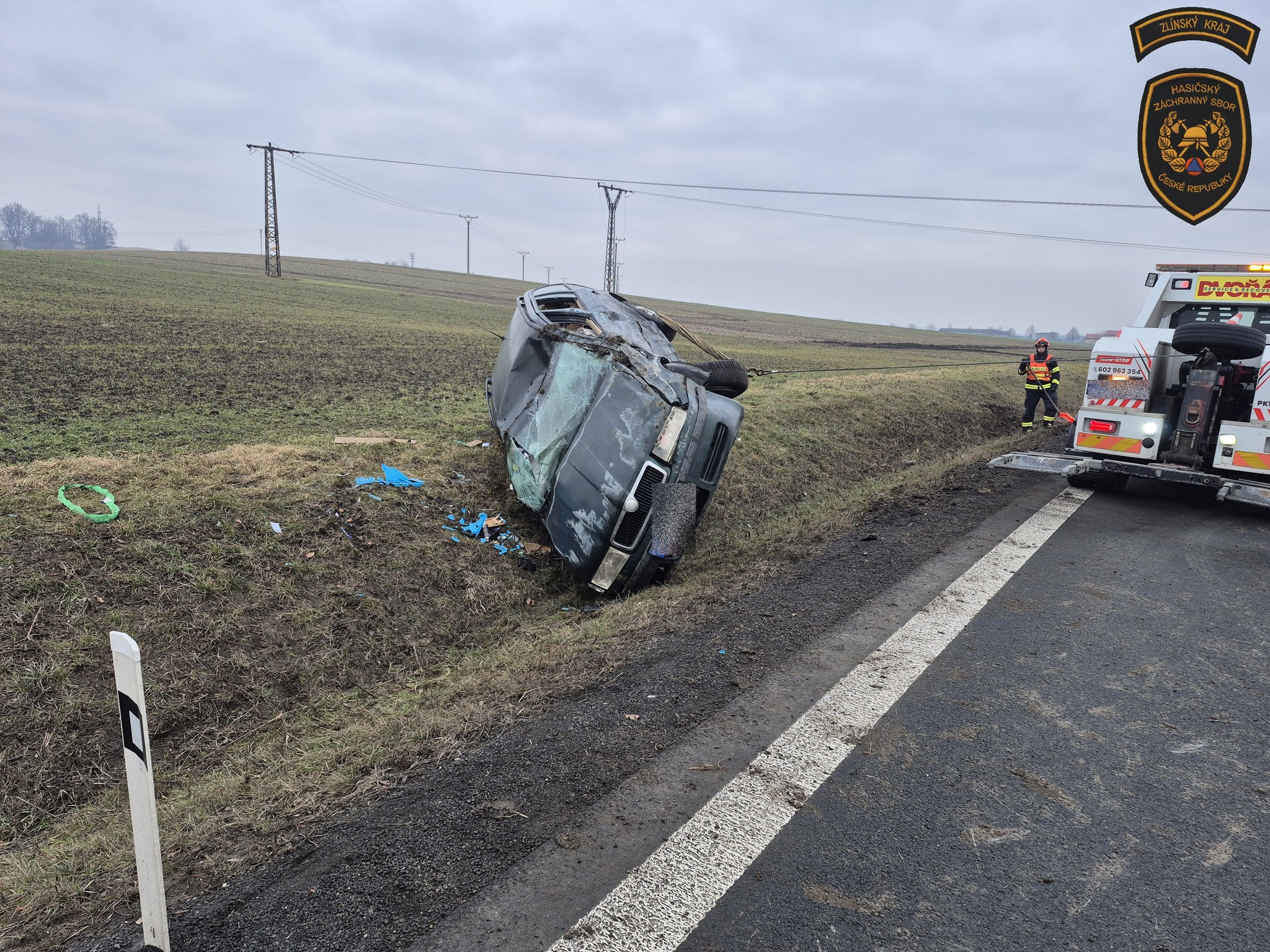 Osobní vozidlo skončilo po srážce s dodávkou v příkopu na střeše. Foto: HZS ZK