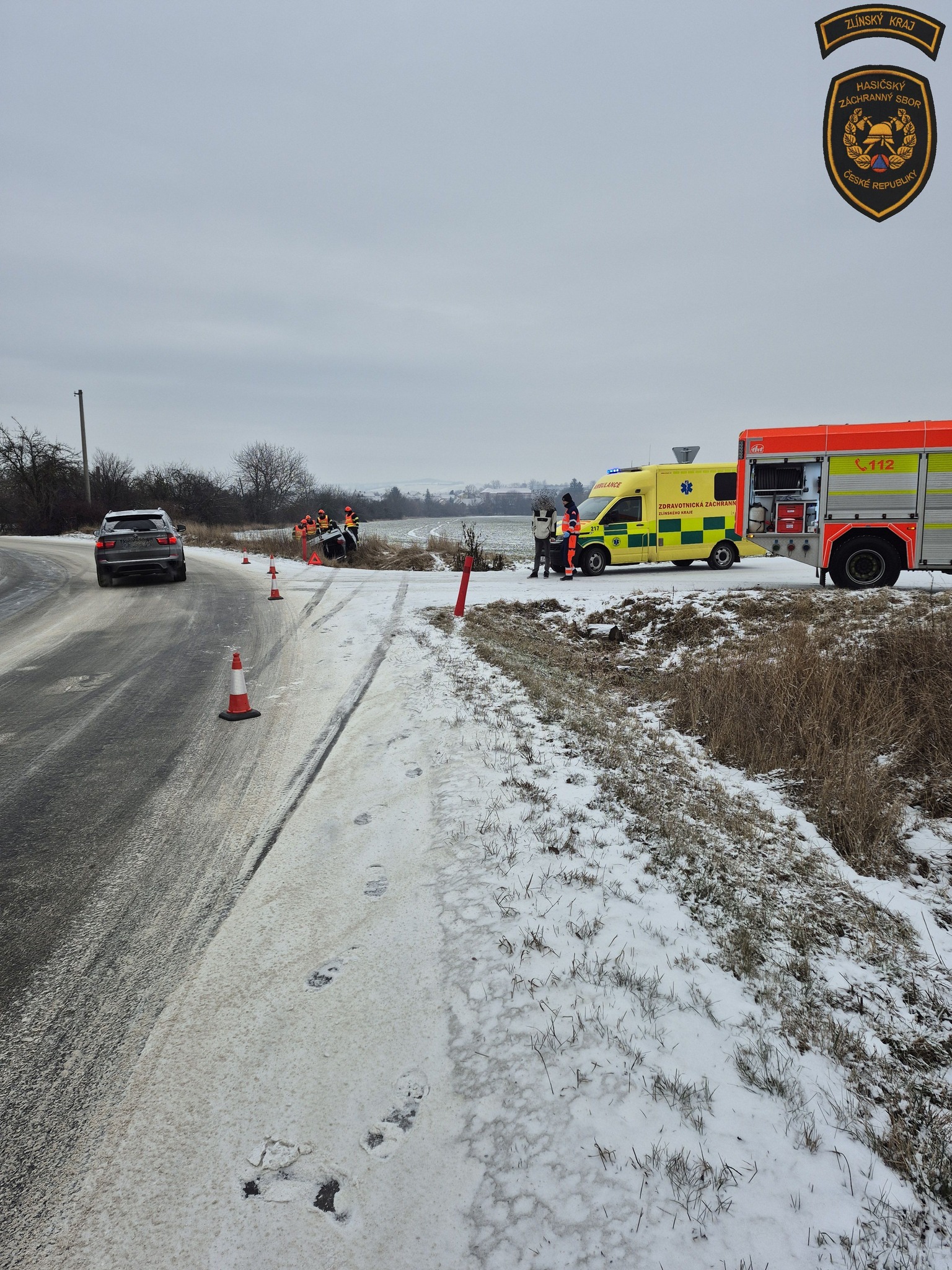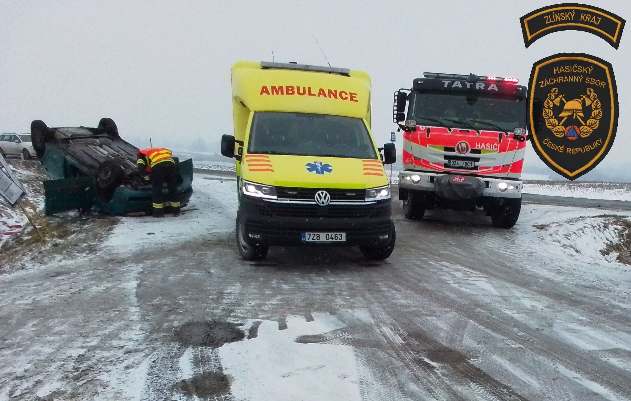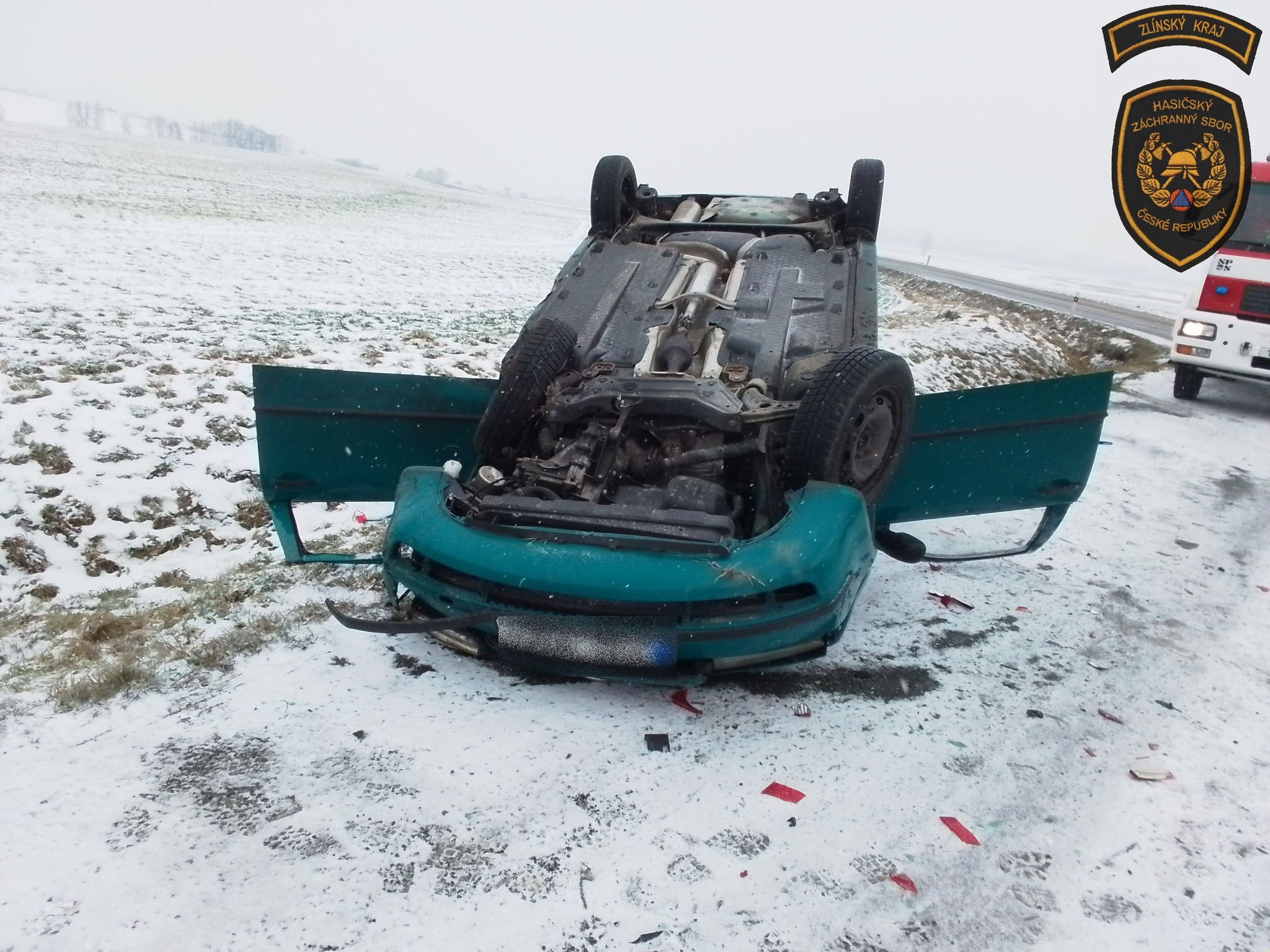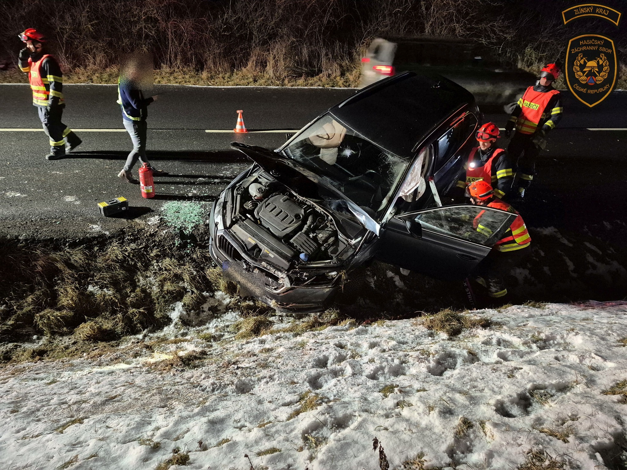 Páteční odpoledne přineslo pět dopravních nehod. Na fotce nehoda Kroměříž - Postoupky. Foto: HZS Zlínského kraje