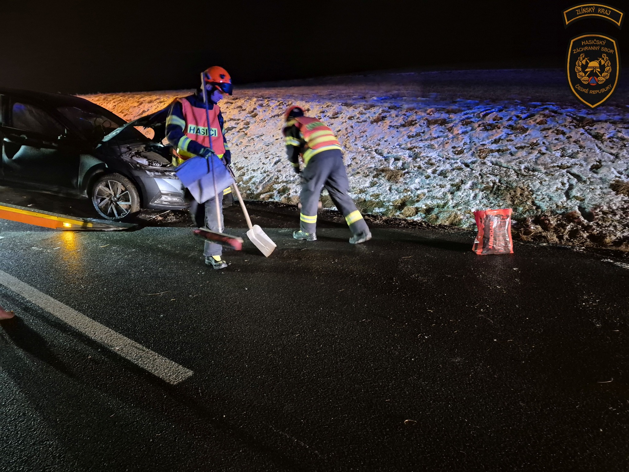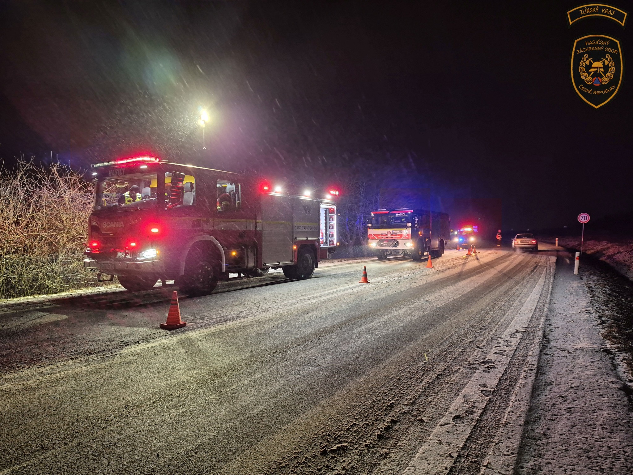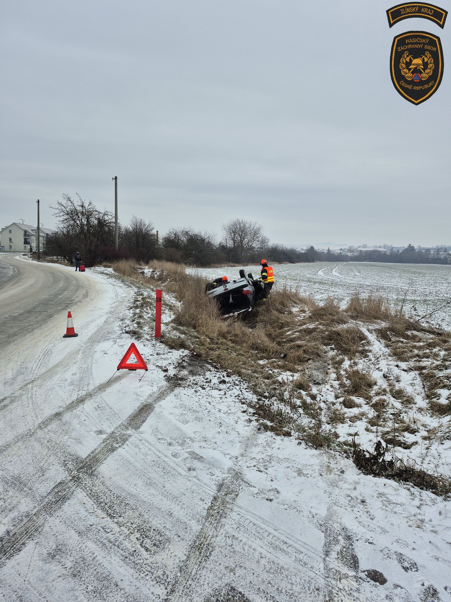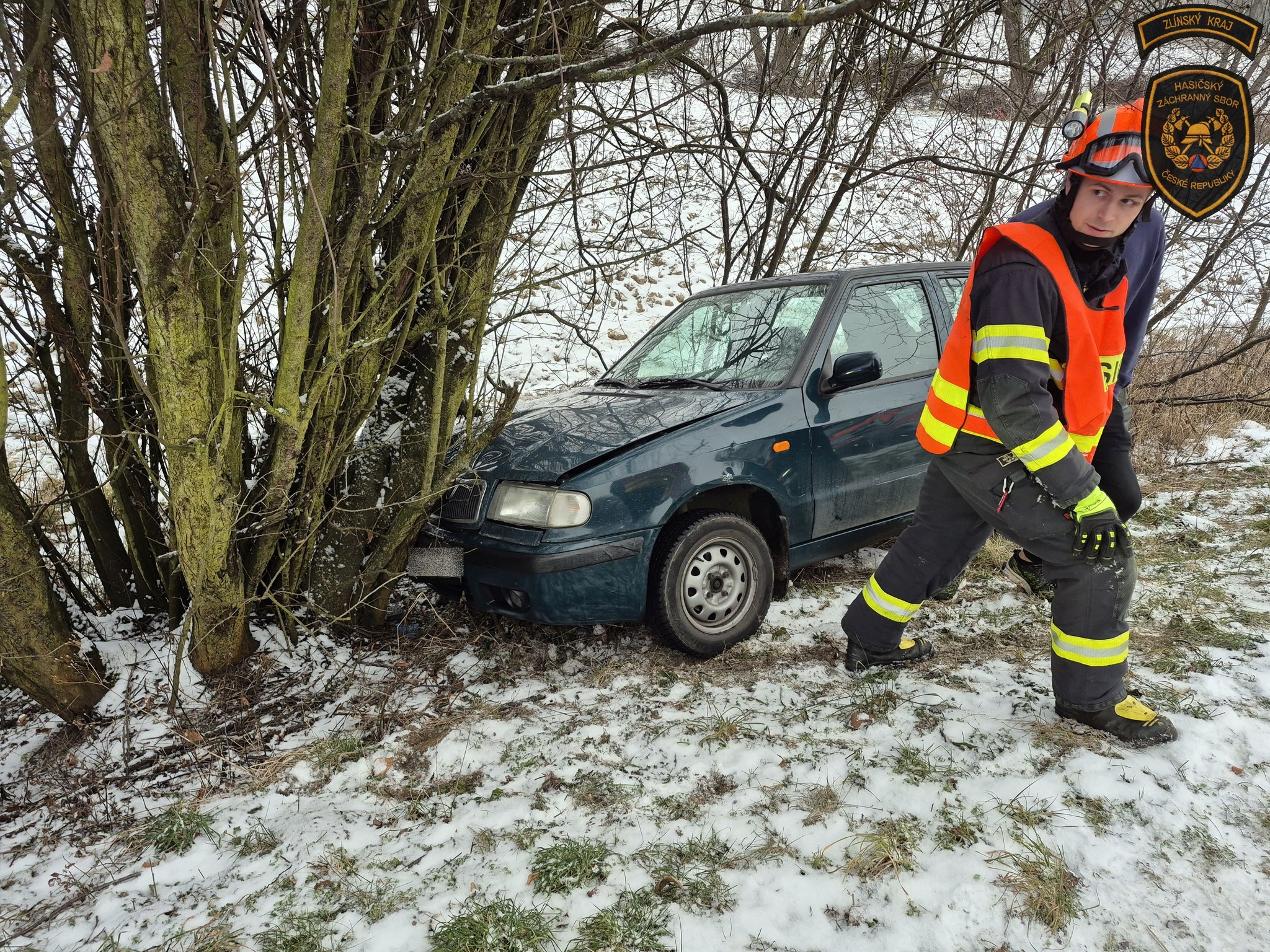 Páteční odpoledne přineslo pět dopravních nehod. Na fotce nehoda Kroměříž - Postoupky. Foto: HZS Zlínského kraje