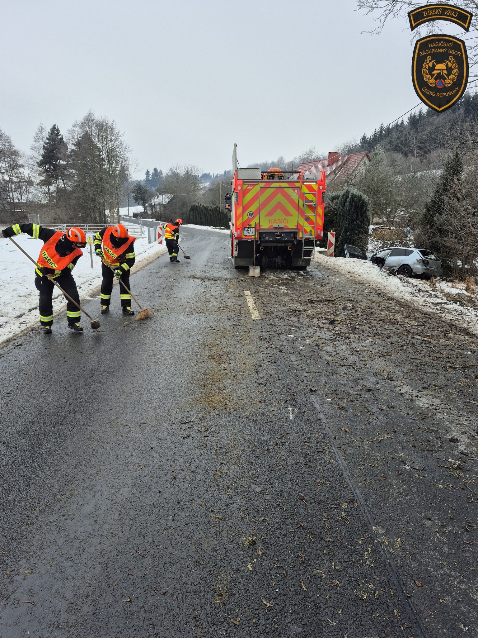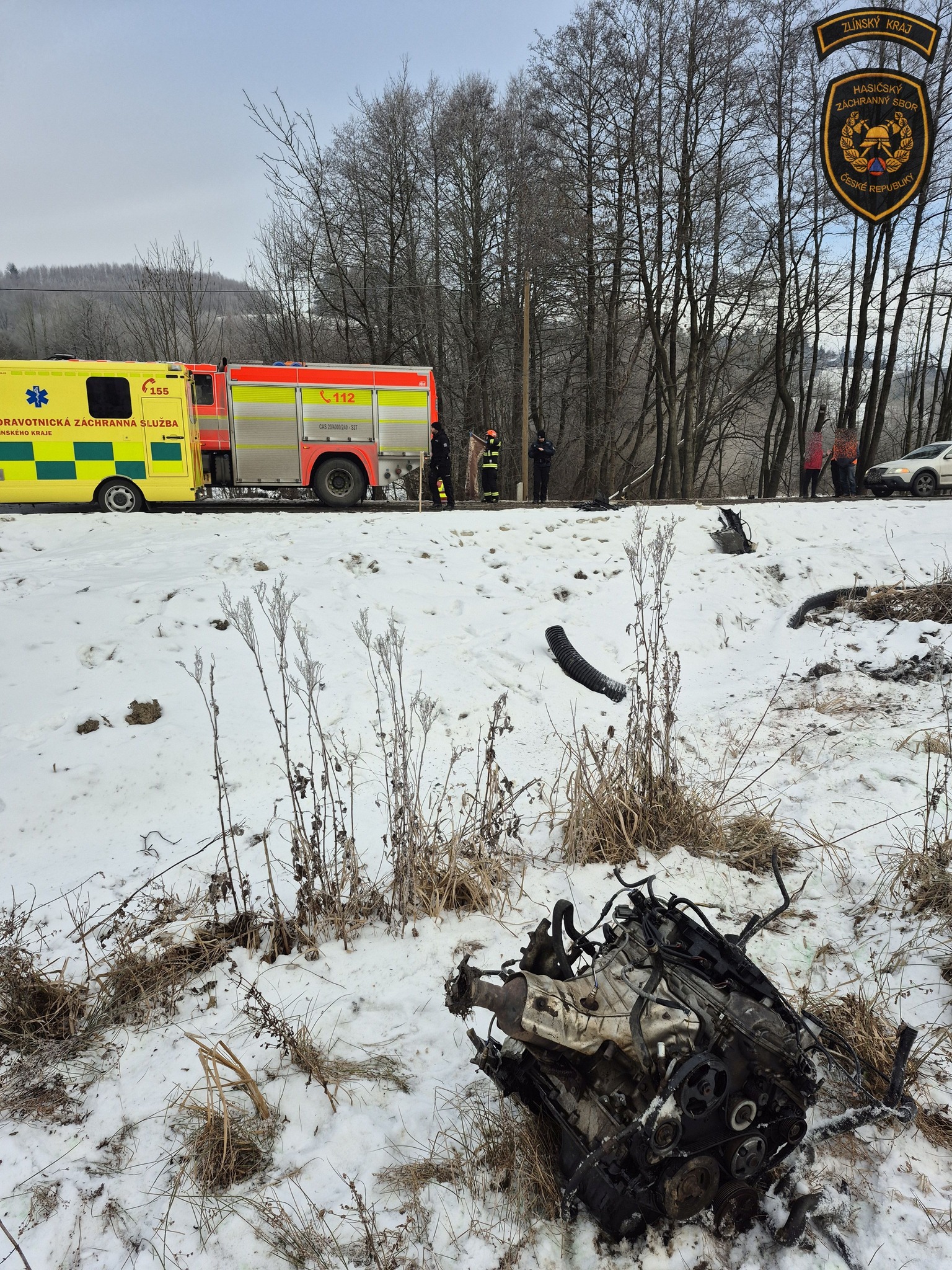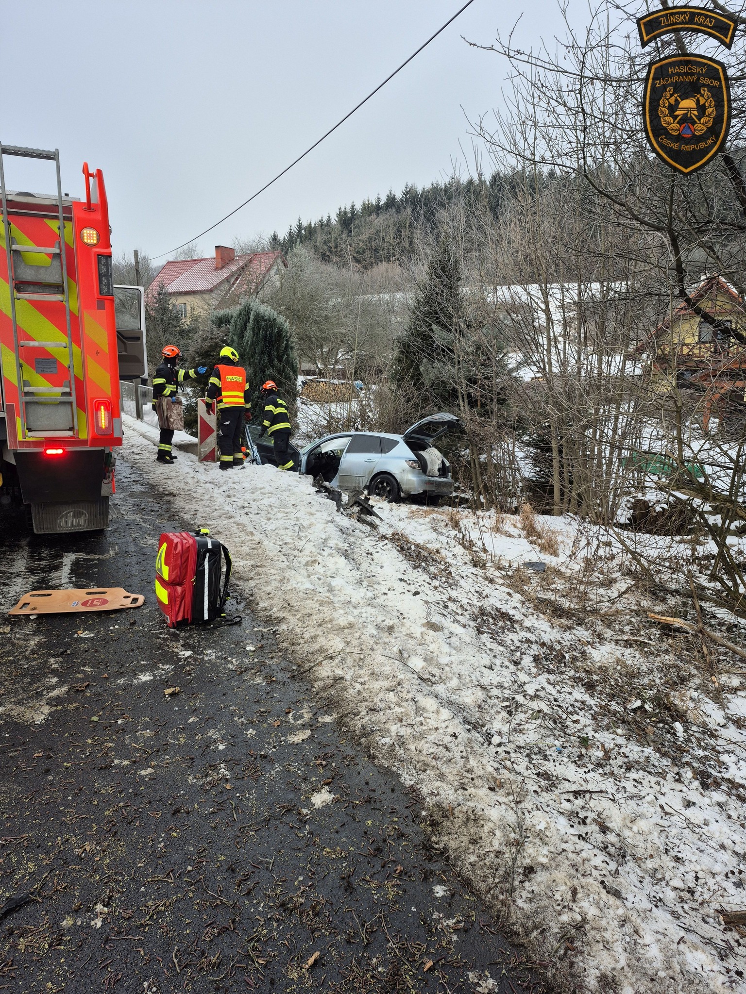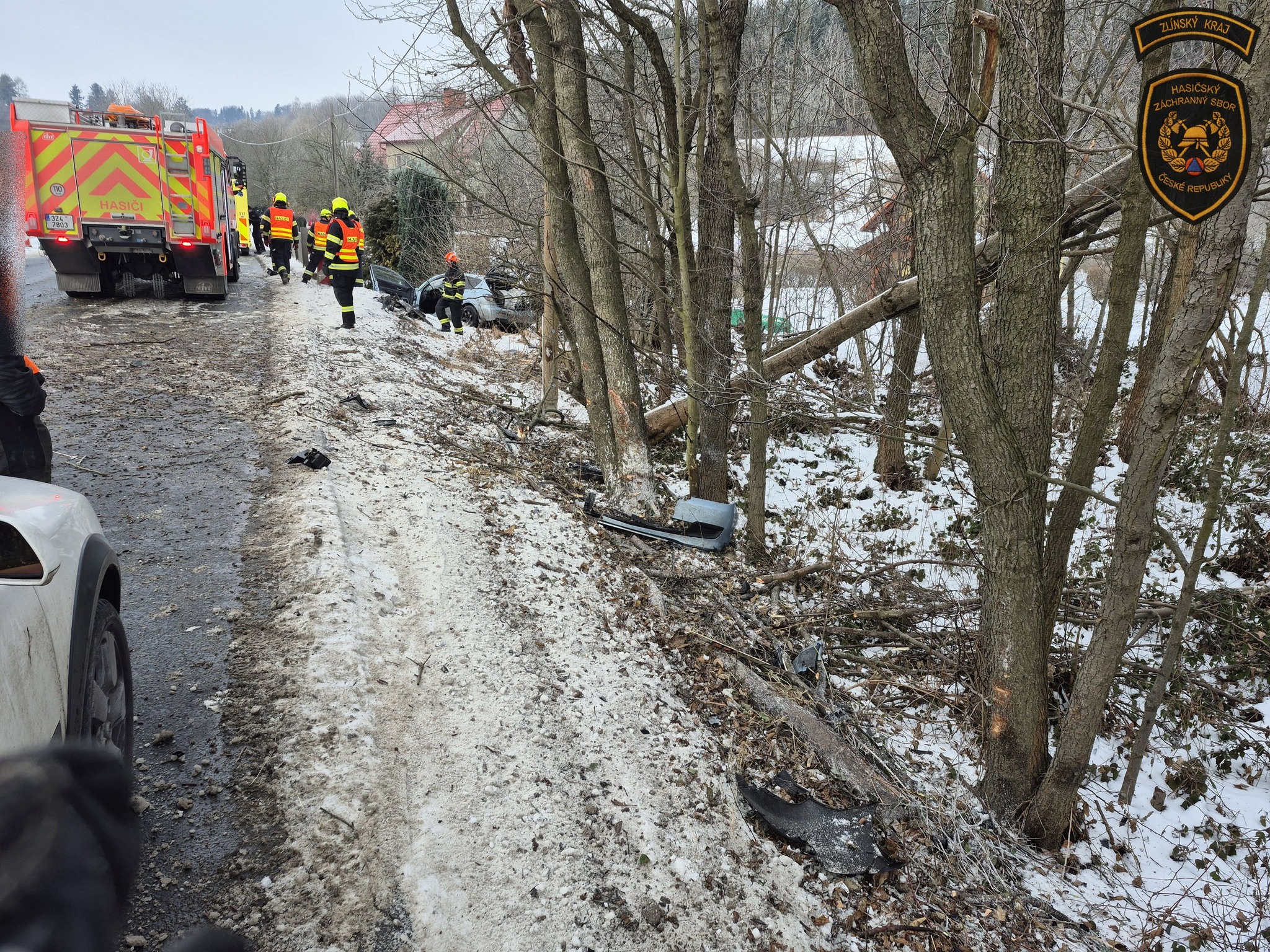 V Hošťálkové narazilo auto do vzrostlého stromu, řidiče museli vyprostit hasiči. Foto: HZS ZK