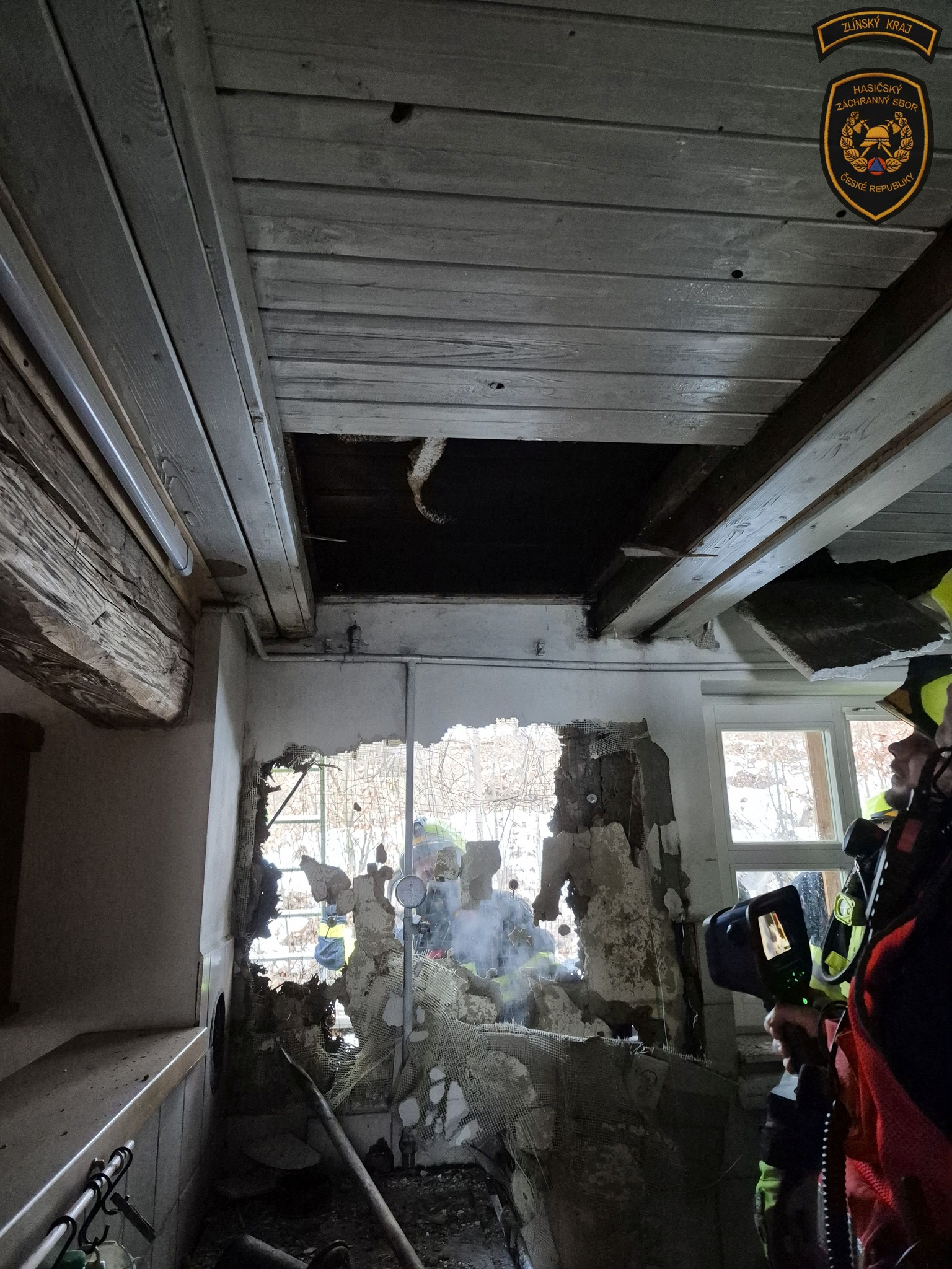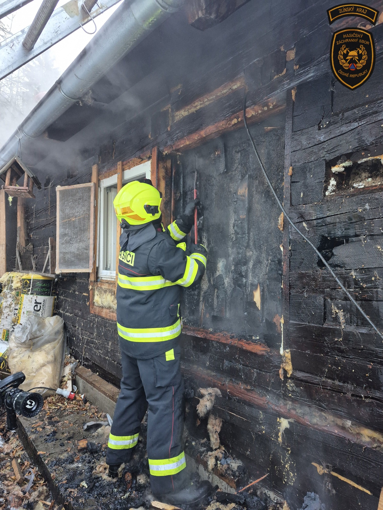 Požár dřevěné chaty v Lužné způsobil škodu za půl milionu korun. Foto: HZS ZK