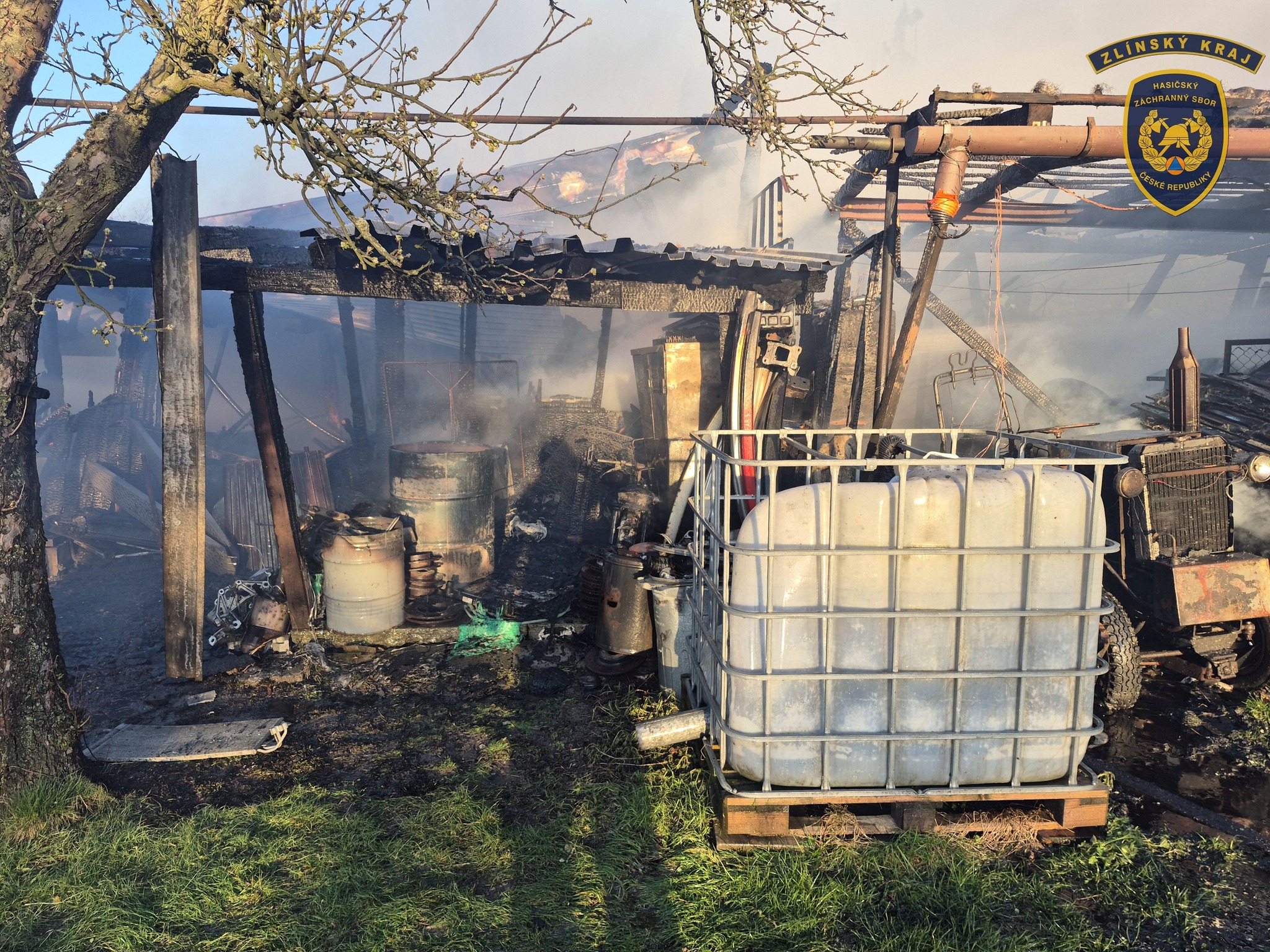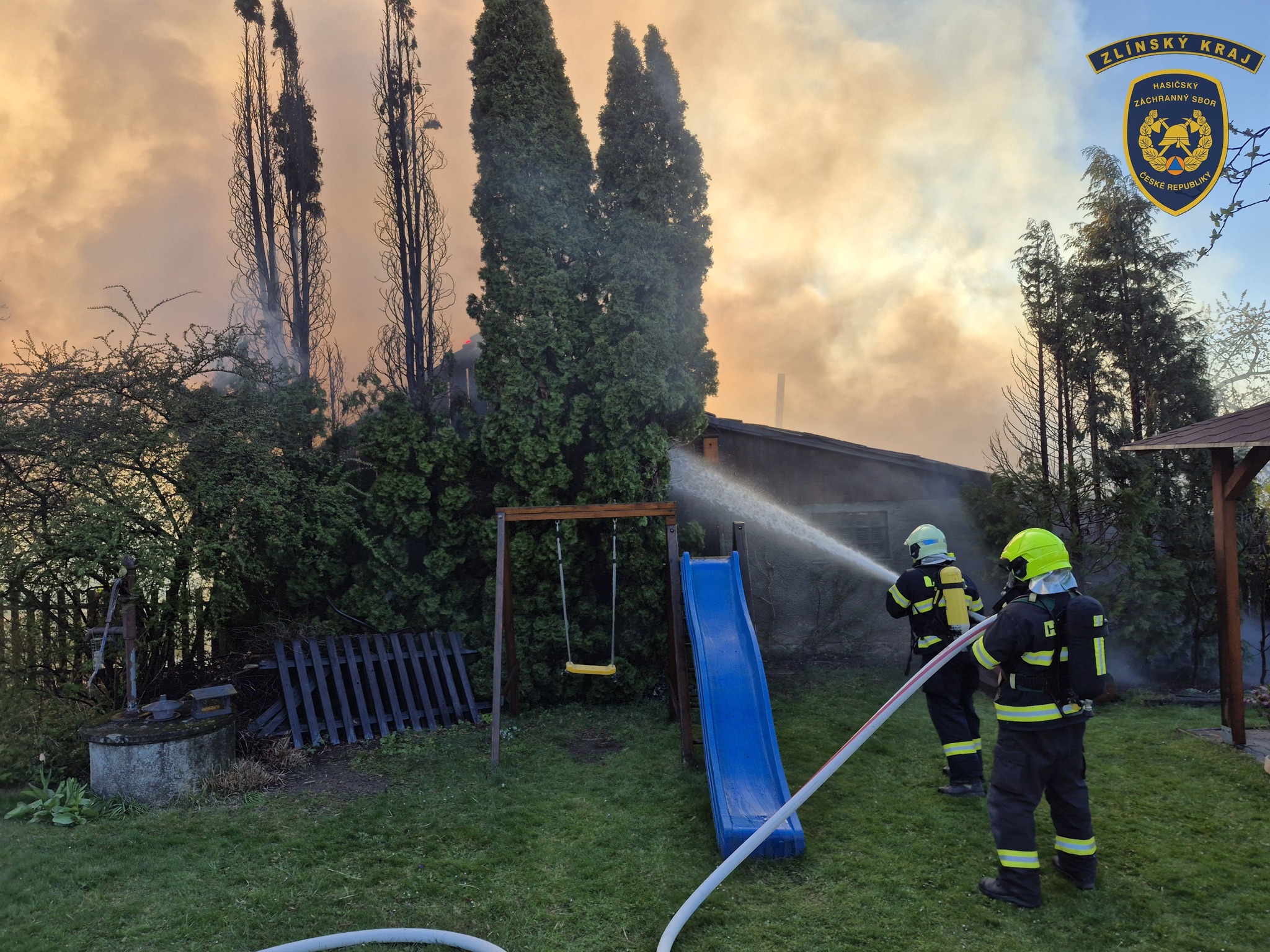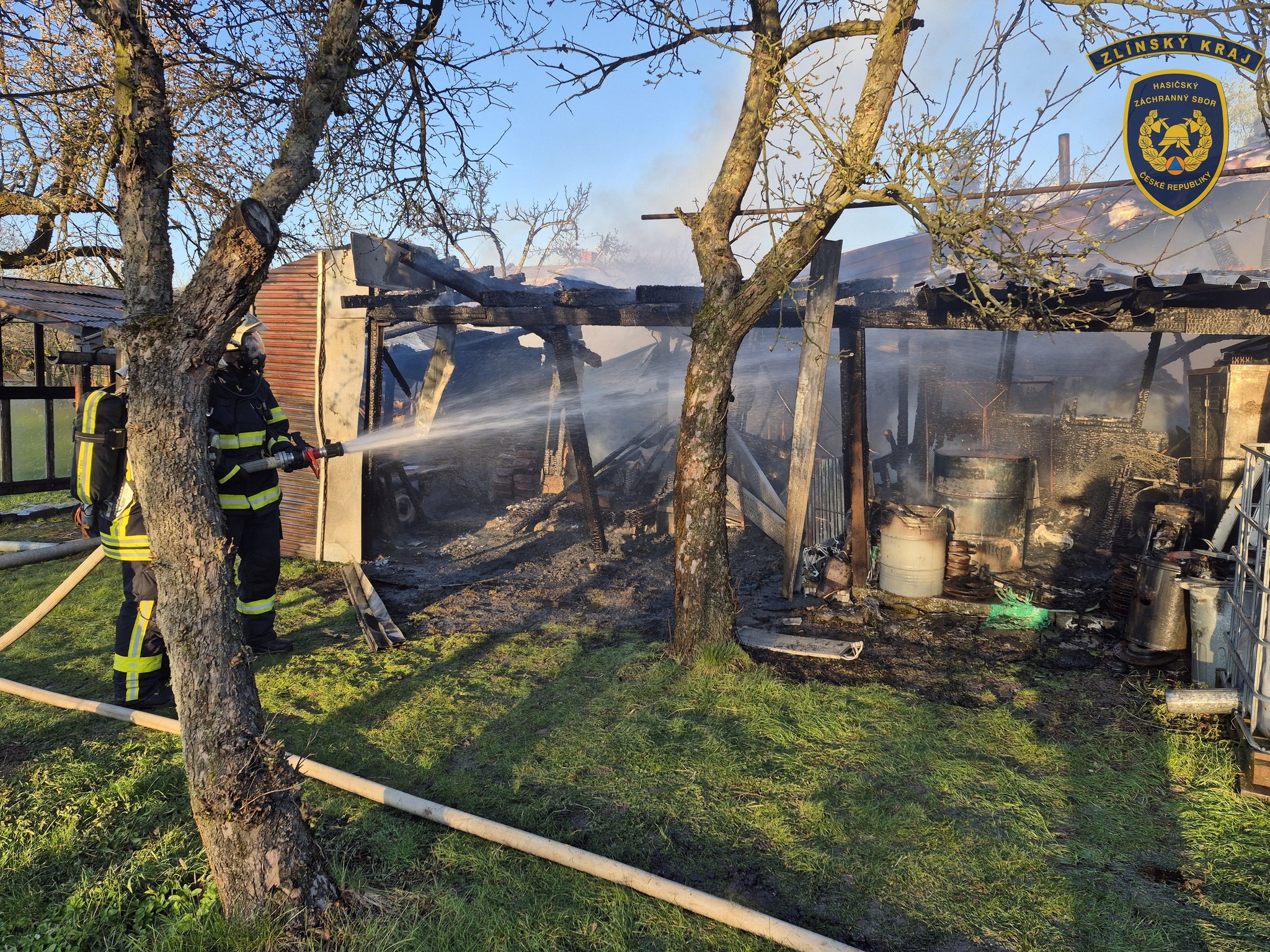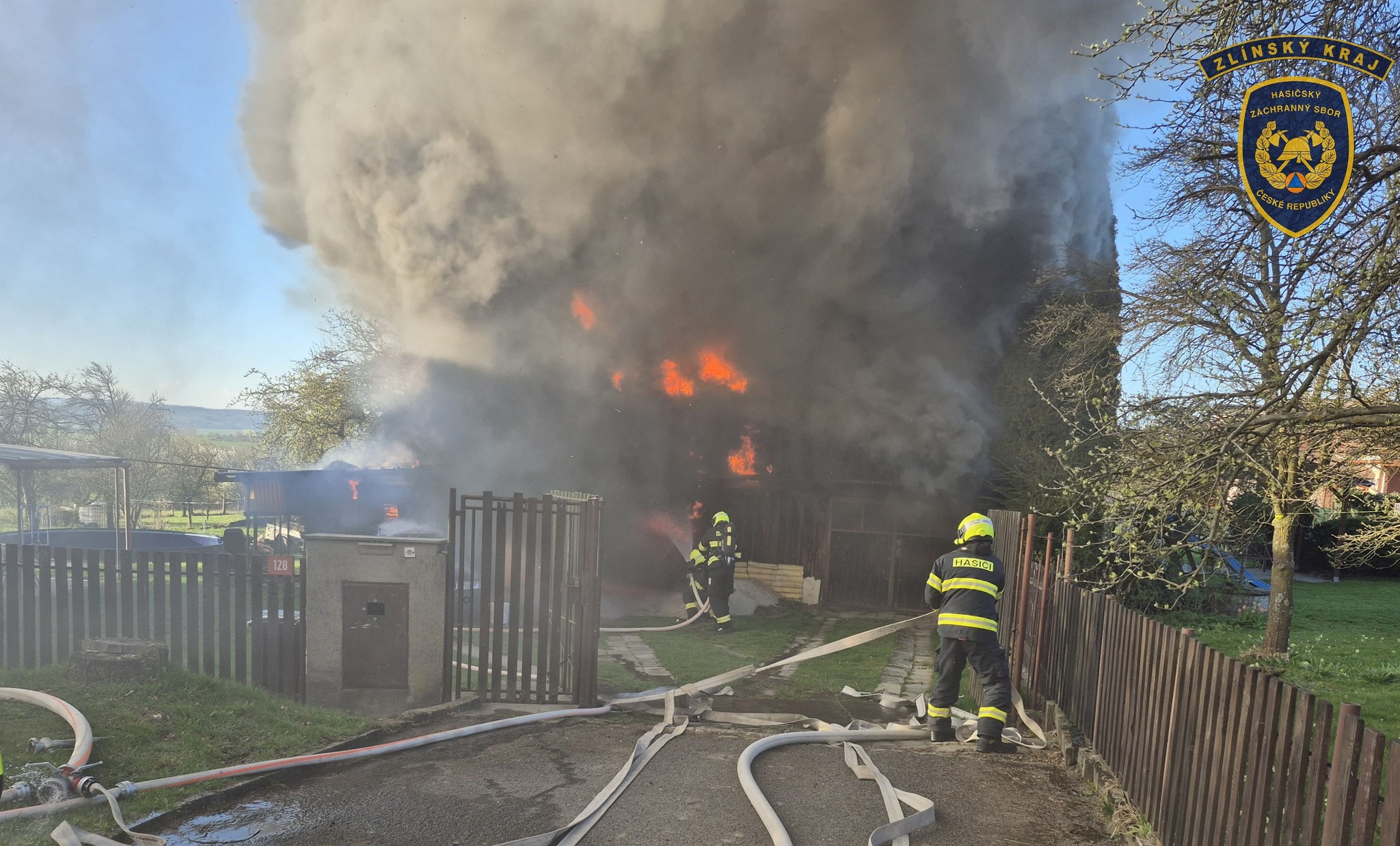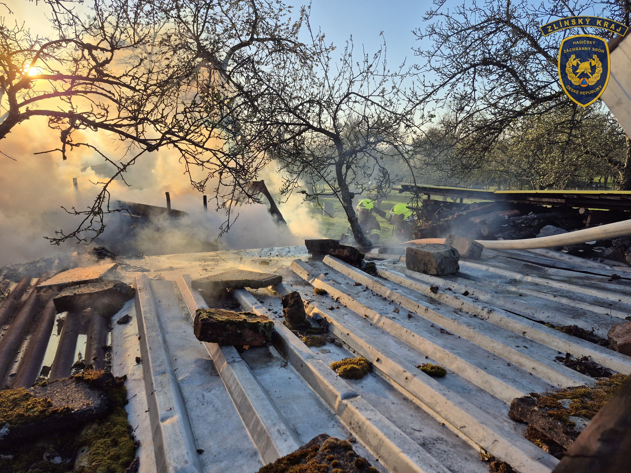 S požárem v Osíčku bojovalo celkem devět jednotek hasičů, plameny měly pod kontrolou do hodiny. Foto: HZS Zlínského kraje