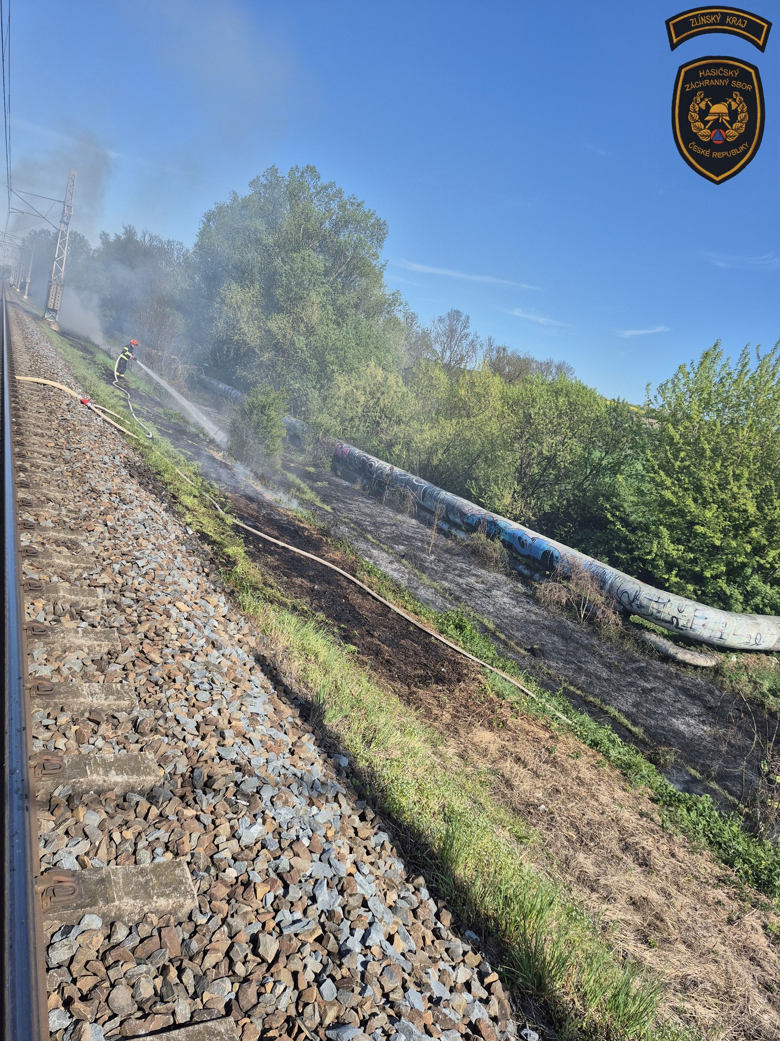 Fotogalerie - Požár podél železnice mezi Spytihněví a Tlumačovem likvidovalo 15 jednotek