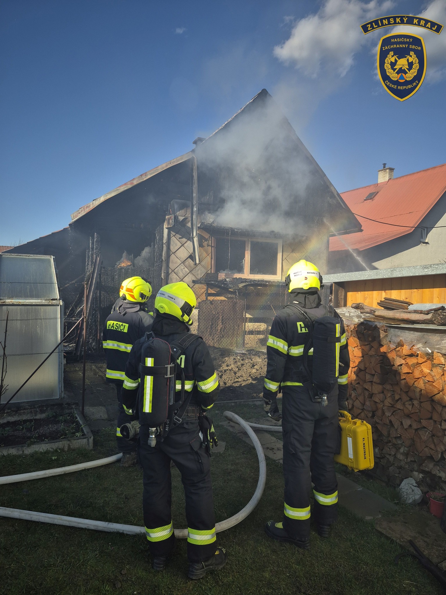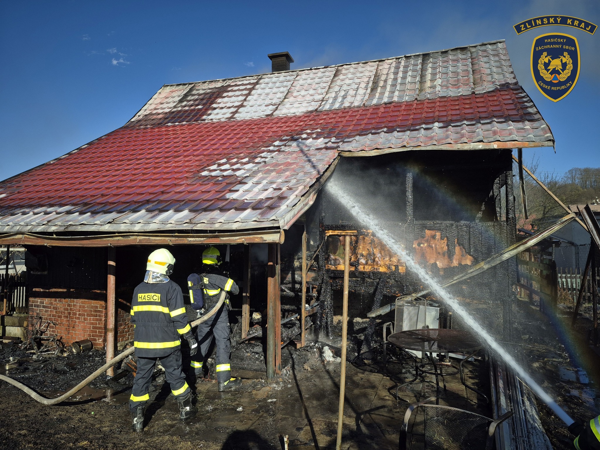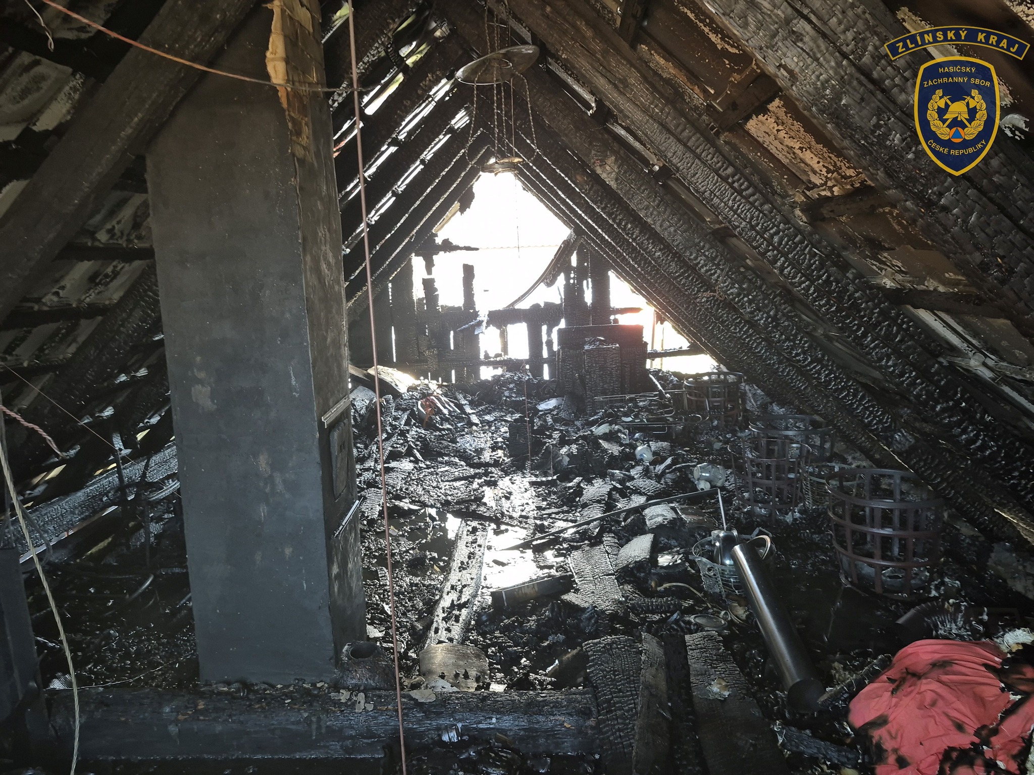 Požár střechy opuštěného domu v Leskovci likvidovalo pět jednotek hasičů. Foto: HZS ZK