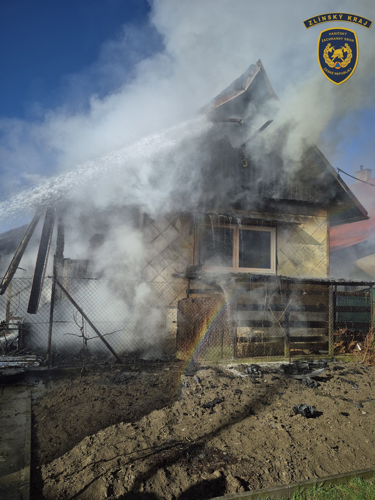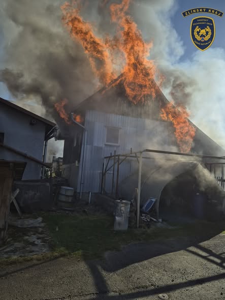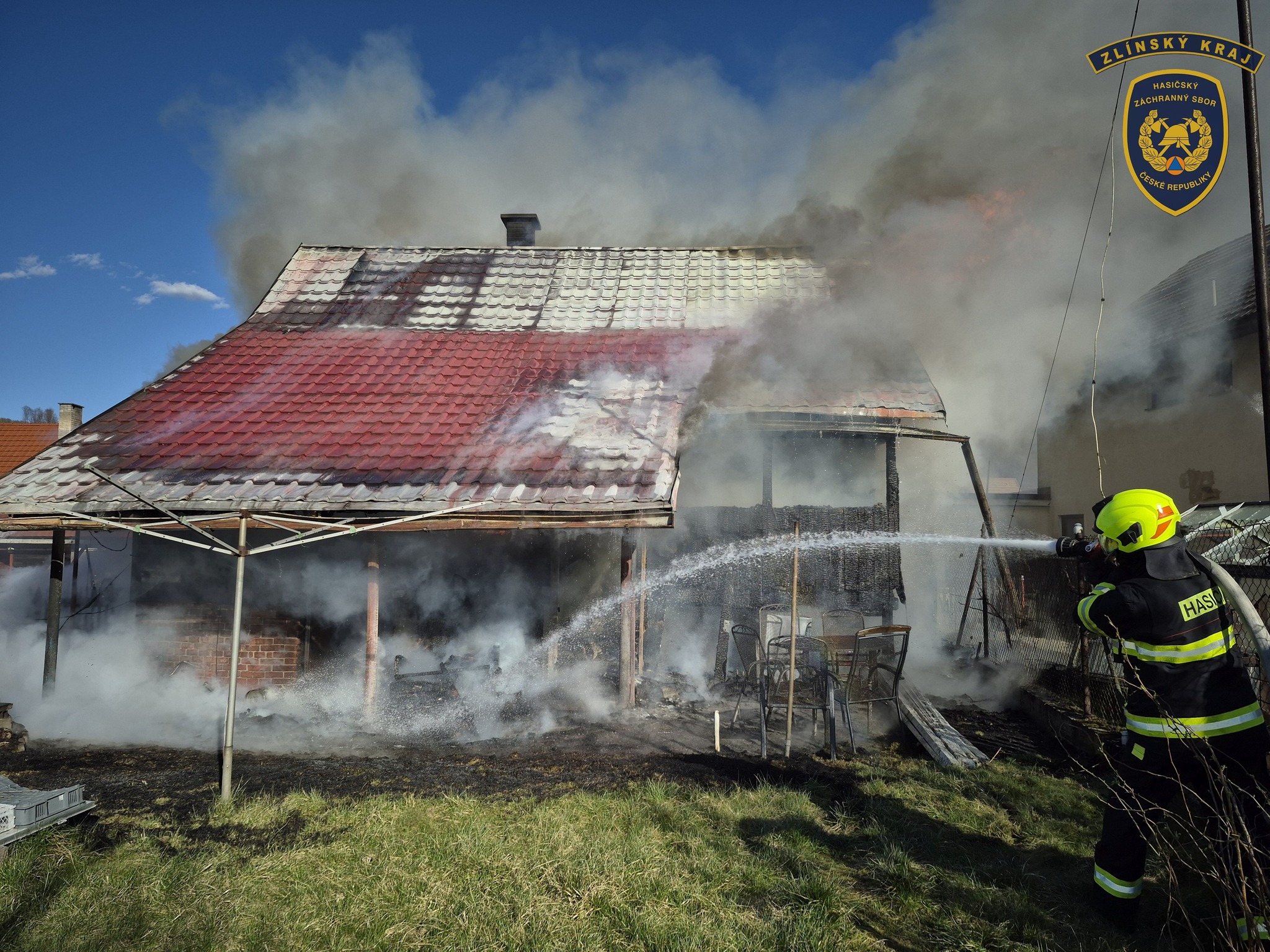 Požár střechy opuštěného domu v Leskovci likvidovalo pět jednotek hasičů. Foto: HZS ZK
