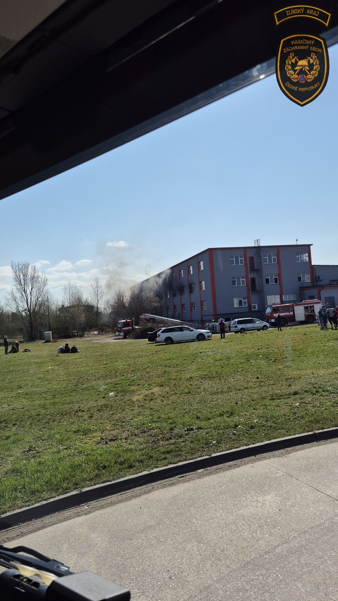 Fotogalerie - Požár v areálu TOMA v Otrokovicích vyhnal z budovy desítky lidí. Čtyři osoby se nadýchaly zplodin