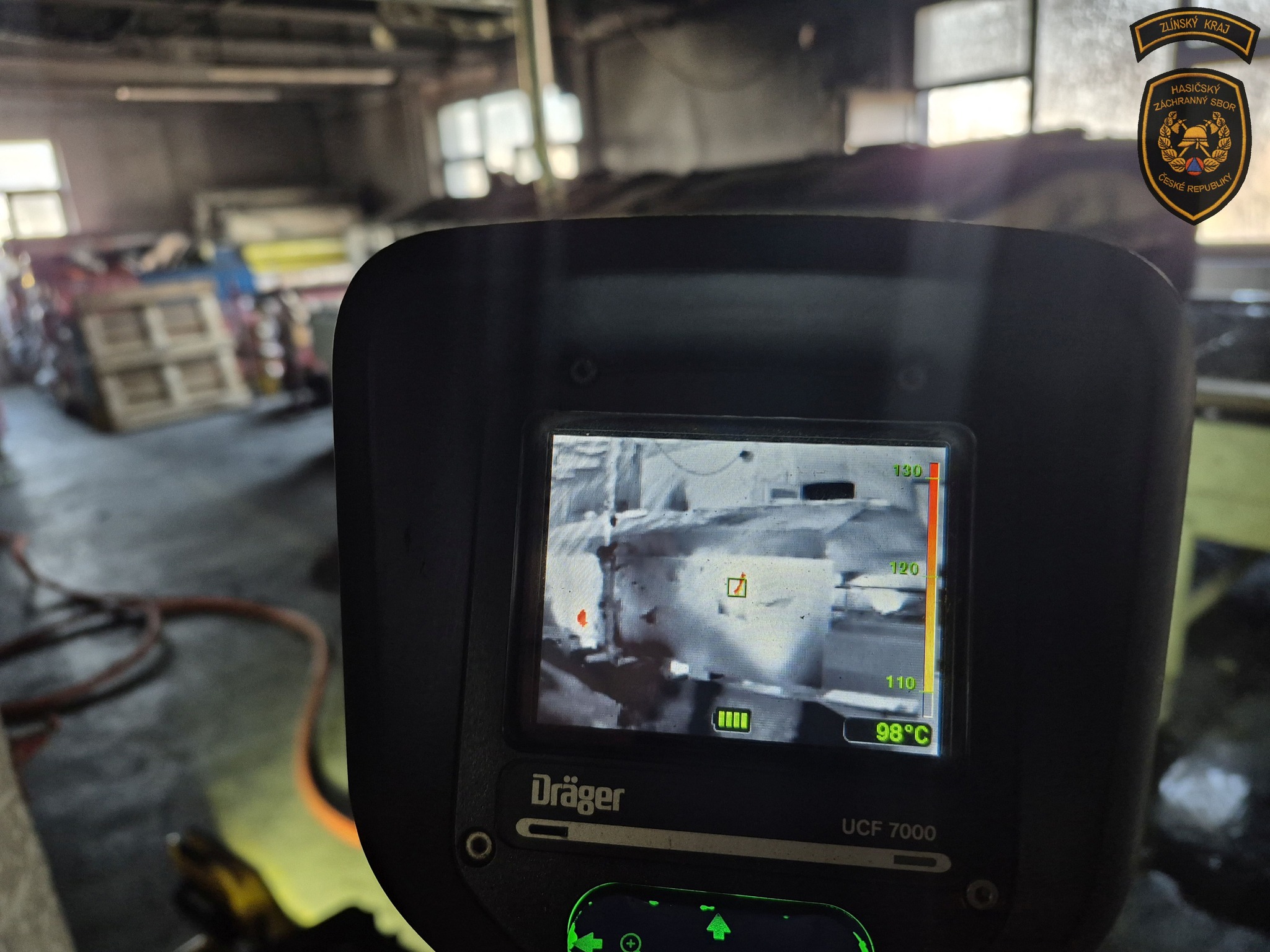 Požár v areálu TOMA v Otrokovicích vyhnal z budovy desítky lidí. Foto: HZS ZK
