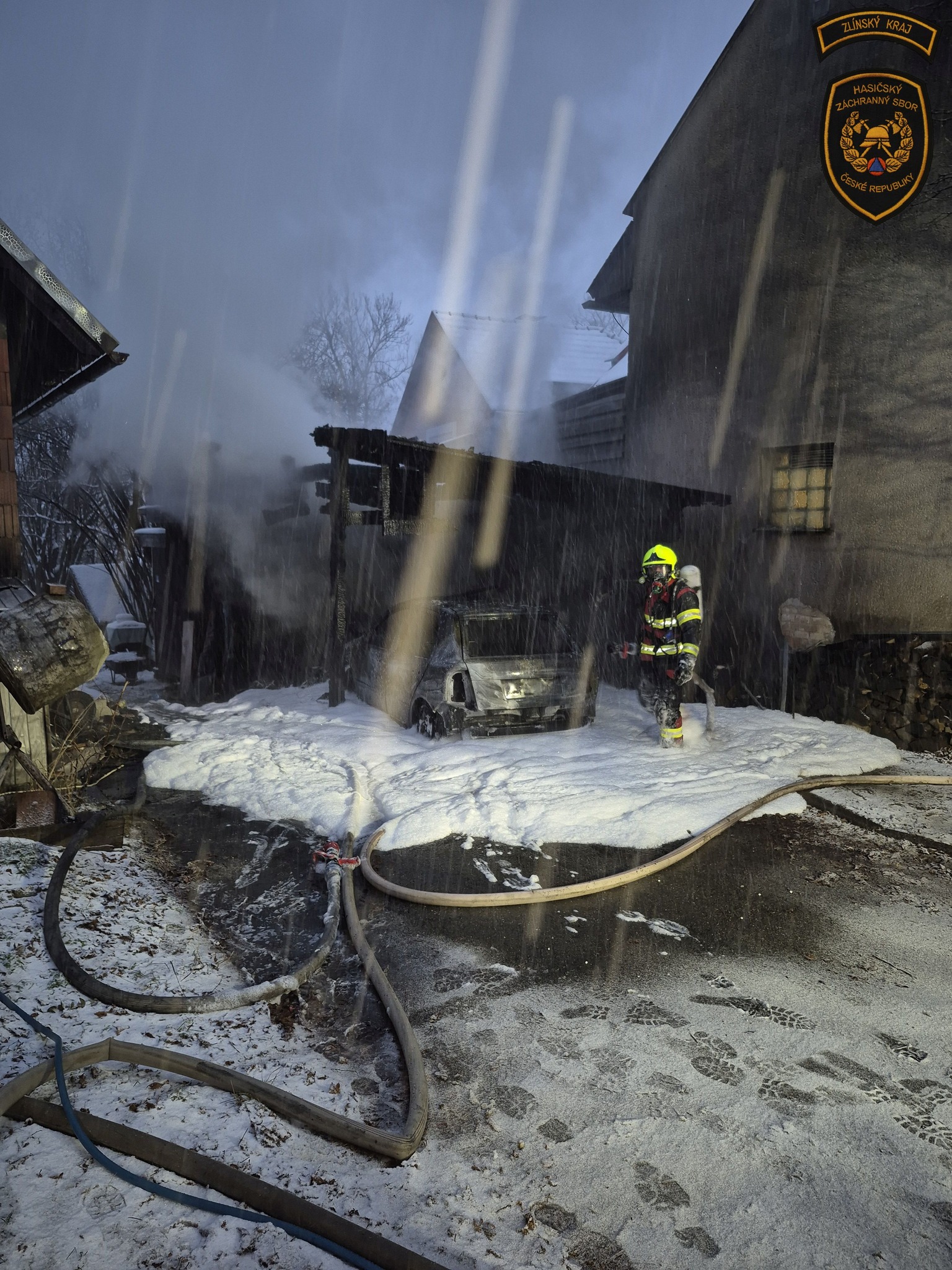 Ranní požár v Zašové napáchal škodu za více než milion korun. Foto: HZS ZK