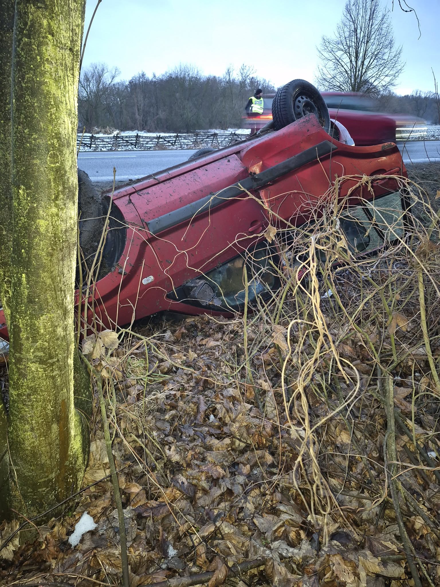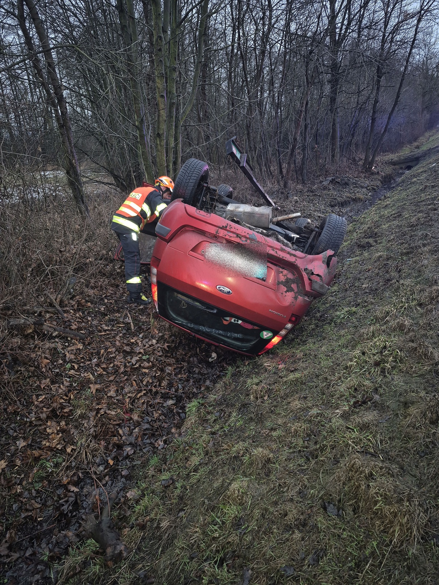 Řidička u Valašského Meziříčí převrátila auto na střechu. Foto: HZS ZK