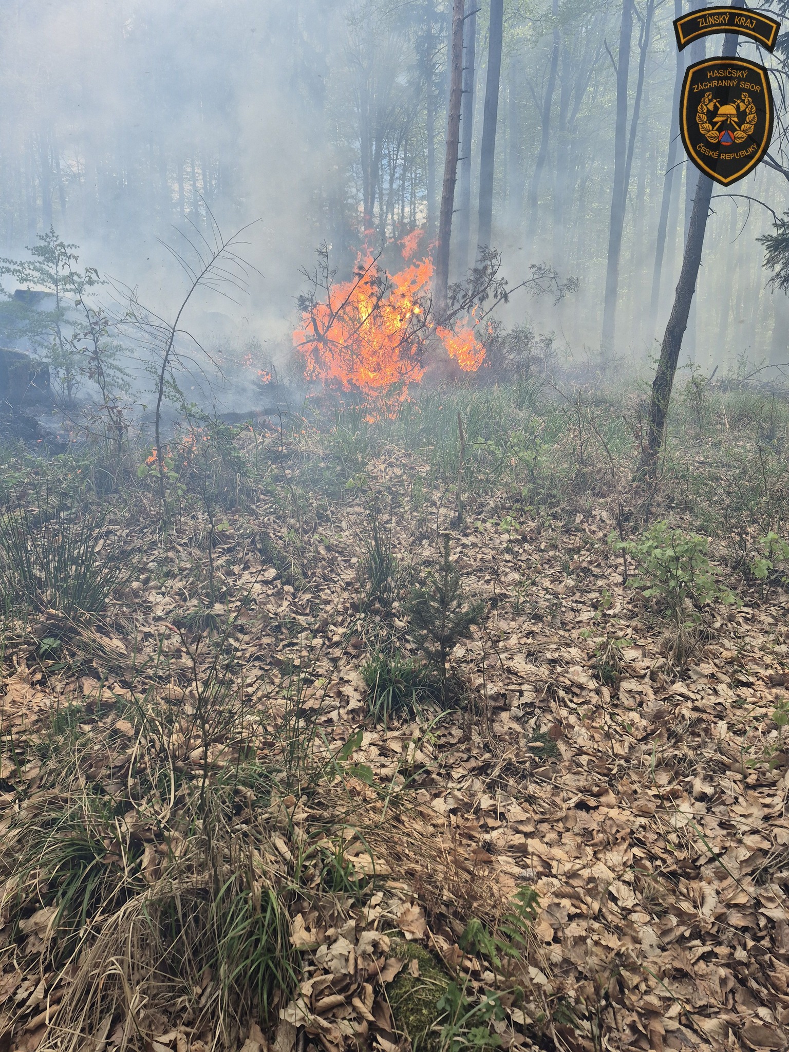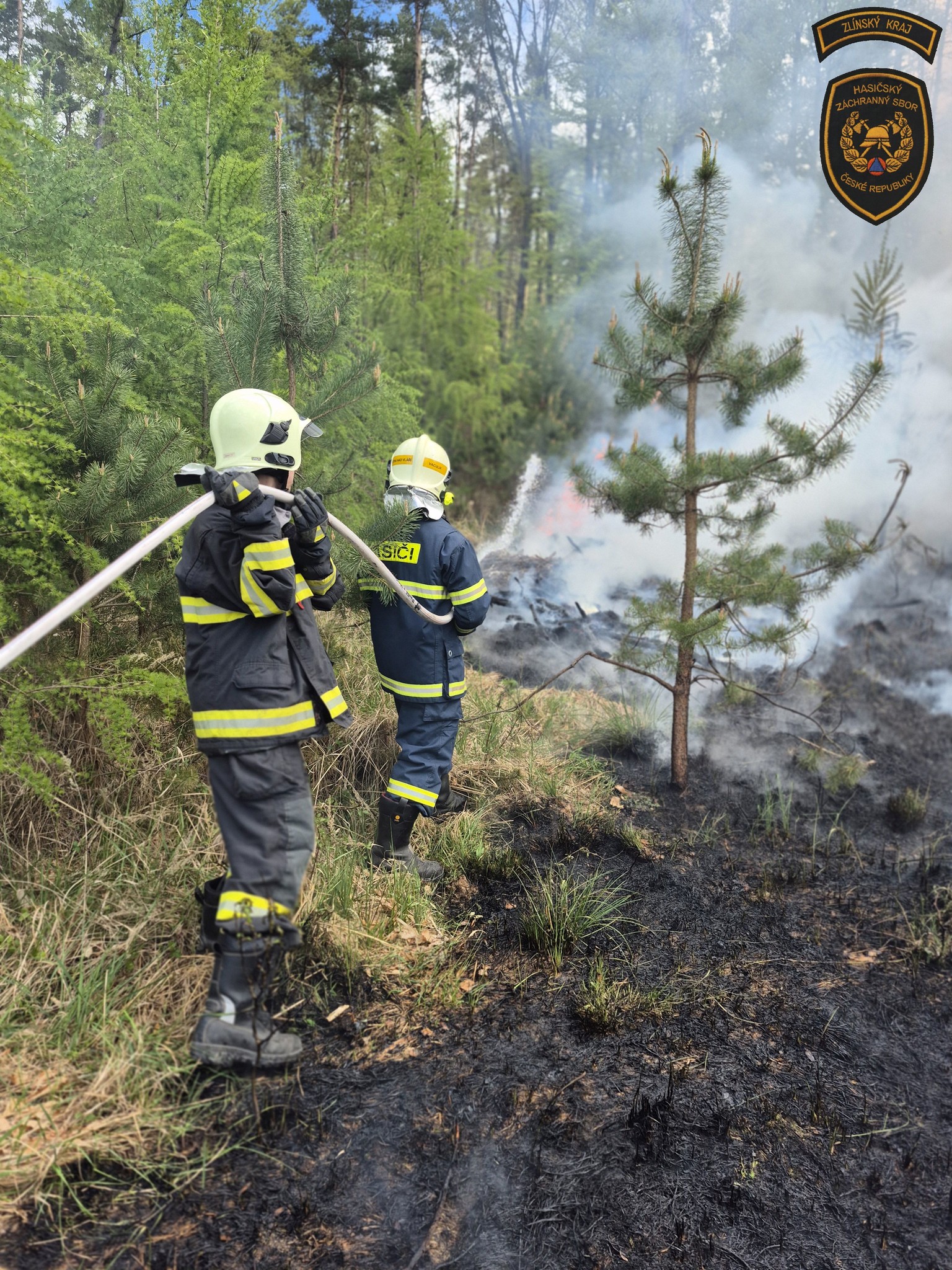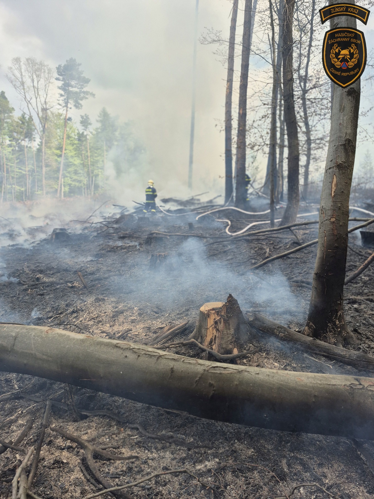 Fotogalerie - Rozsáhlý lesní požár u Vlachovic–Vrbětic zaměstnal desítky hasičů i vrtulník