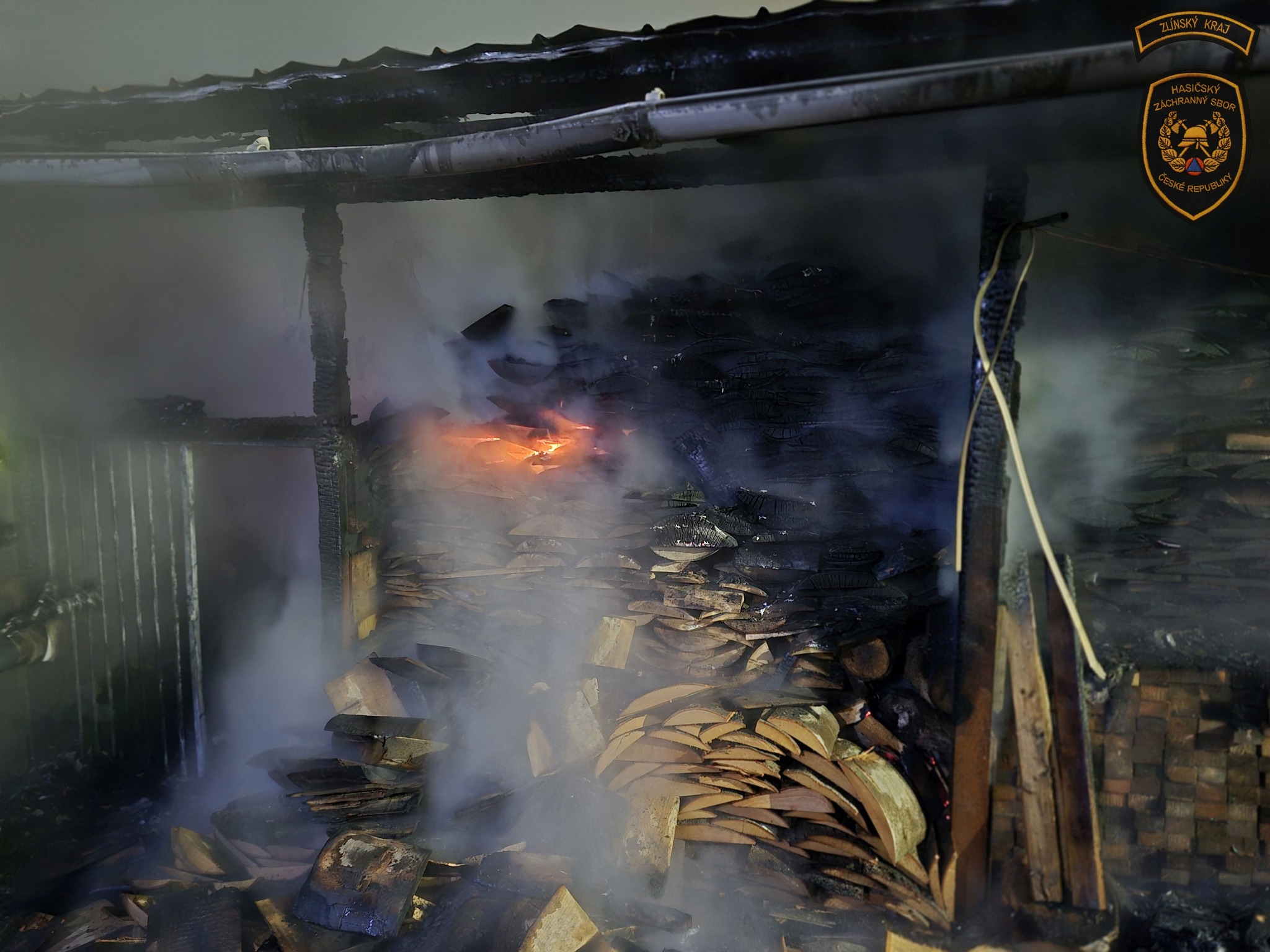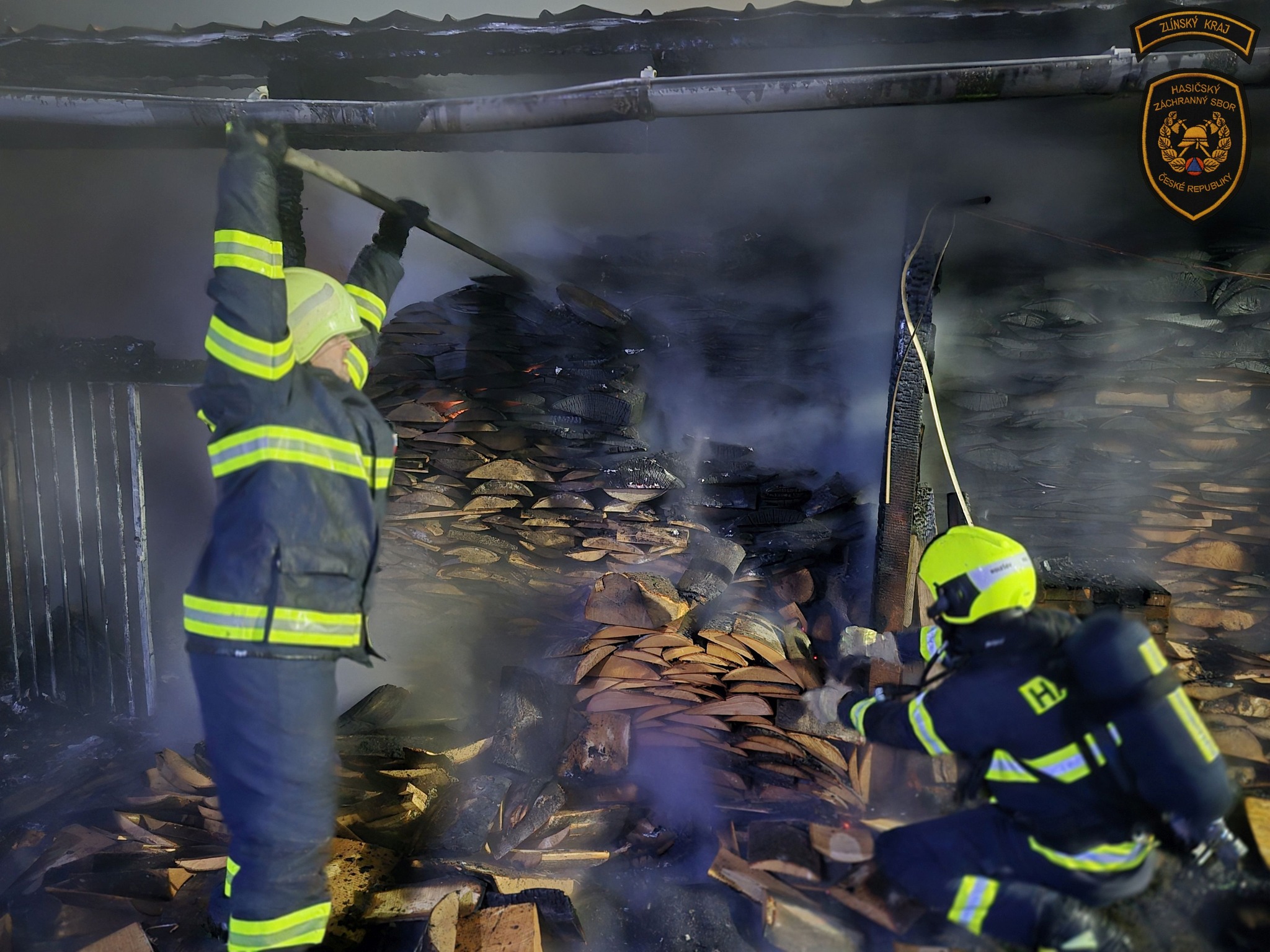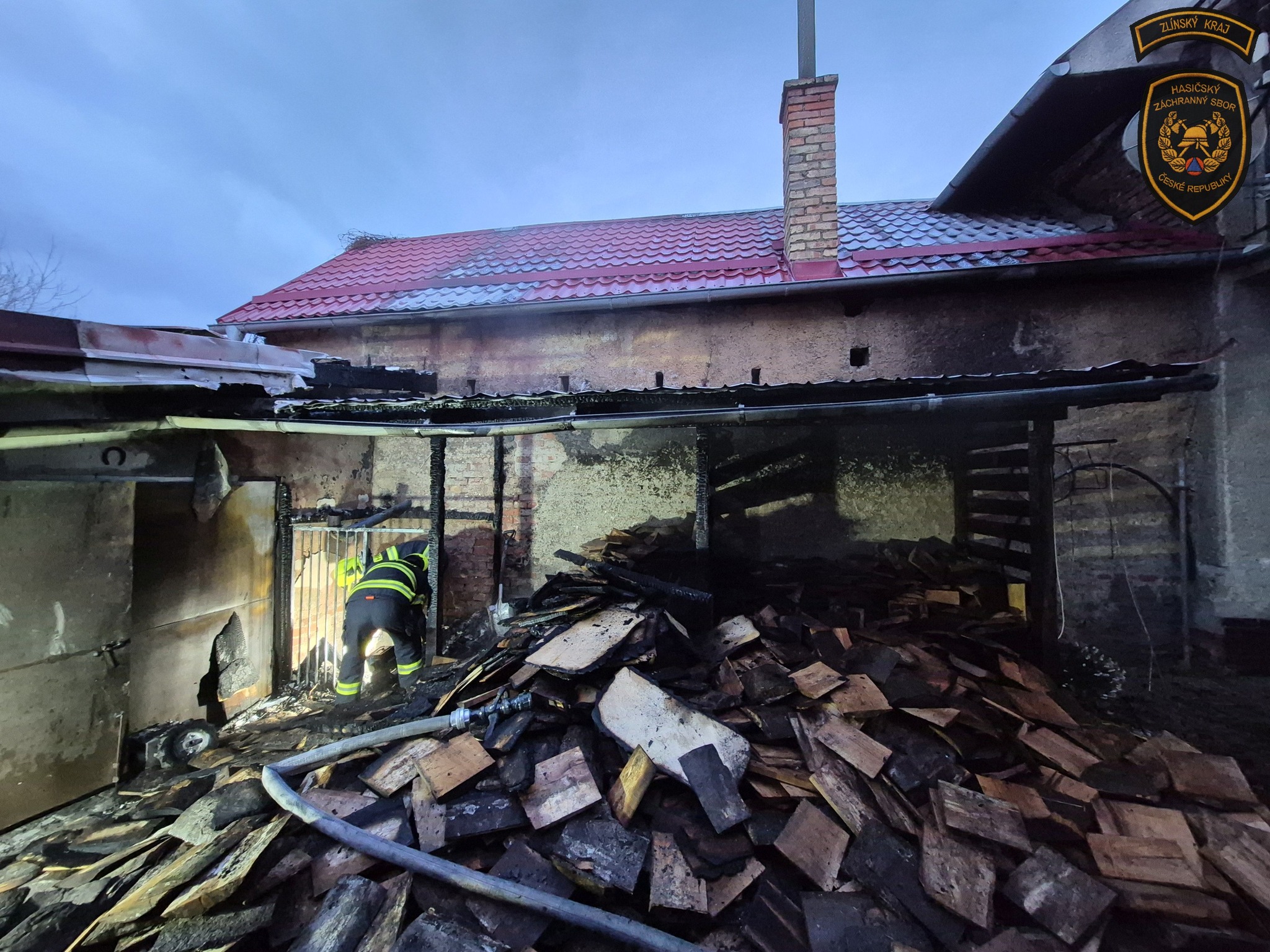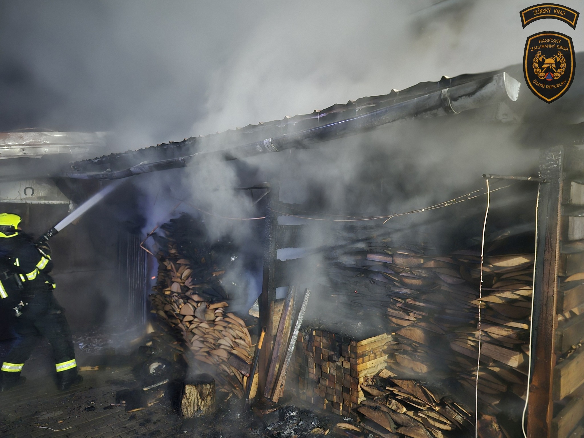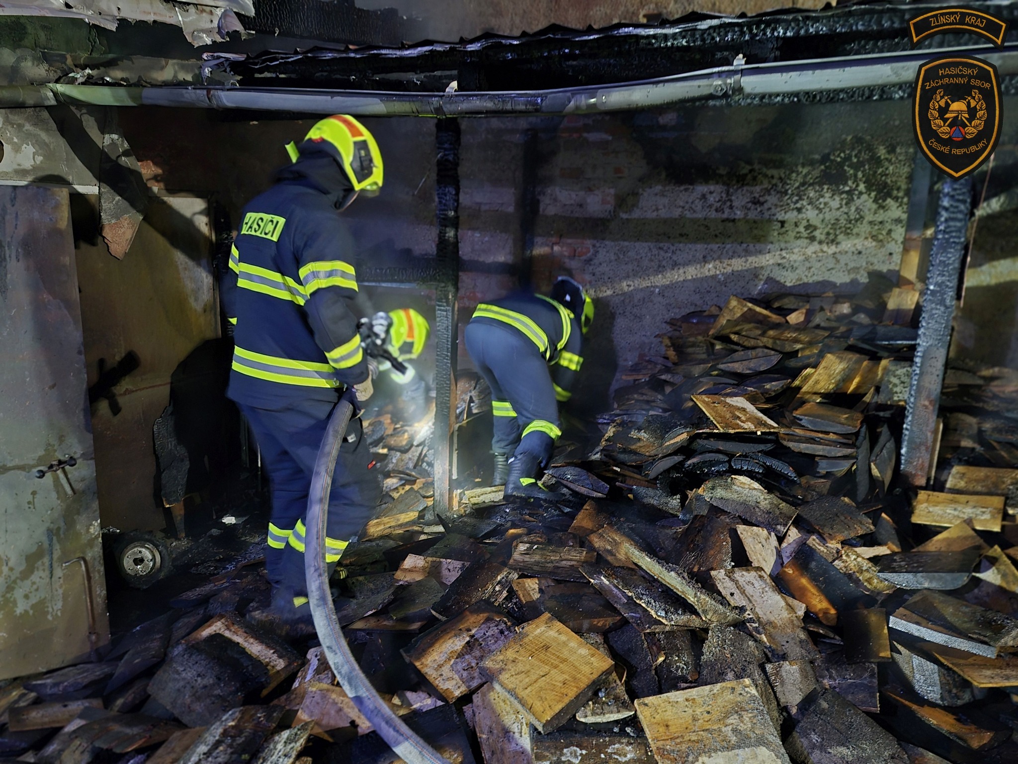 S požárem vyhřívané psí boudy v Pravčicích bojovalo pět jednotek hasičů. Foto: HZS ZK