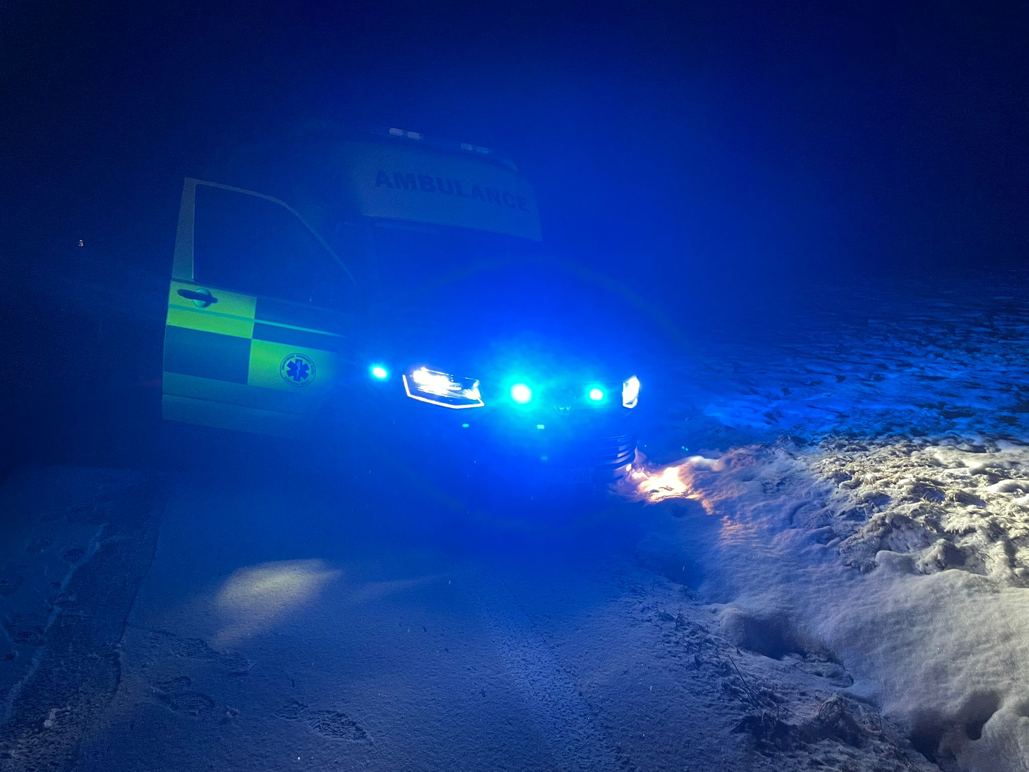 Sanitka cestou k pacientovi uvízla na zledovatělé silnici. Foto: ZZS ZK
