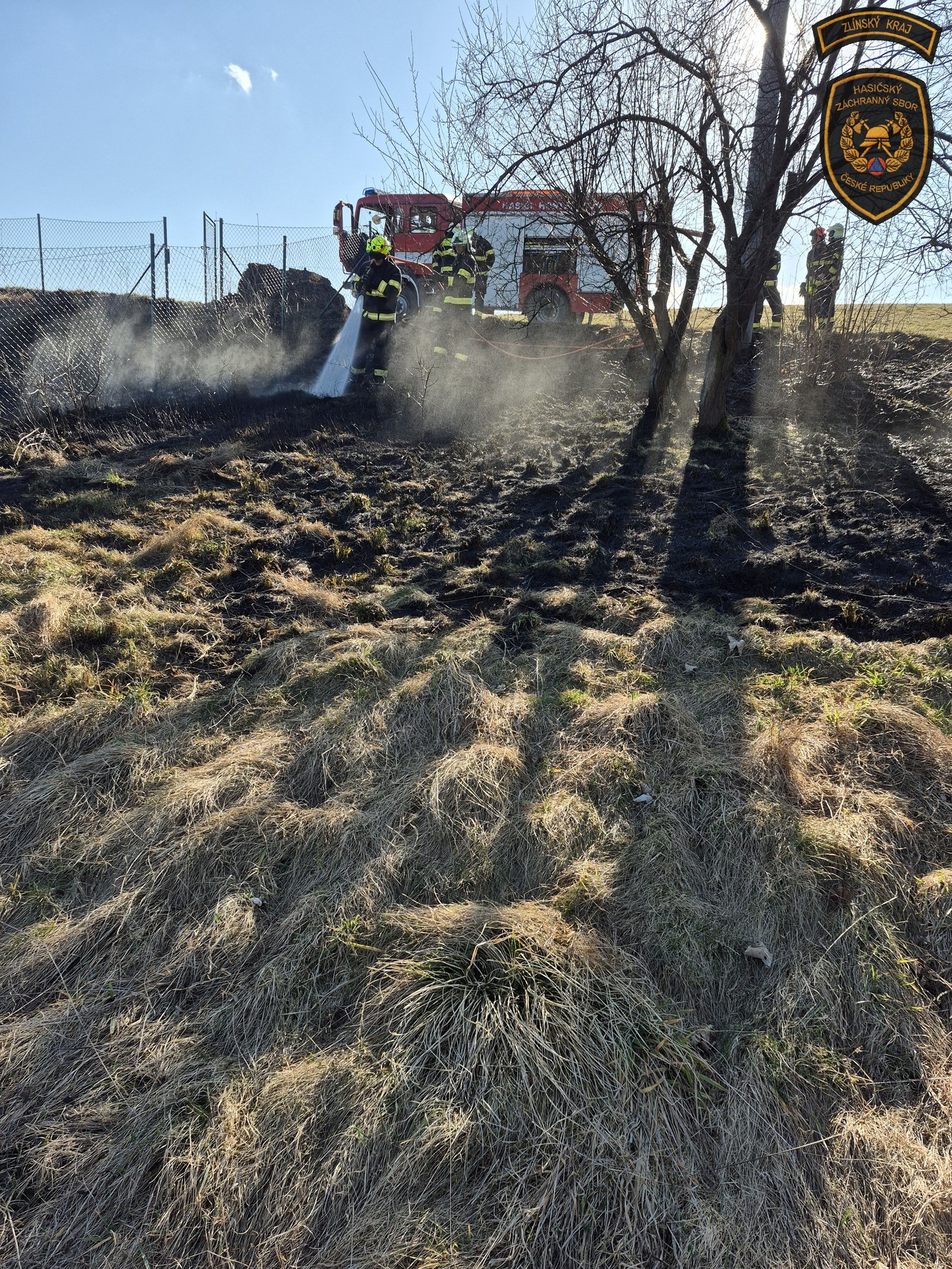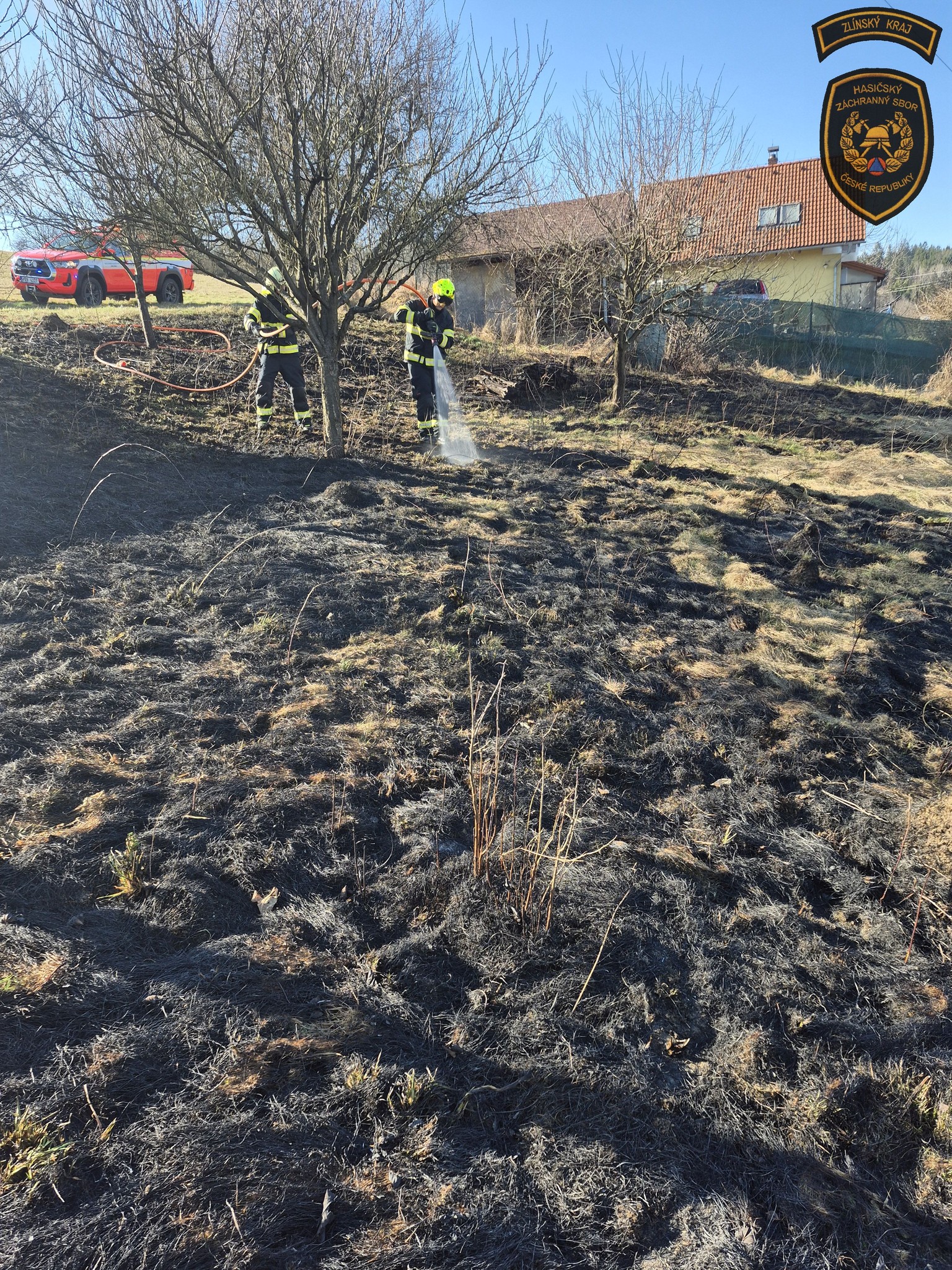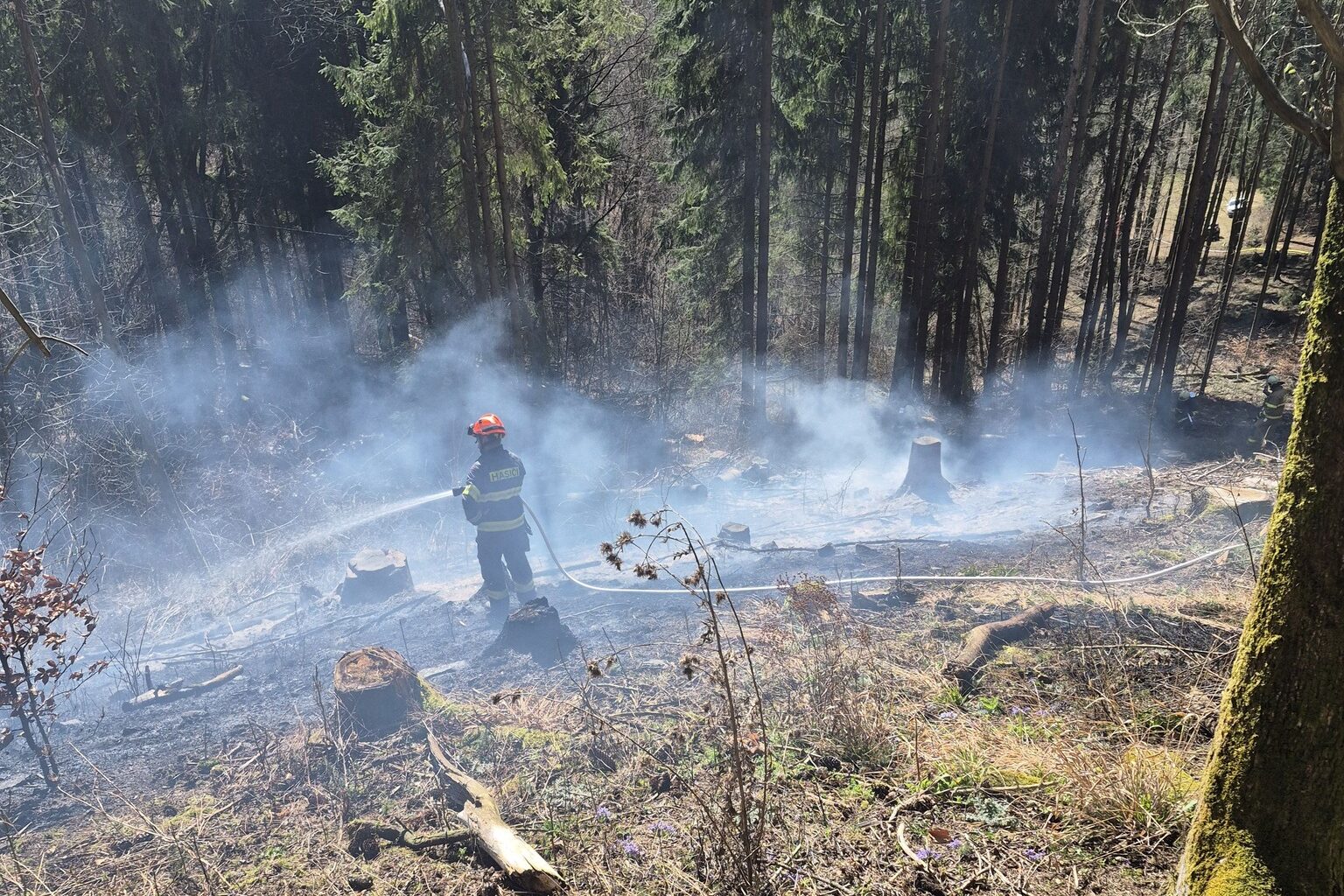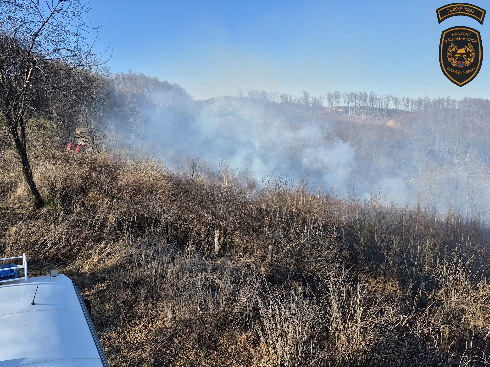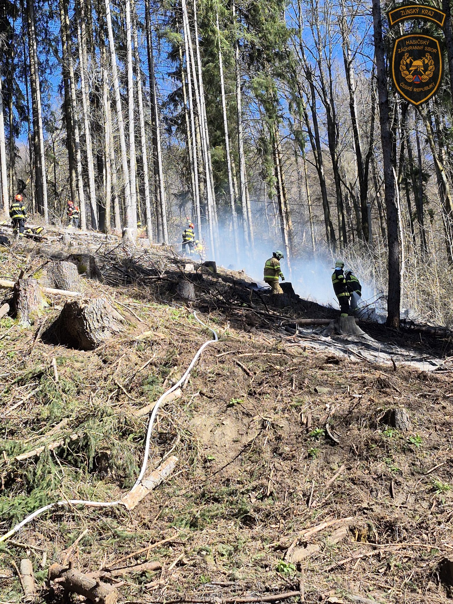 Hasiči v sobotu bojovali s událostmi, které komplikoval vítr. Nejhorší situace byla v Rajnochovicích, kde začal hořet mladý les a oheň se kvůli silnému větru rychle šířil. Foto: HZS Zlínského kraje