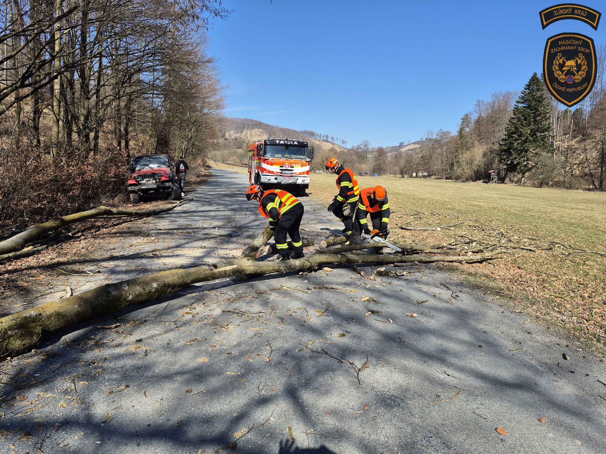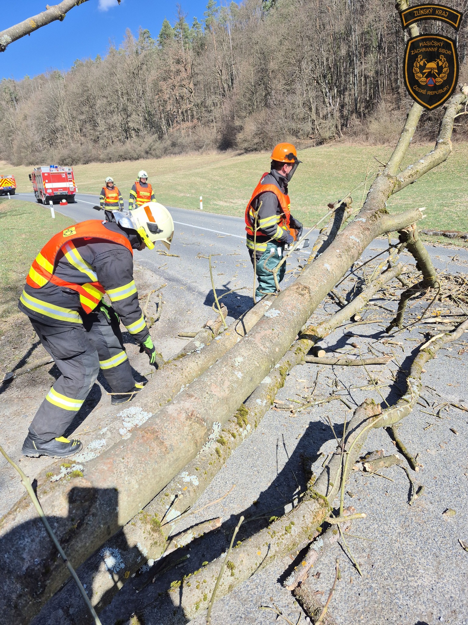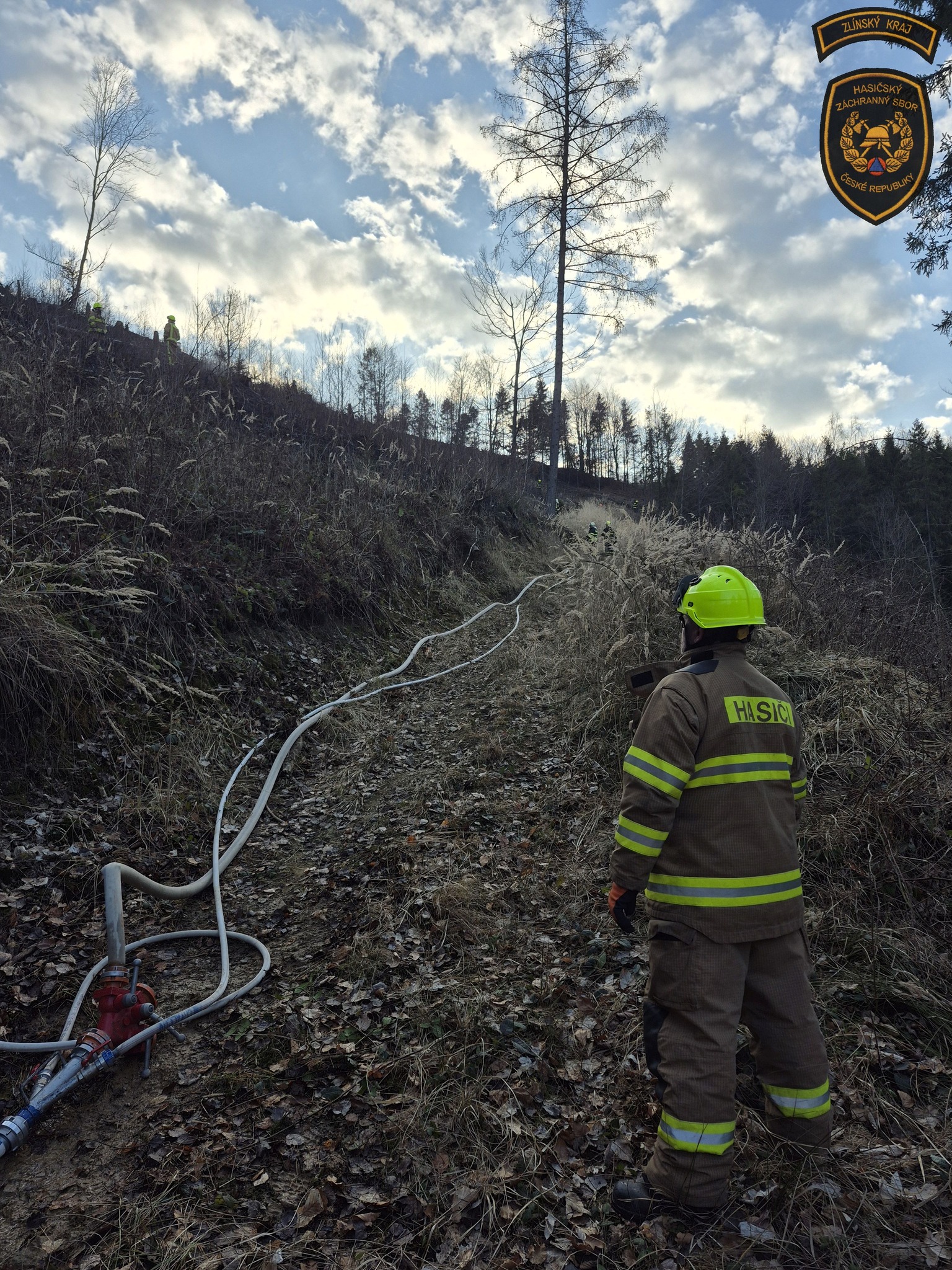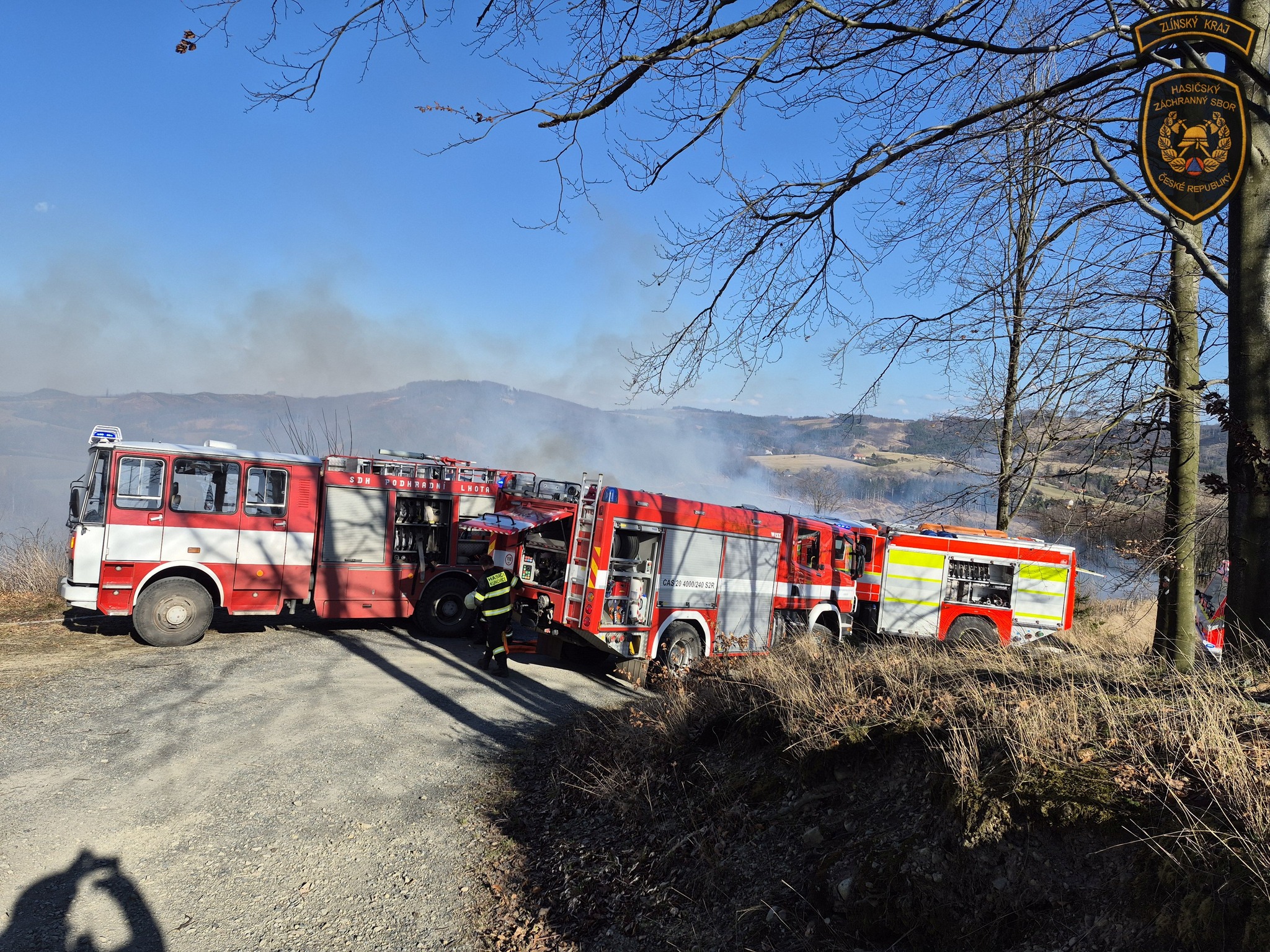 Hasiči v sobotu bojovali s událostmi, které komplikoval vítr. Nejhorší situace byla v Rajnochovicích, kde začal hořet mladý les a oheň se kvůli silnému větru rychle šířil. Foto: HZS Zlínského kraje