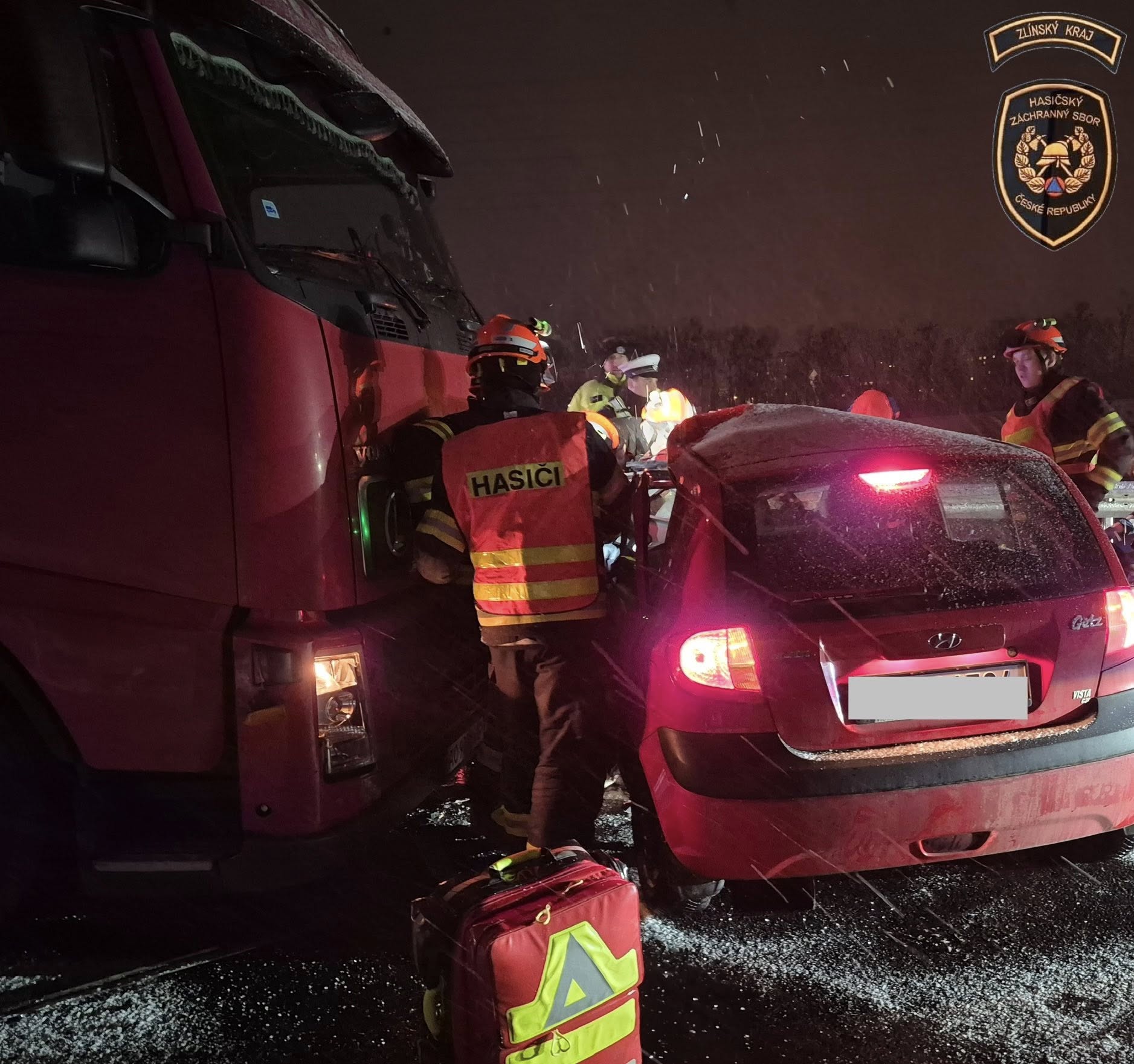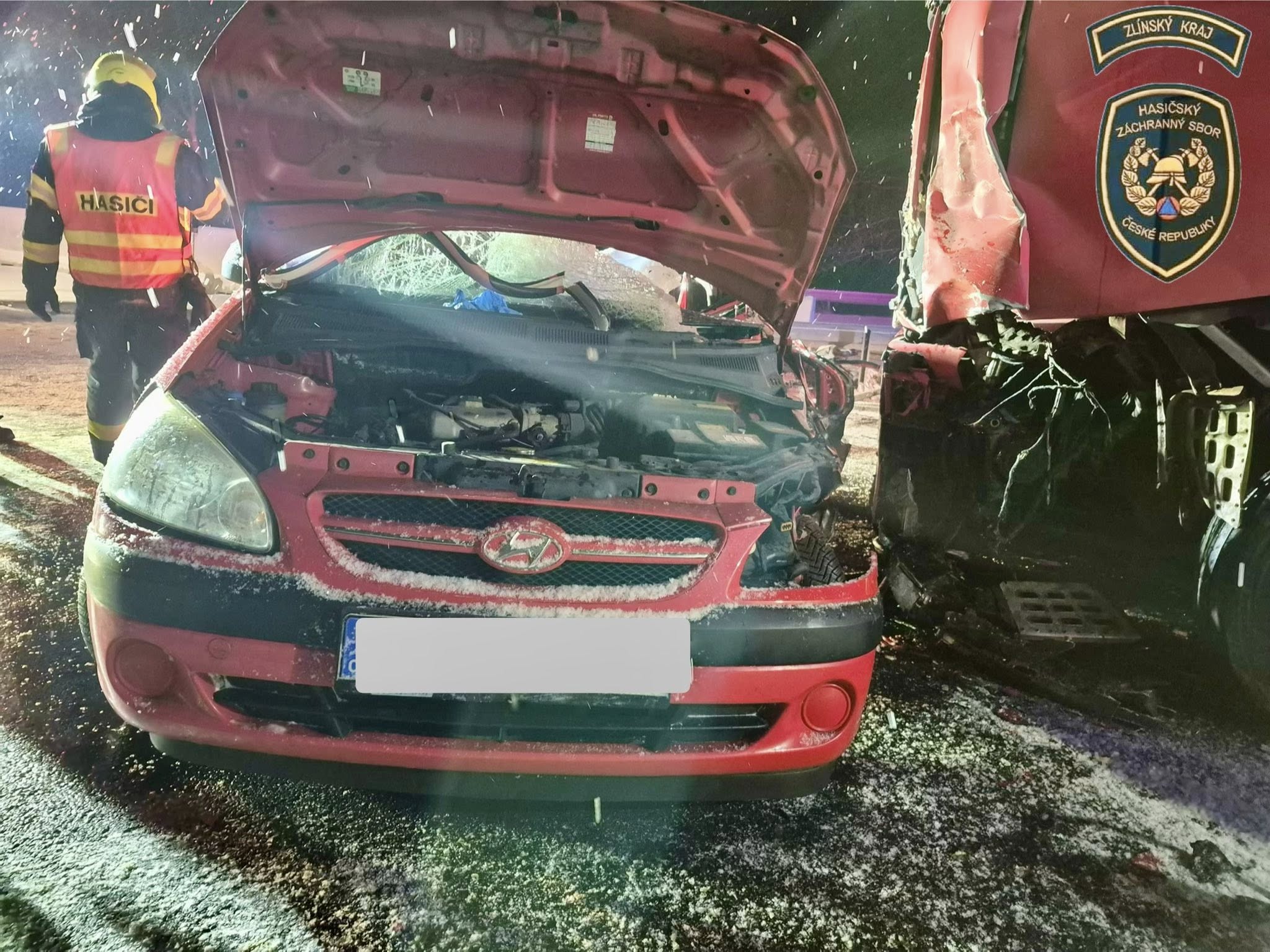 Pondělní nehoda na D55 u Napajedel skončila tragicky. Foto: HZS ZK