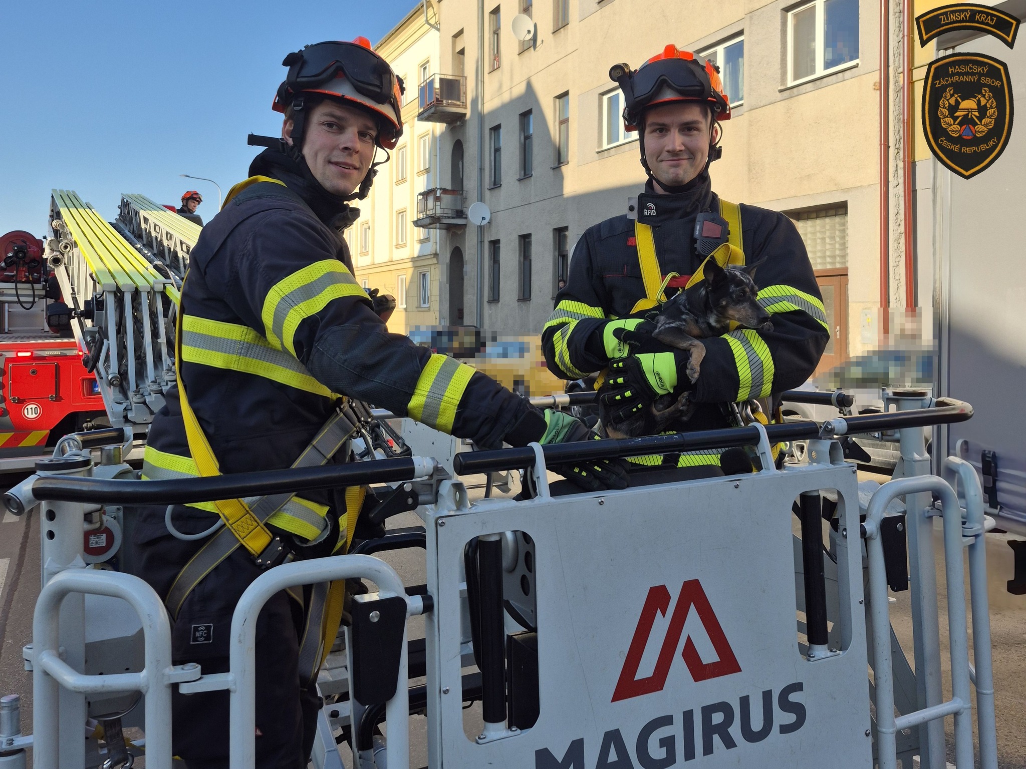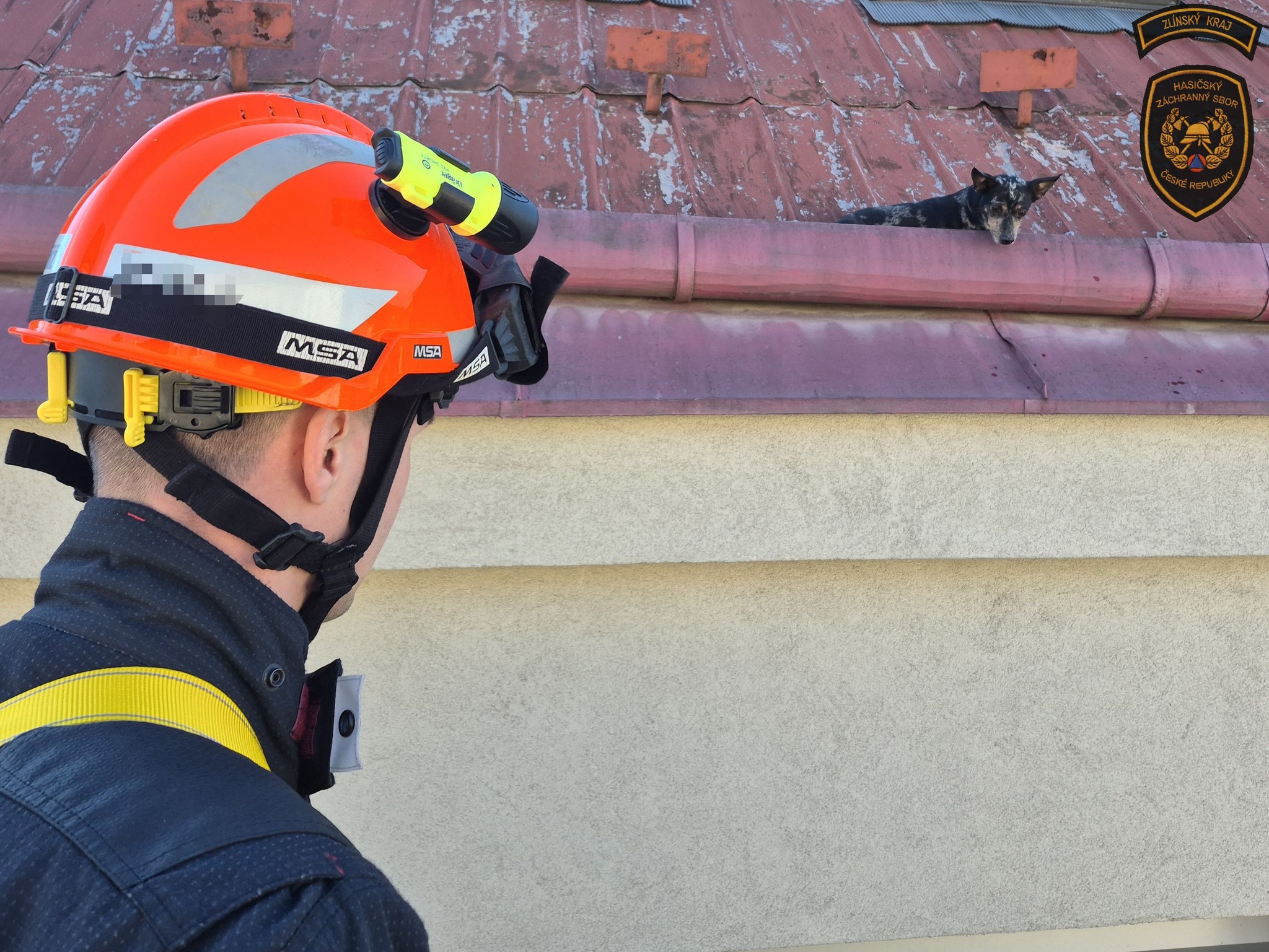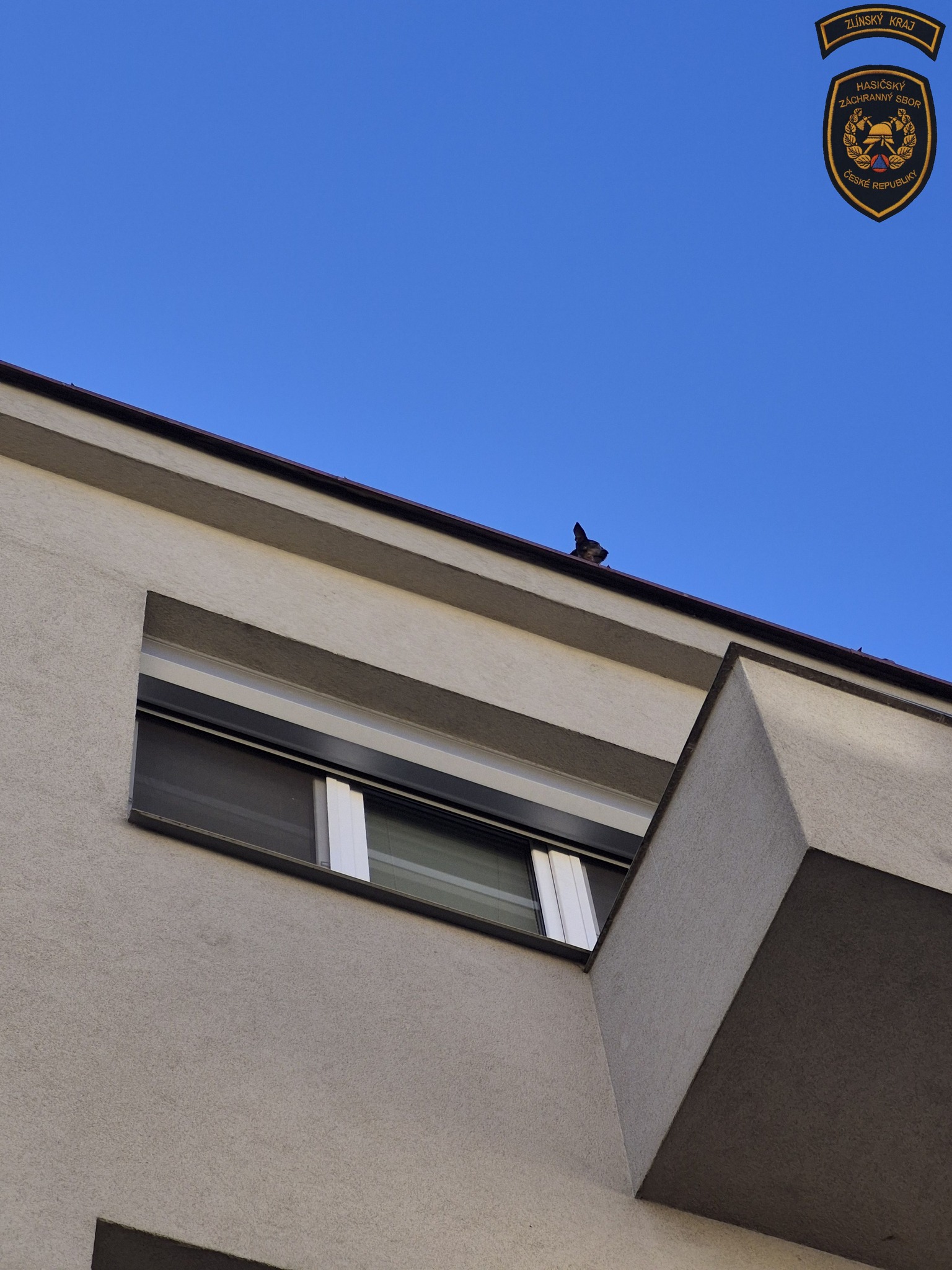 Kroměřížští hasiči v sobotu zachraňovali psa, který uvízl na střeše. Foto: HZS ZK