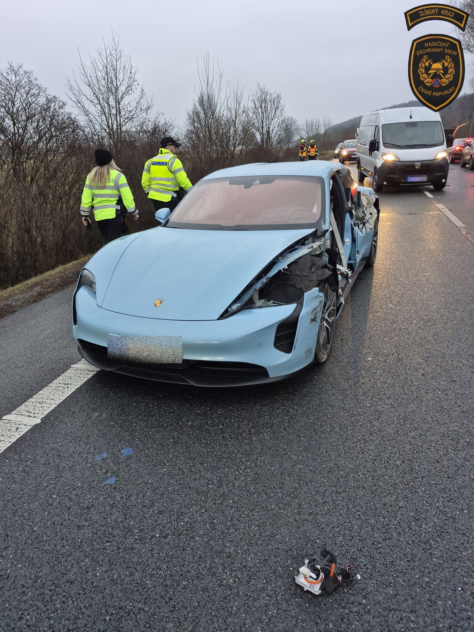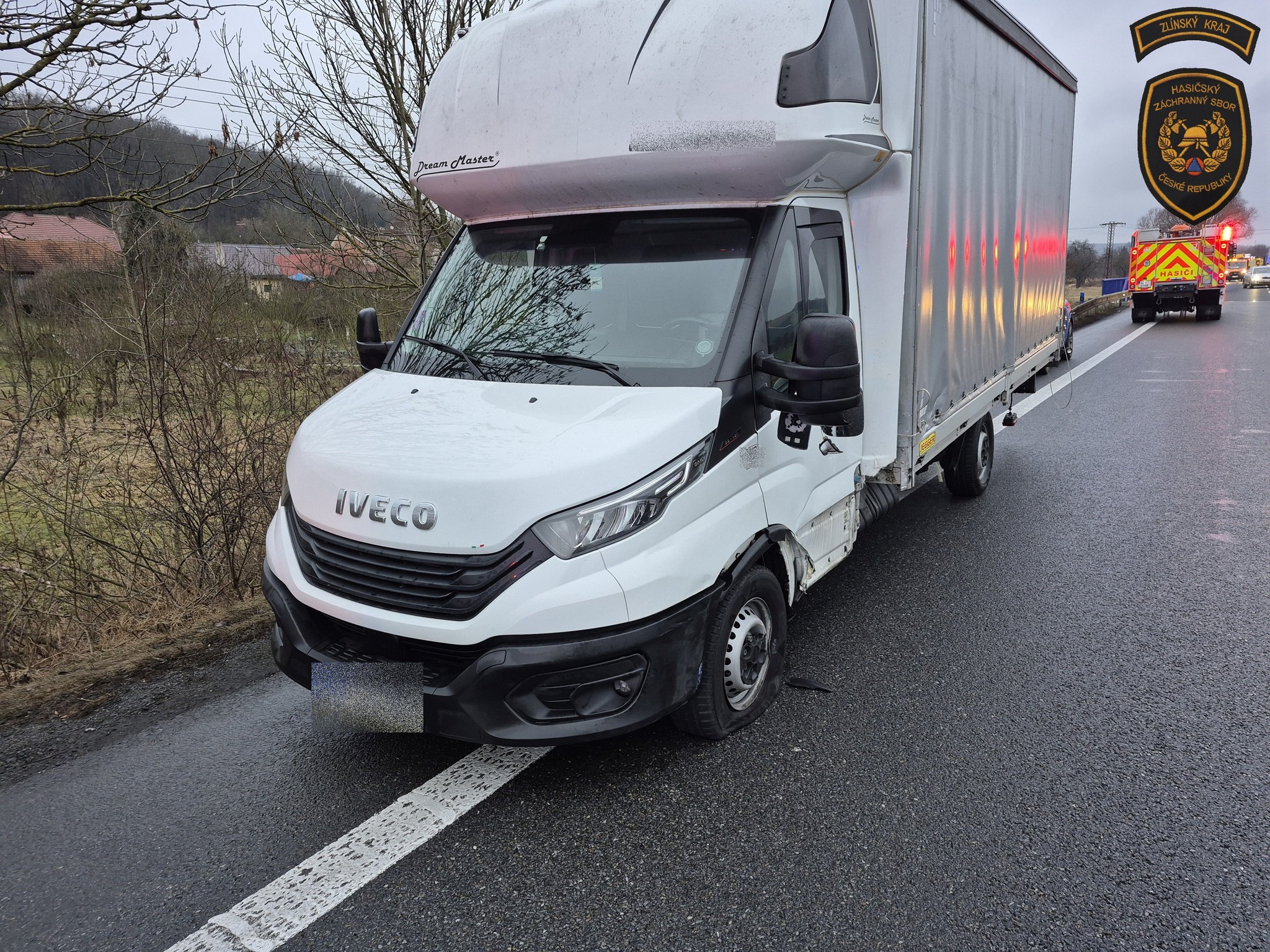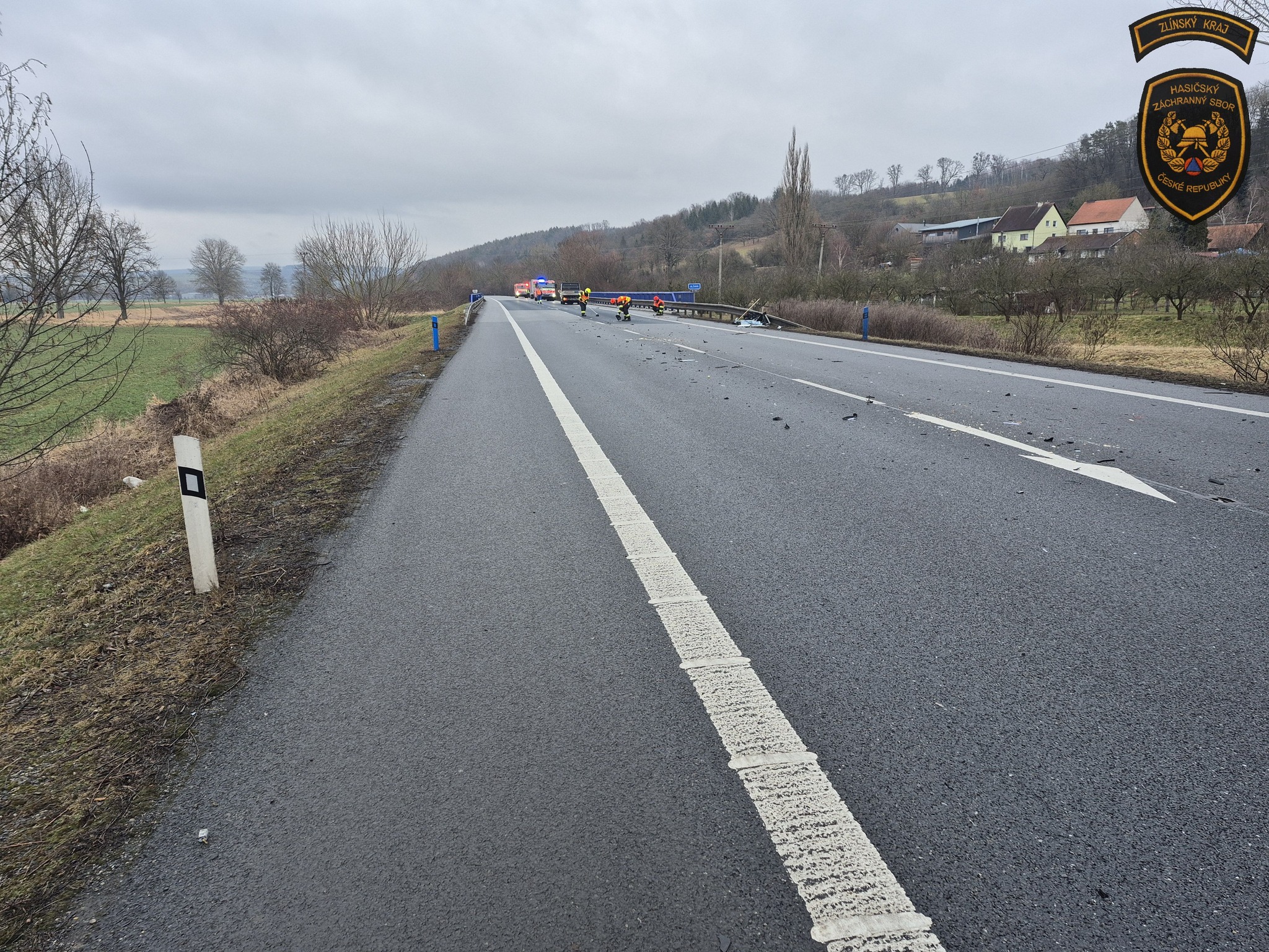 Silnici u Veletin uzavřela v pondělí ráno nehoda dodávky s elektromobilem. Foto: HZS ZK