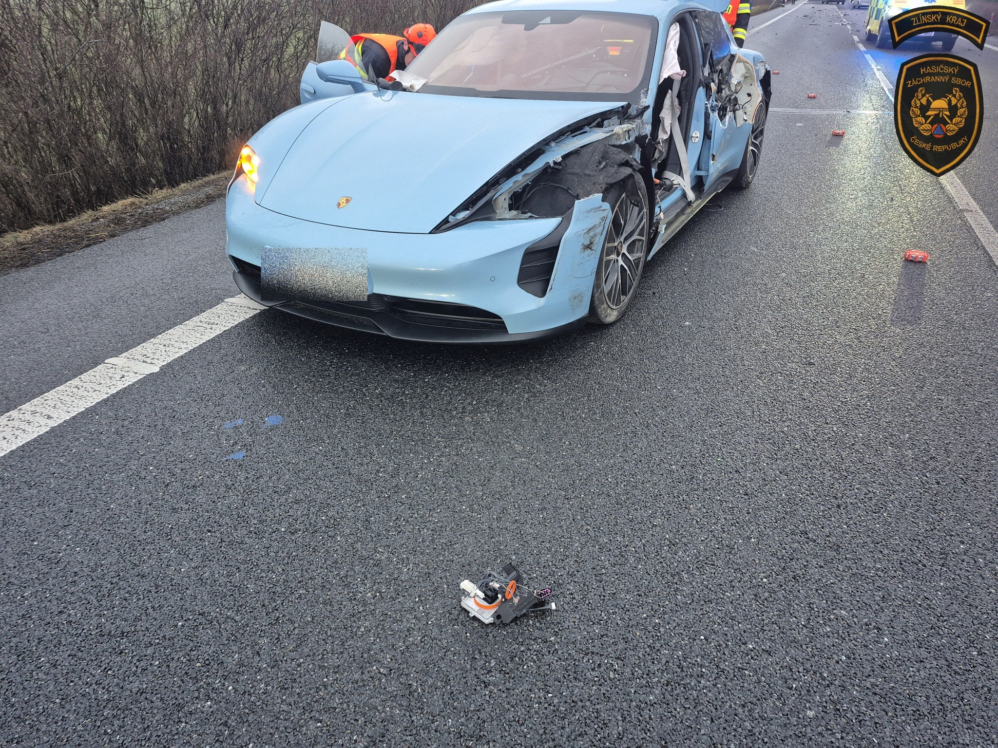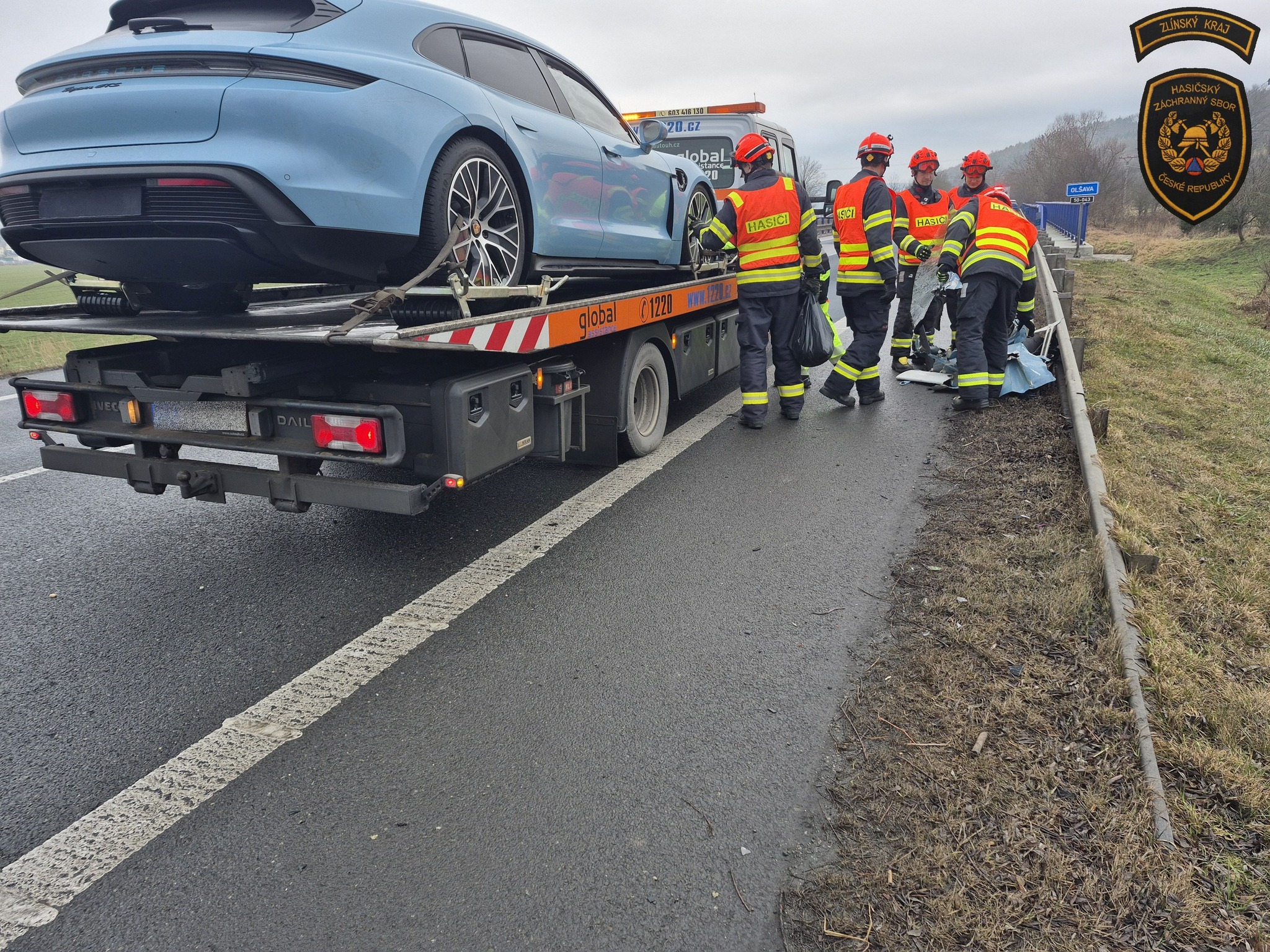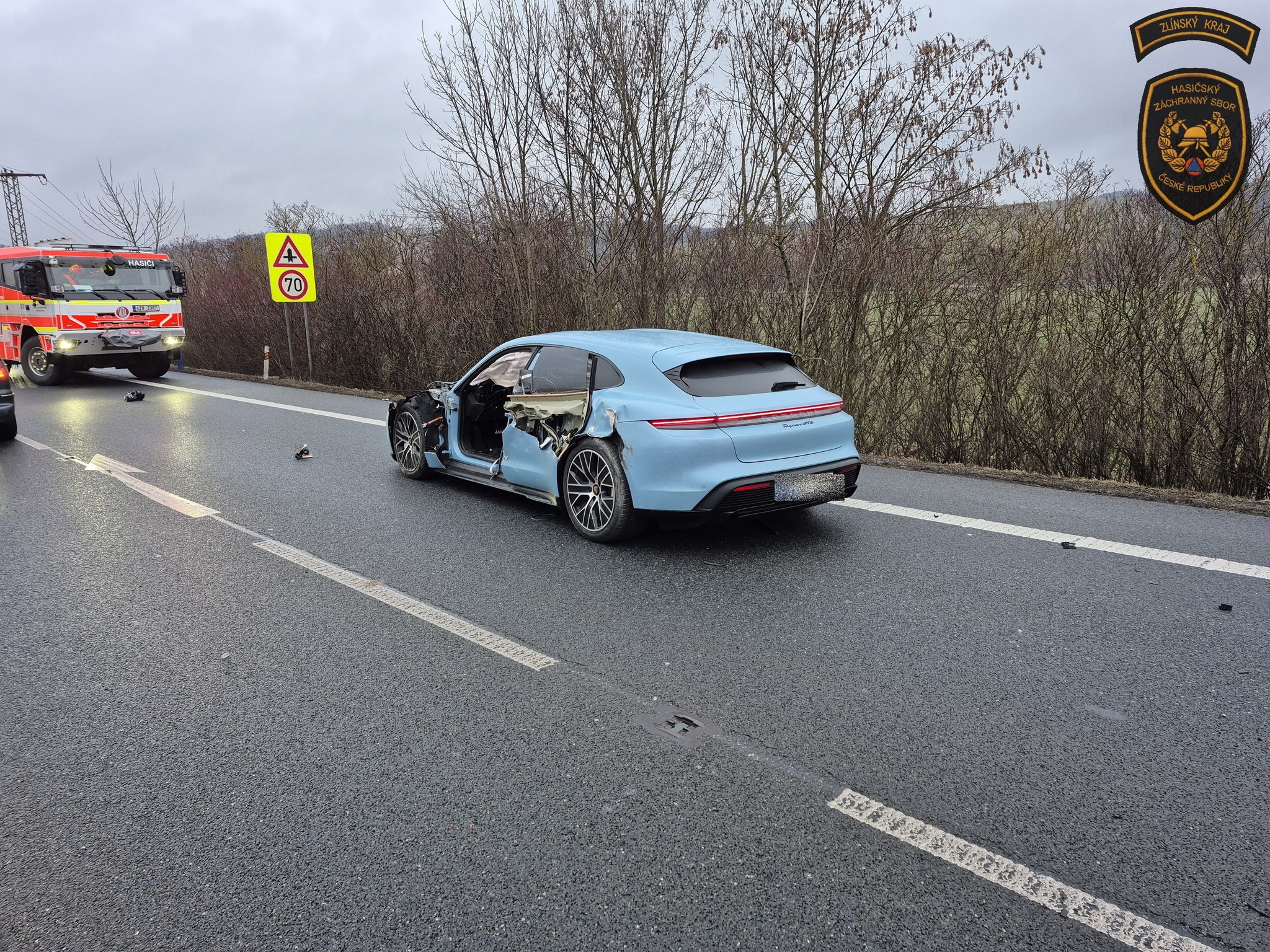Silnici u Veletin uzavřela v pondělí ráno nehoda dodávky s elektromobilem. Foto: HZS ZK