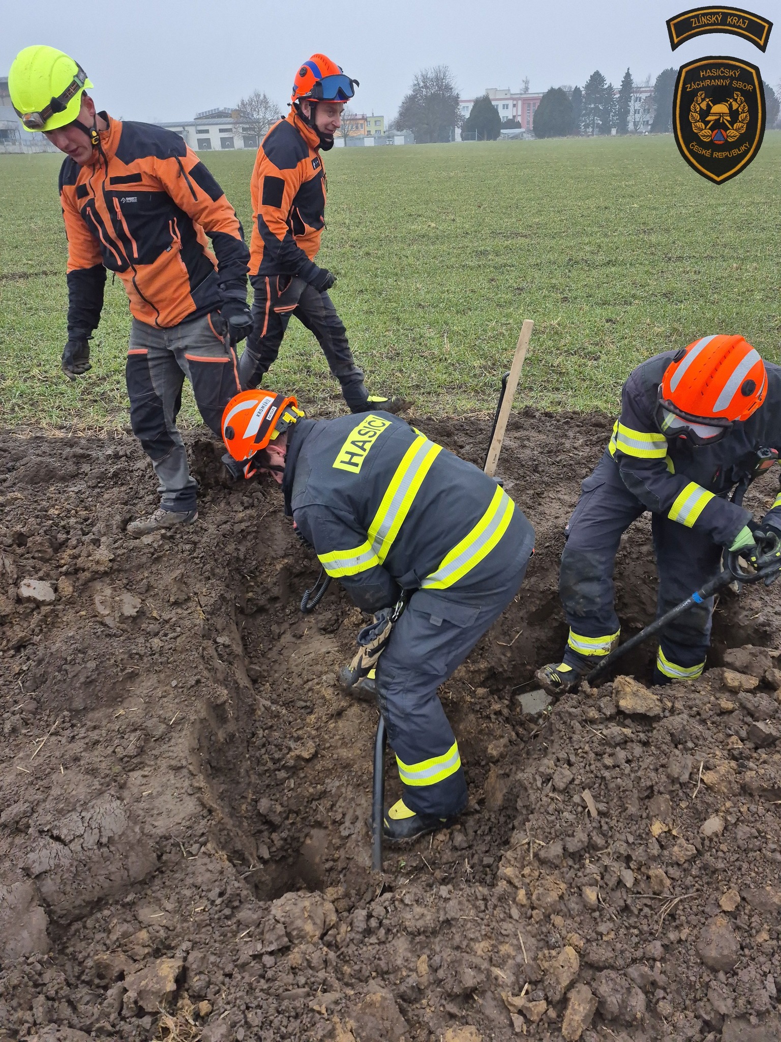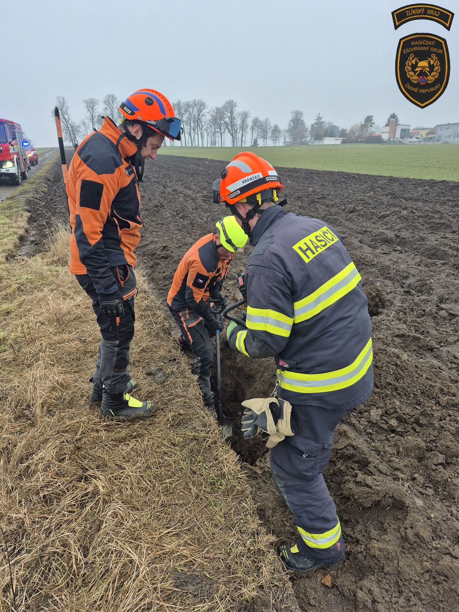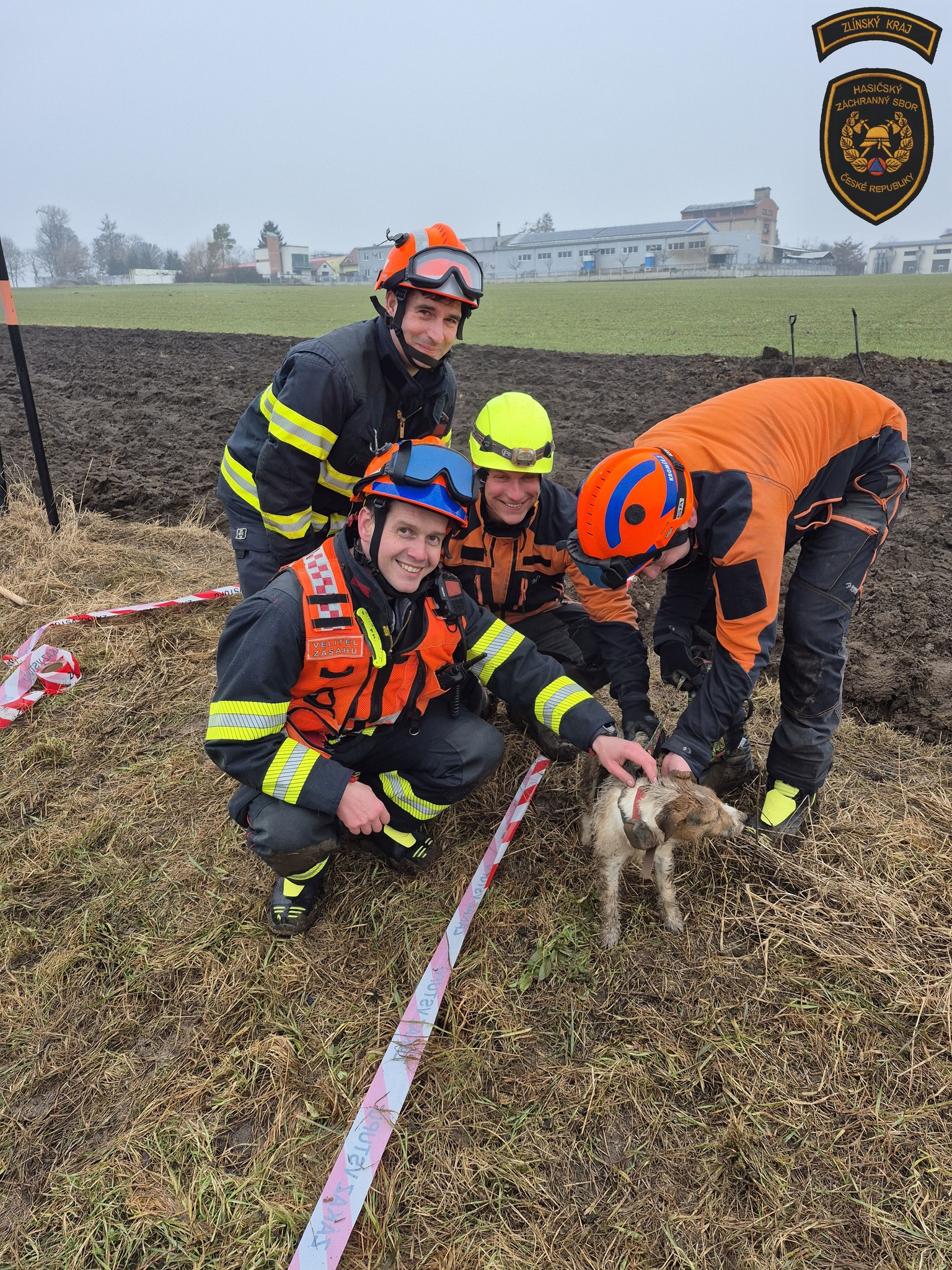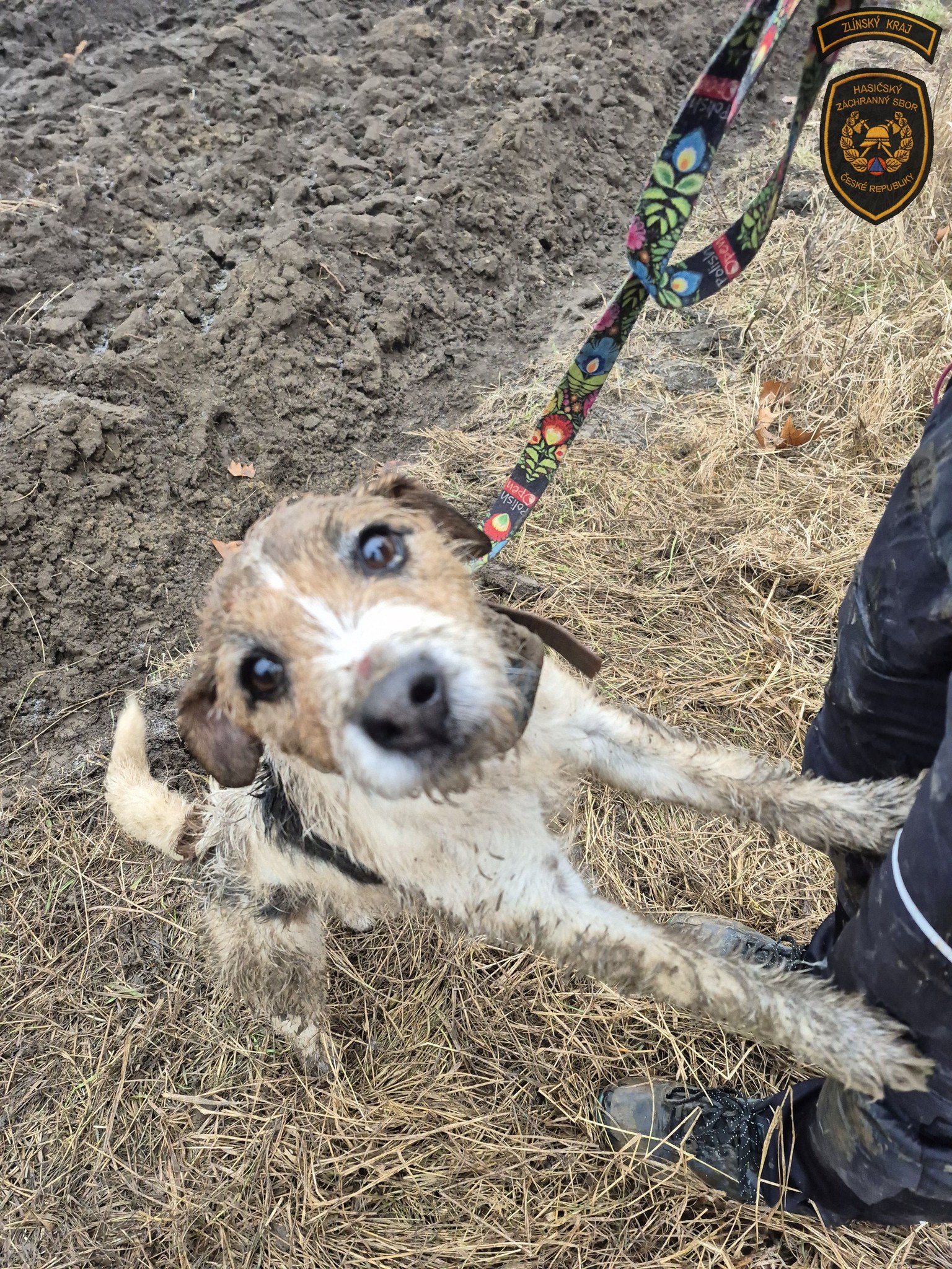 Hasiči vyrazili na pomoc čtyřnohému dobrodruhovi, který se vydal do betonové roury. Ven už ale bez cizí pomoci nemohl. Foto: HZS Zlínského kraje