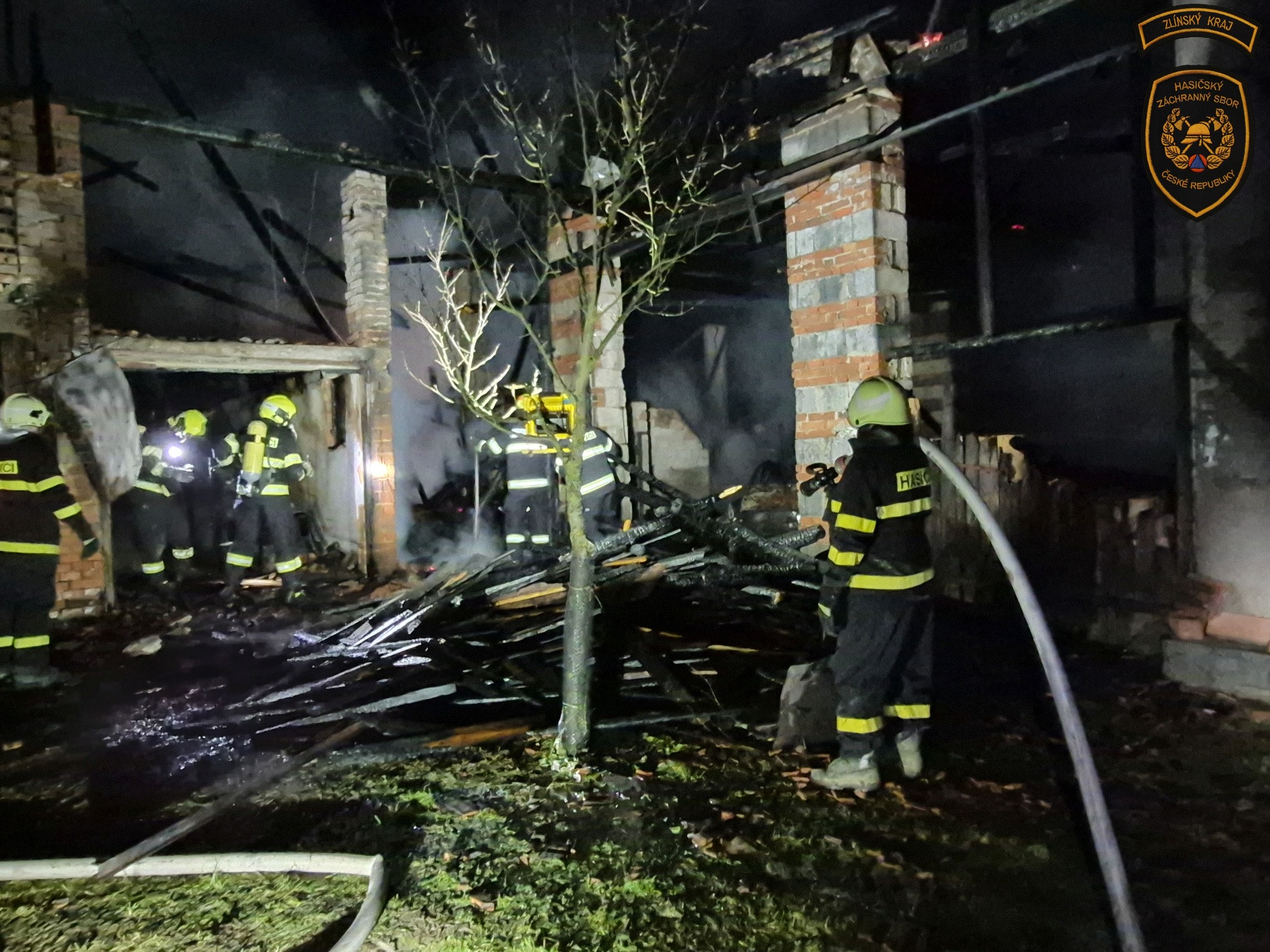 Stodolu v Drslavicích zasáhl rozsáhlý požár. Foto: HZS ZK
