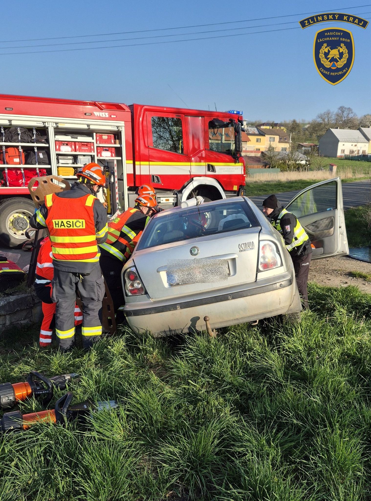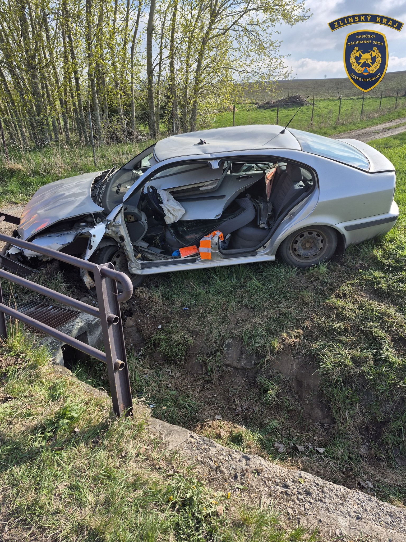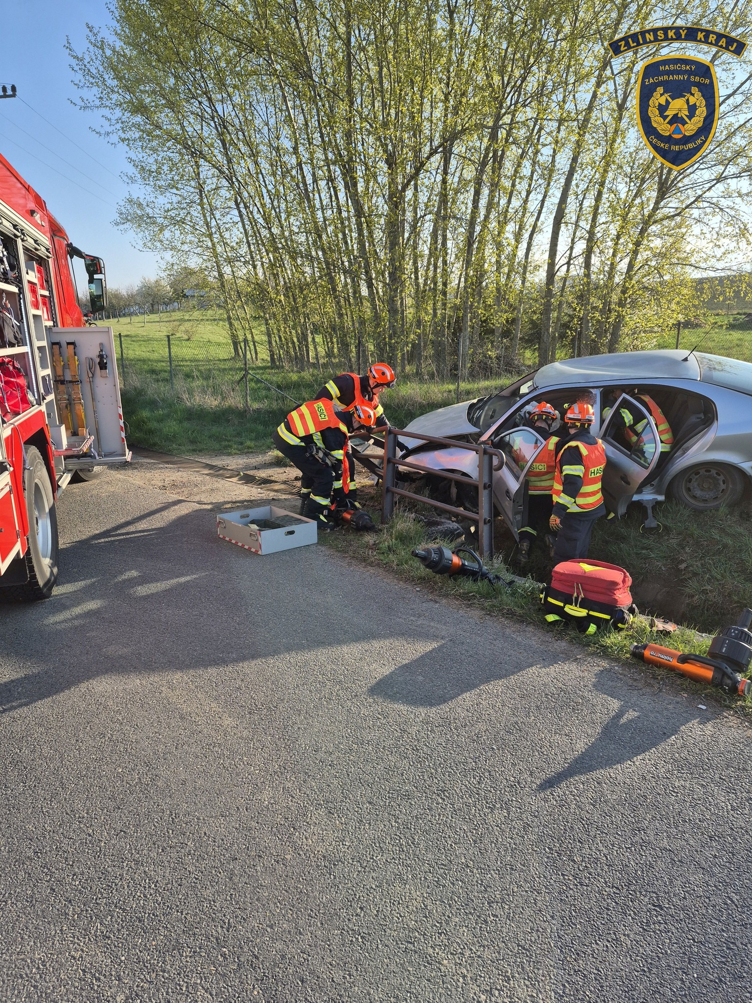Fotogalerie - U Bořenovic havarovalo osobní vozidlo. Řidič v něm zůstal zaklíněn