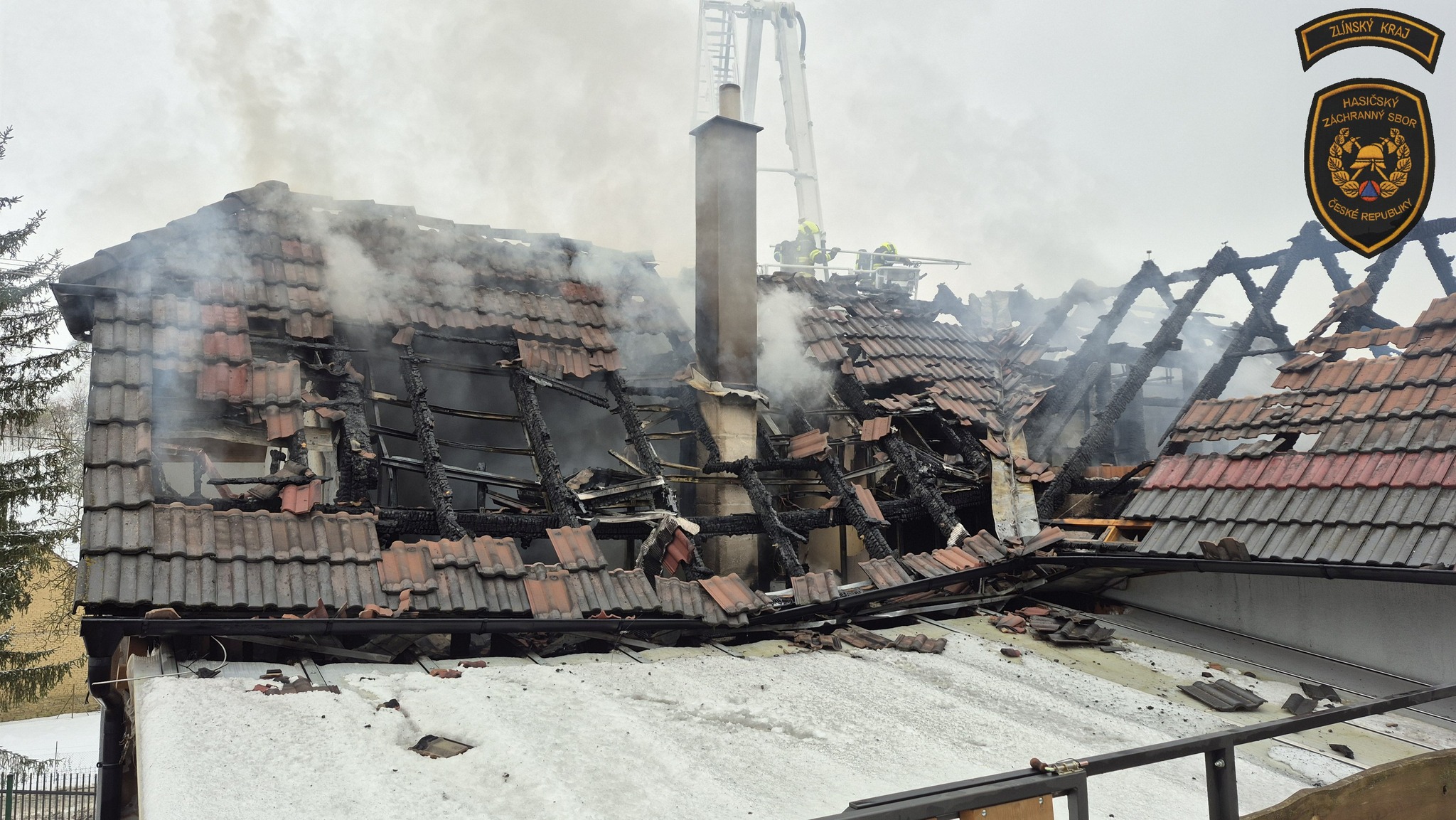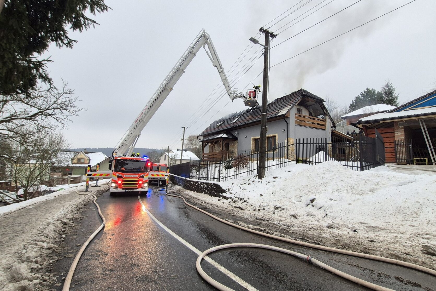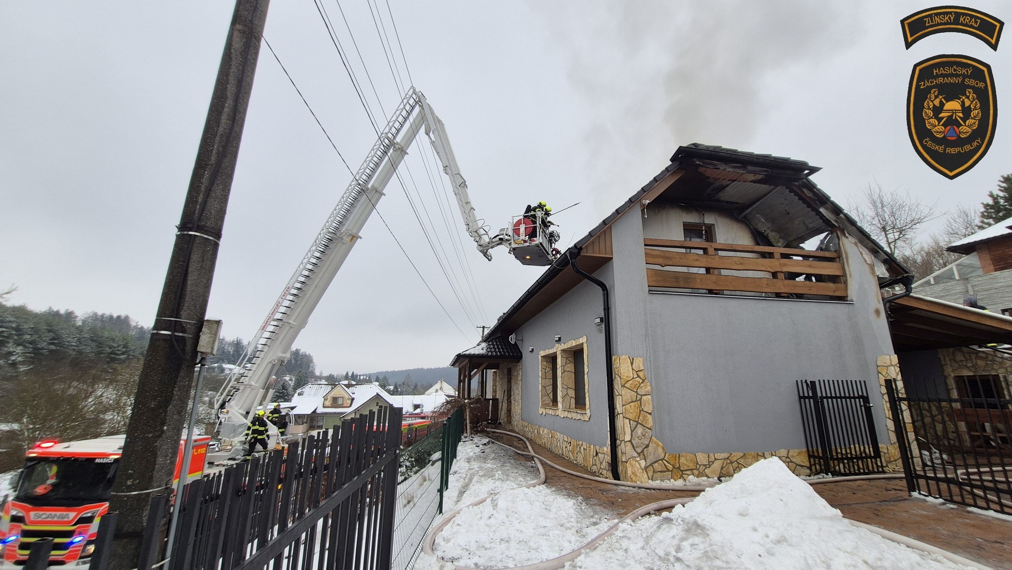 U požáru domu ve Hvozdné zasahuje pět jednotek hasičů. Foto: HZS ZK