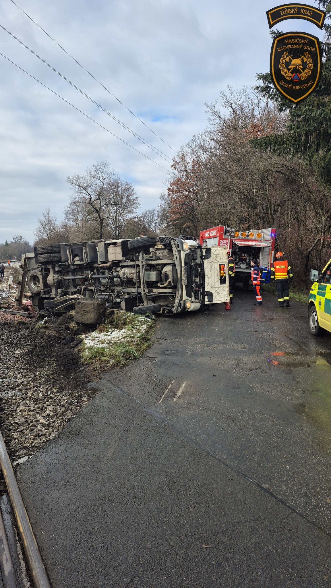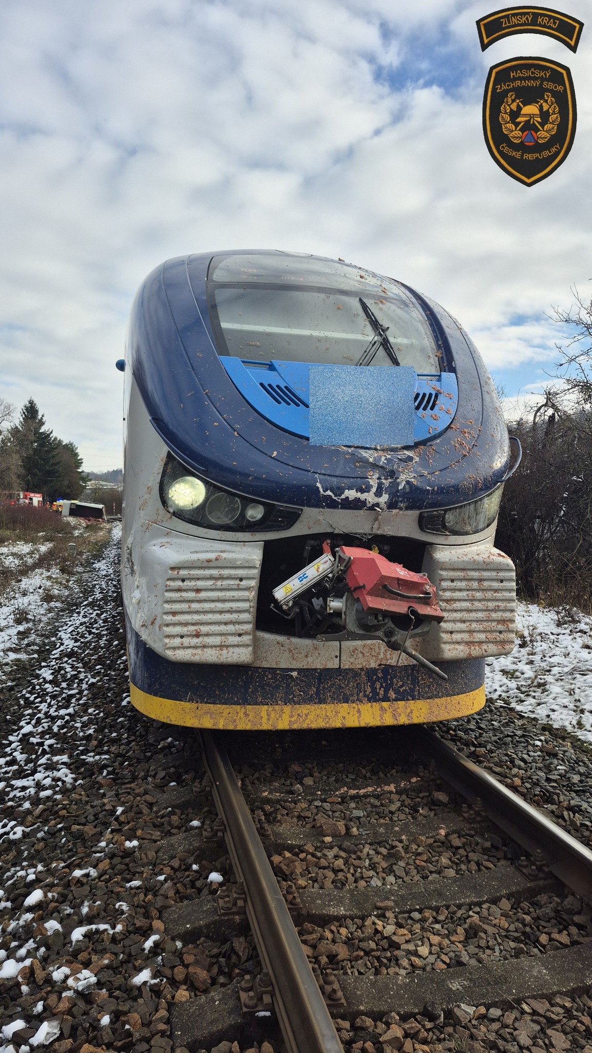U Vizovic se dnes dopoledne srazil vlak s nákladním vozidlem. Foto: HZS ZK